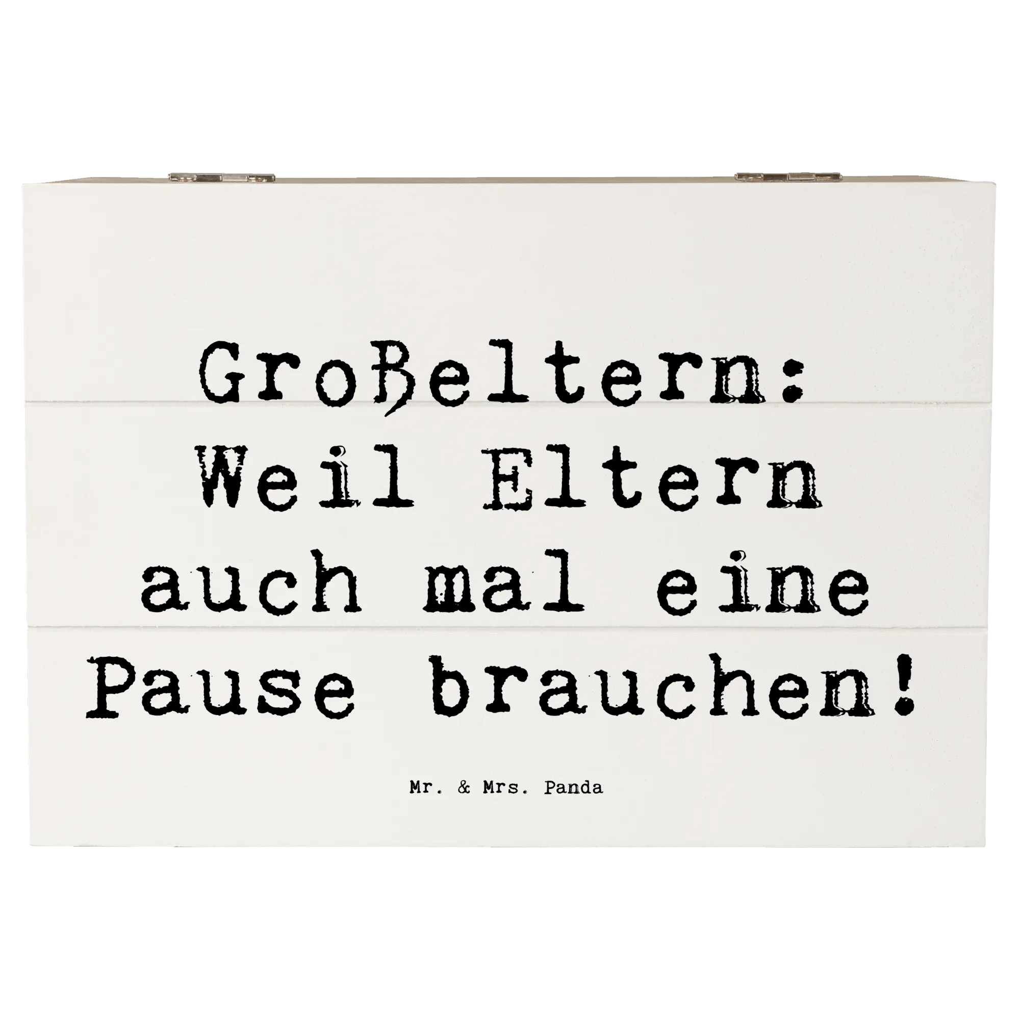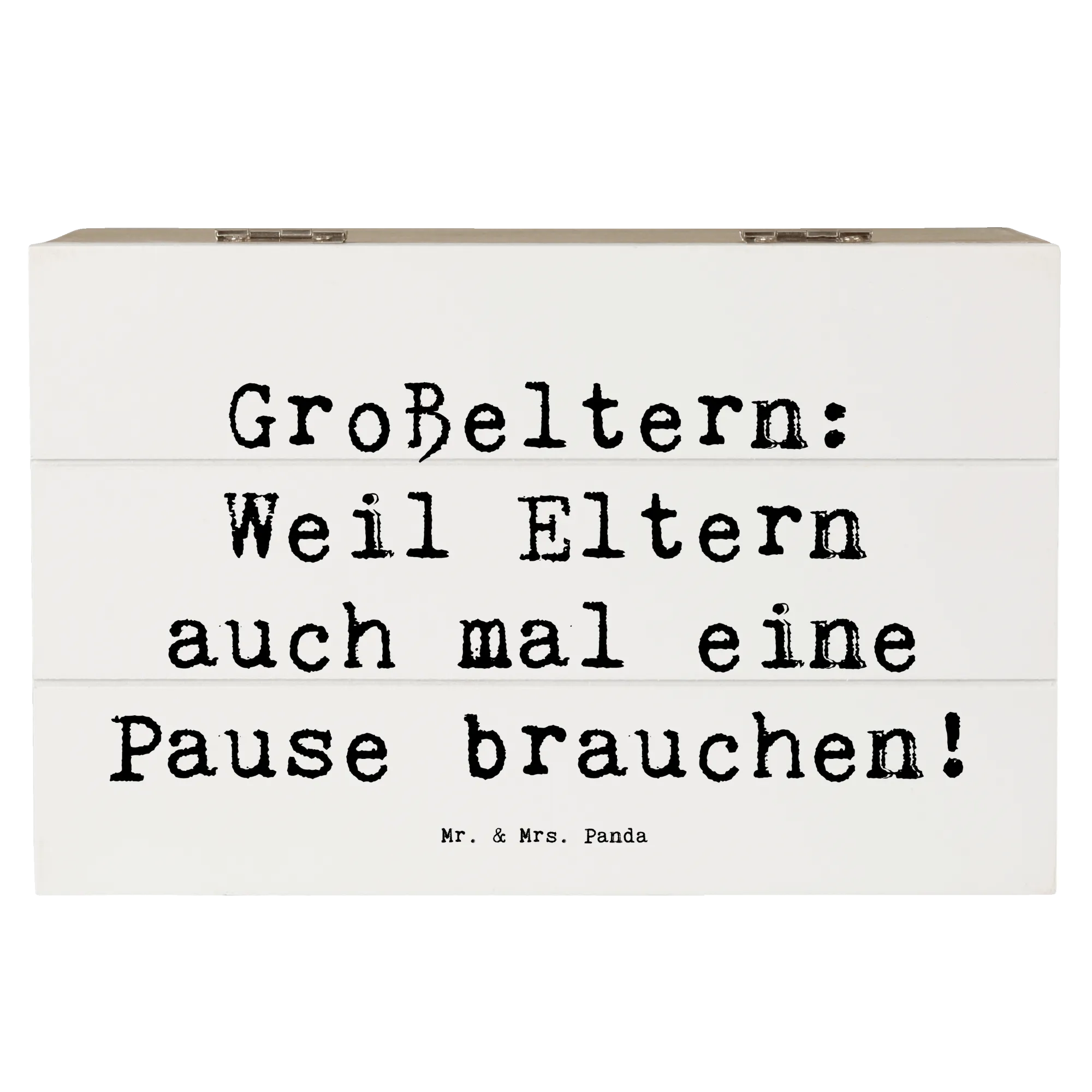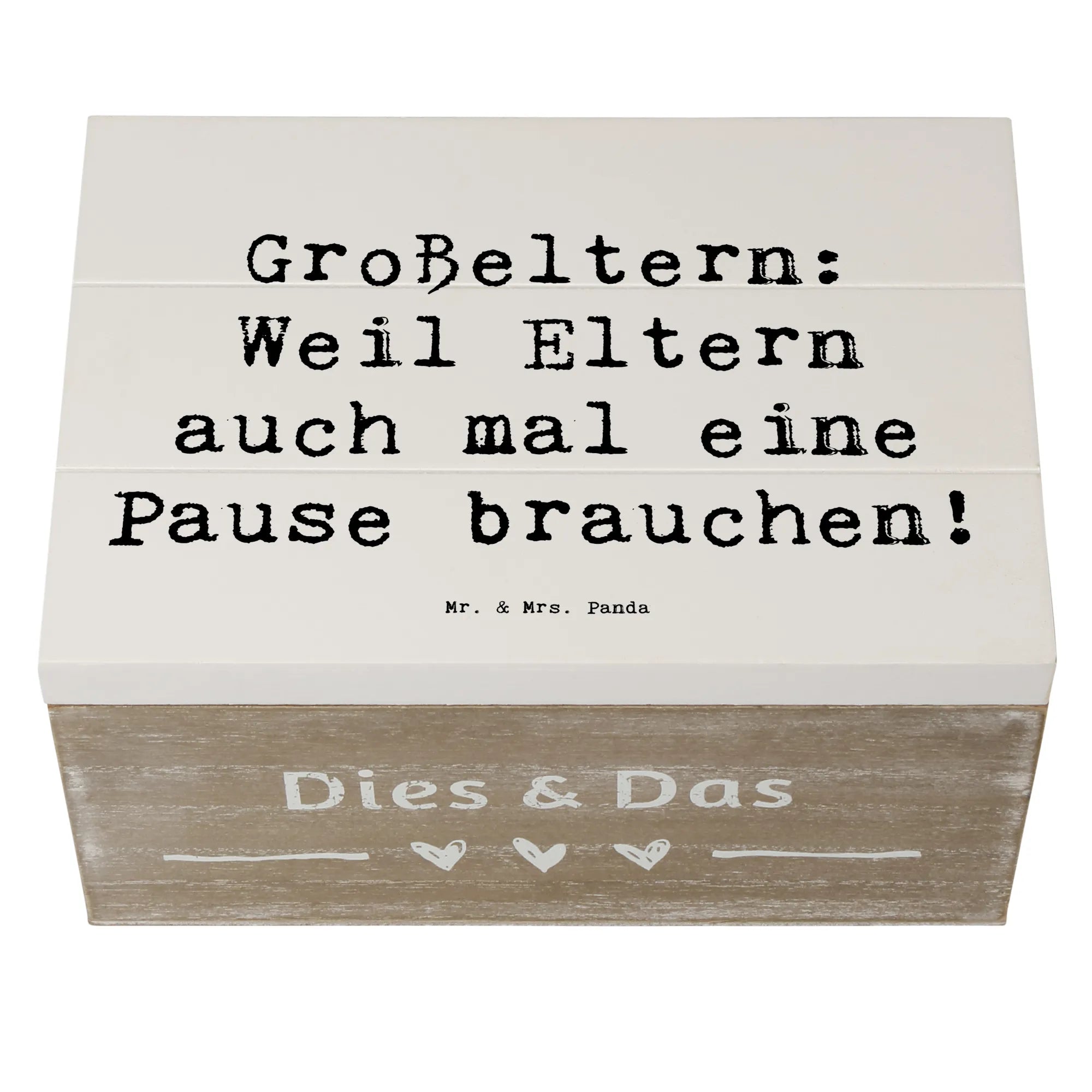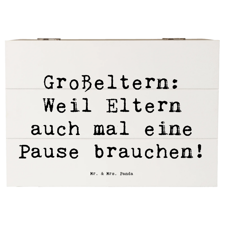 Entdecke die zauberhafte Holzkiste von Mr. & Mrs. Panda, die perfekt für Großeltern ist! Mit einem liebevollen Motiv und dem Spruch "Großeltern: Weil Eltern auch mal eine Pause brauchen!" wird diese Holzkiste schnell zum geschätzten Aufbewahrungsort in jedem Familienheim.