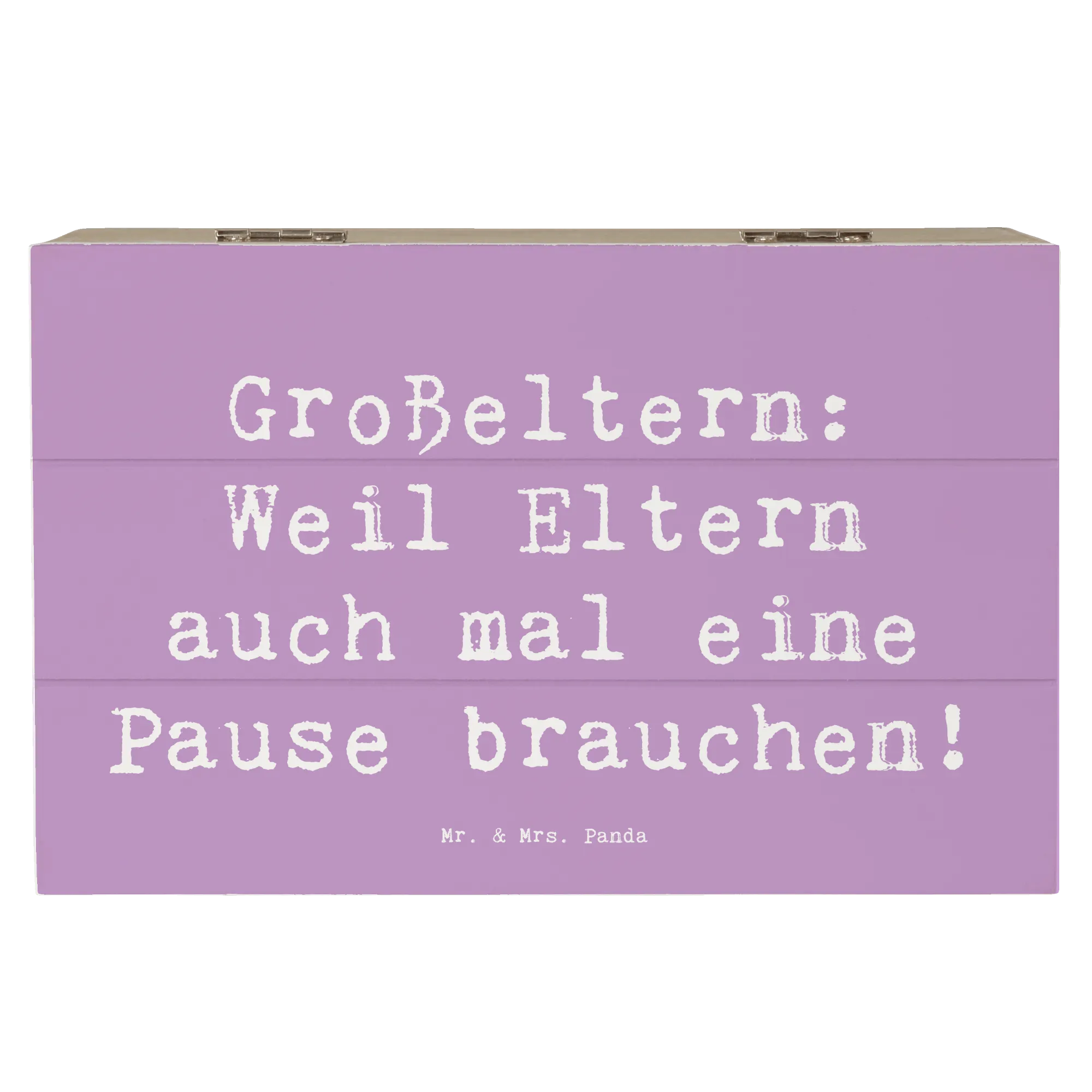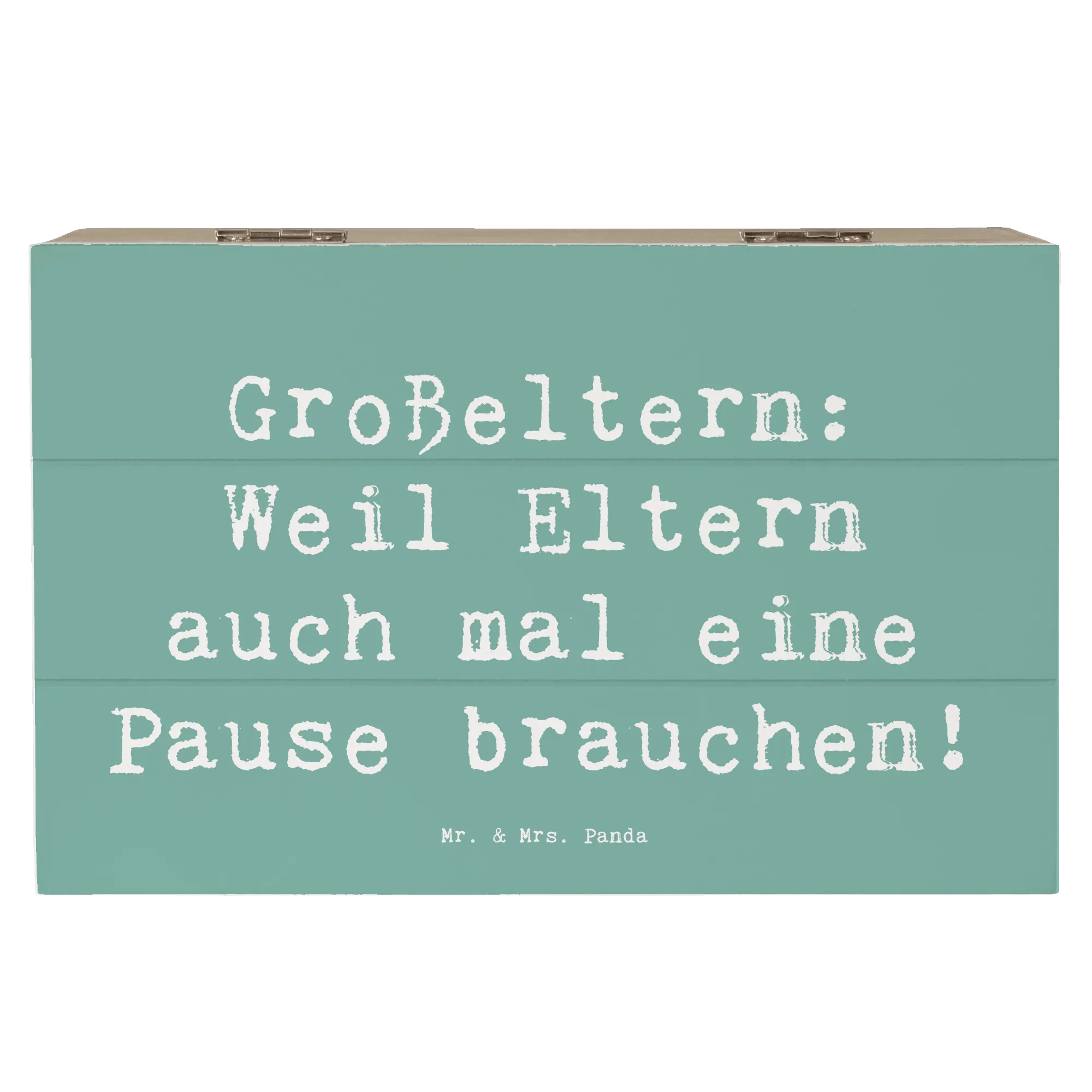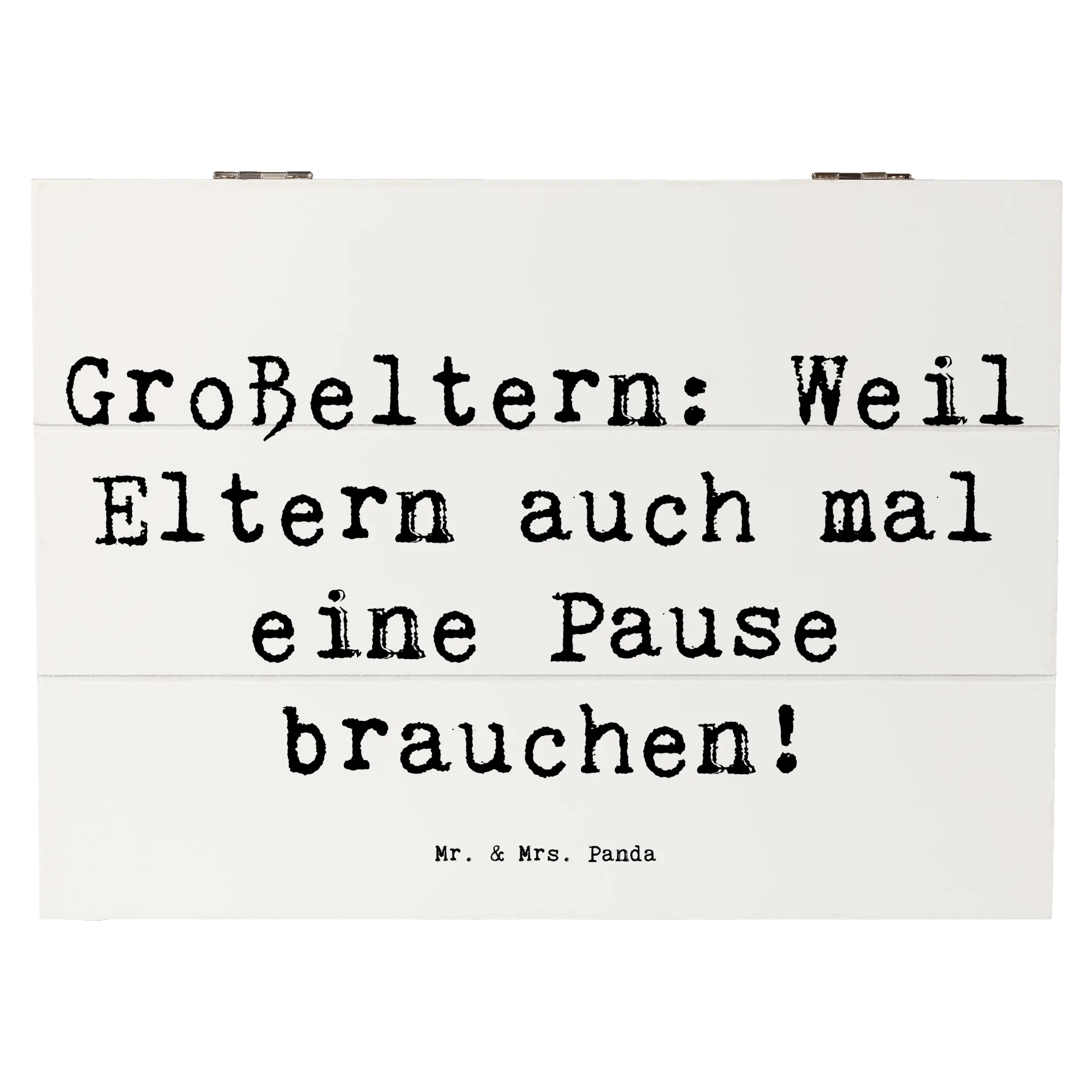 Entdecke die zauberhafte Holzkiste von Mr. & Mrs. Panda, die perfekt für Großeltern ist! Mit einem liebevollen Motiv und dem Spruch "Großeltern: Weil Eltern auch mal eine Pause brauchen!" wird diese Holzkiste schnell zum geschätzten Aufbewahrungsort in jedem Familienheim.