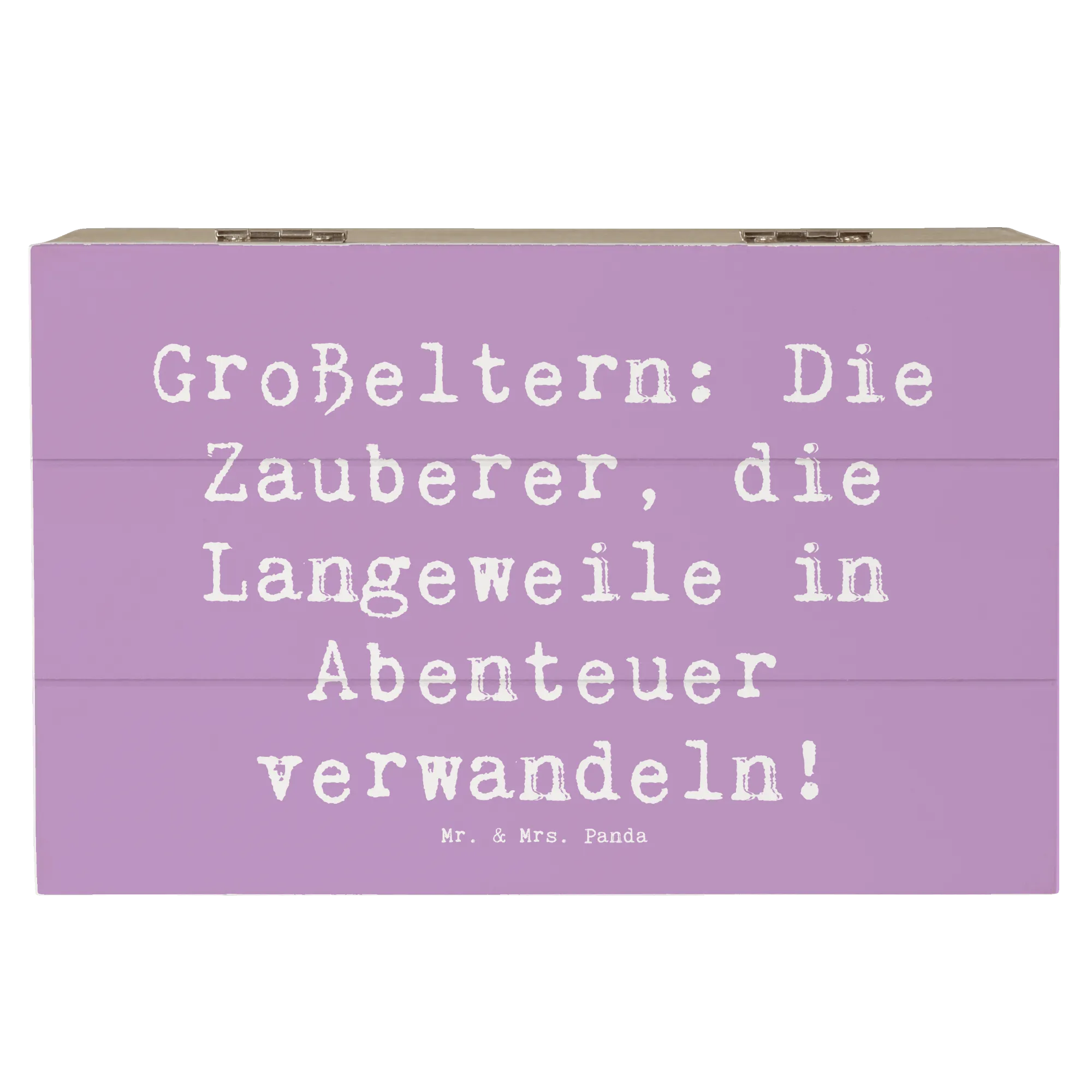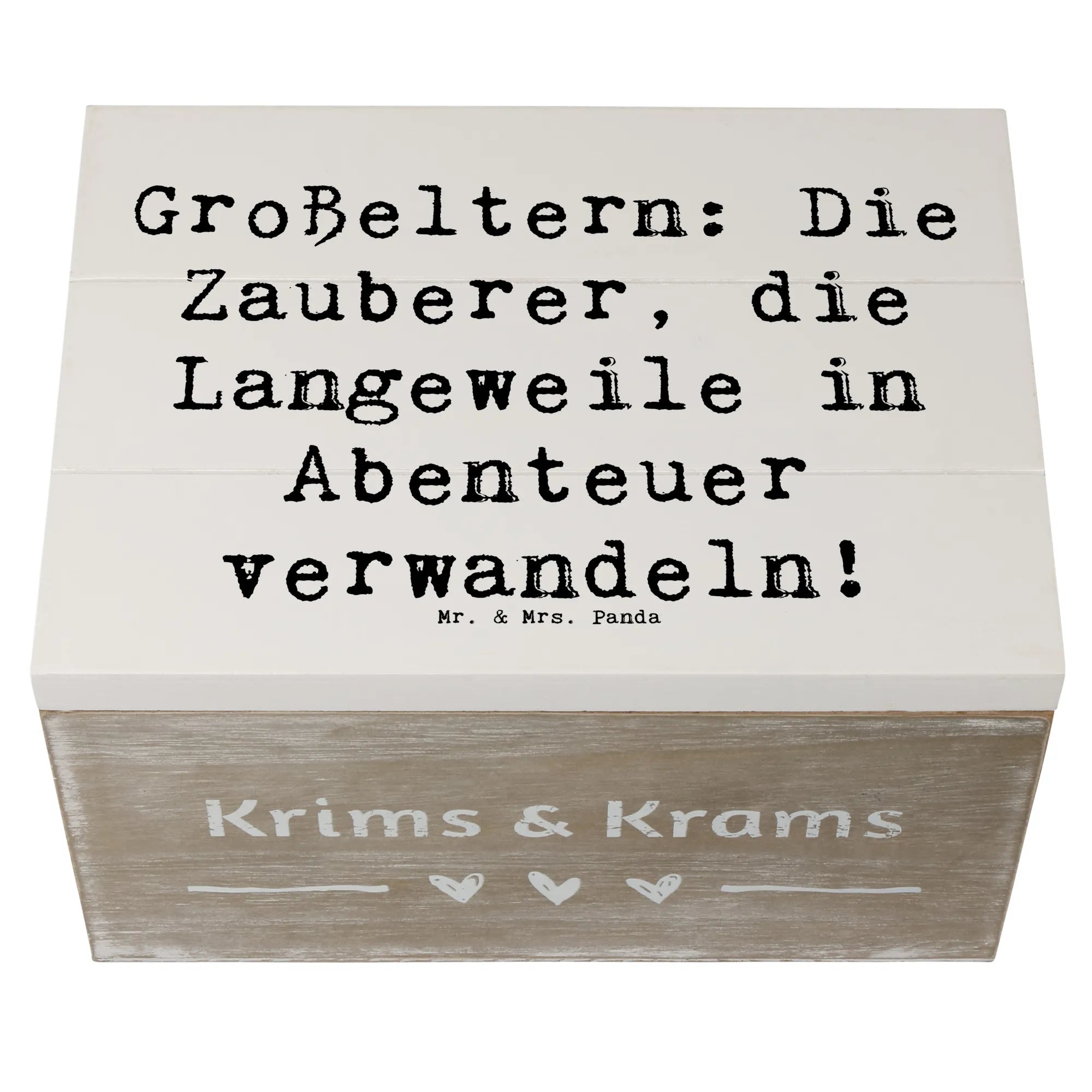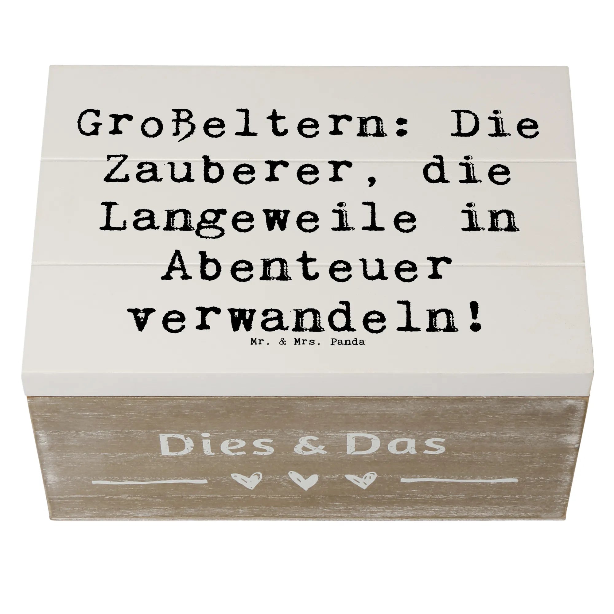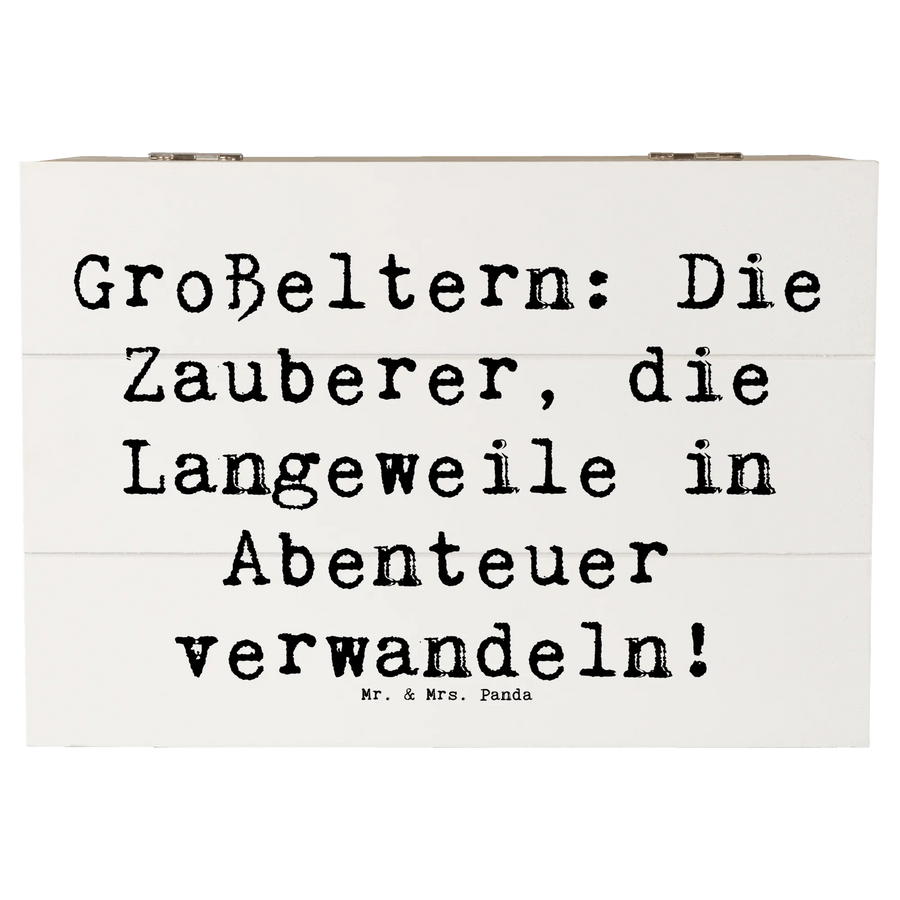 Entdecke die zauberhafte Holzkiste von Mr. & Mrs. Panda, die perfekt für alle Großeltern ist! Mit ihrem liebevollen Design und dem Spruch 'Großeltern: Die Zauberer, die Langeweile in Abenteuer verwandeln!' fängt diese Kiste die Herzlichkeit und Weisheit der älteren Generation ein.