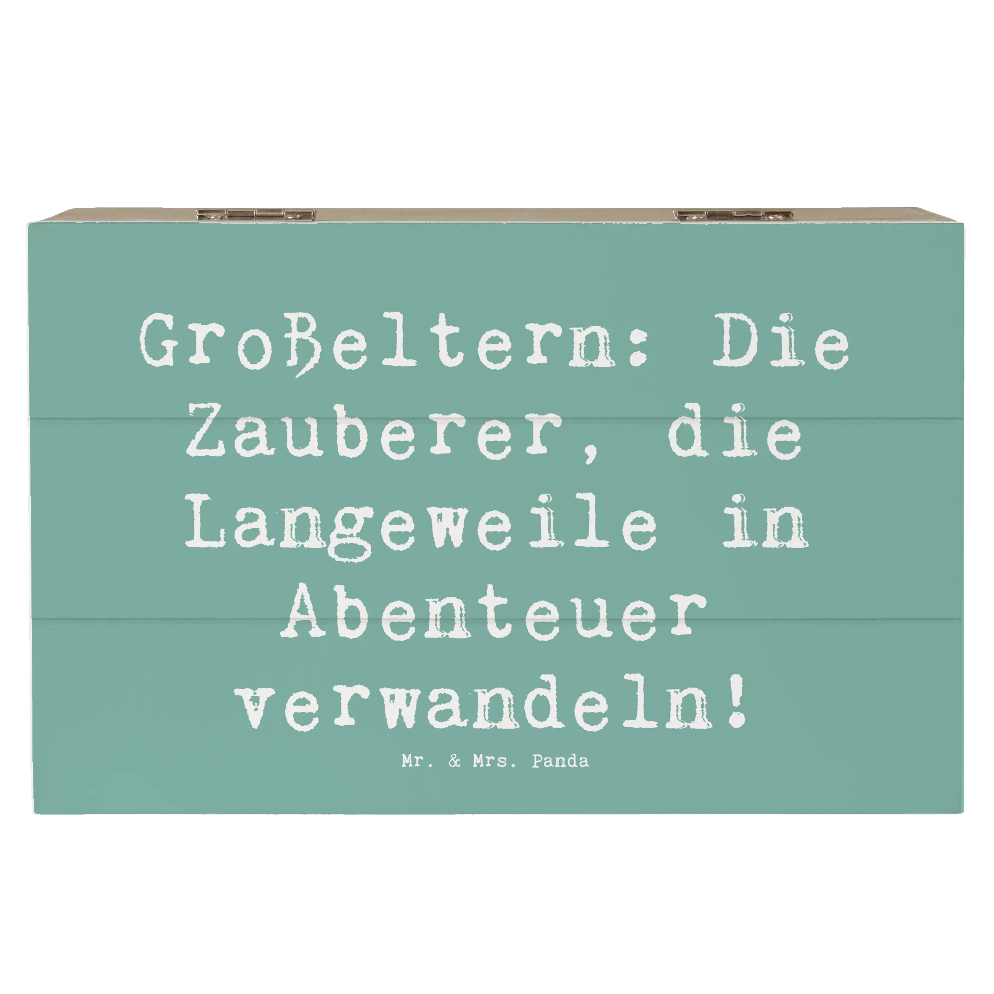 Die robuste Holzfaser sorgt dafür, dass diese Schatzkiste langlebig ist und nicht so schnell kaputtgeht. Ihre besondere Schönheit erhält sie durch das liebevolle Design, das den Slogan "Großeltern: Die Zauberer, die Langeweile in Abenteuer verwandeln!" zeigt. Diese Kiste ist nicht nur eine Aufbewahrungsmöglichkeit, sondern auch ein wertvolles Erinnerungsstück, das die Geschichten und Weisheiten der Großeltern bewahrt.