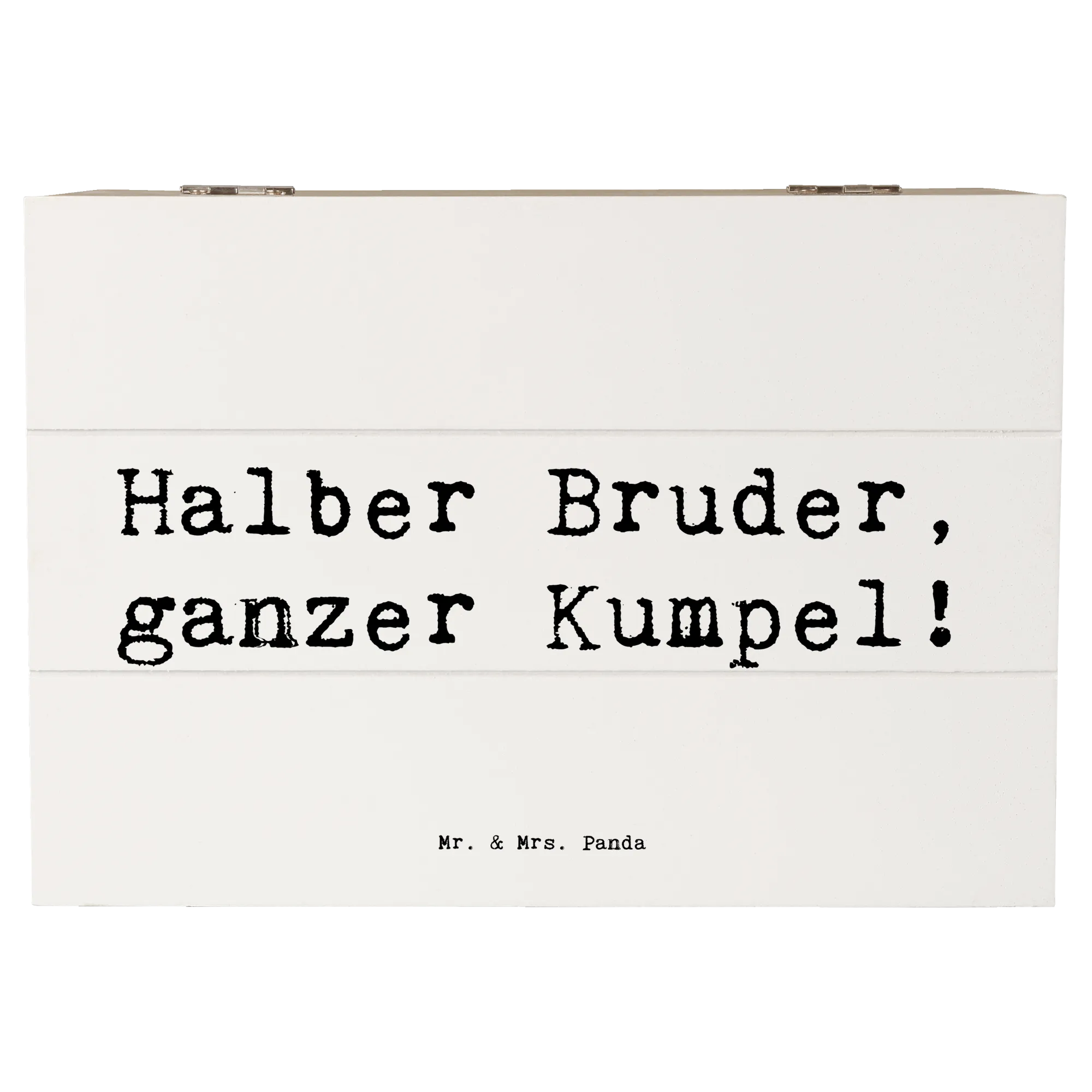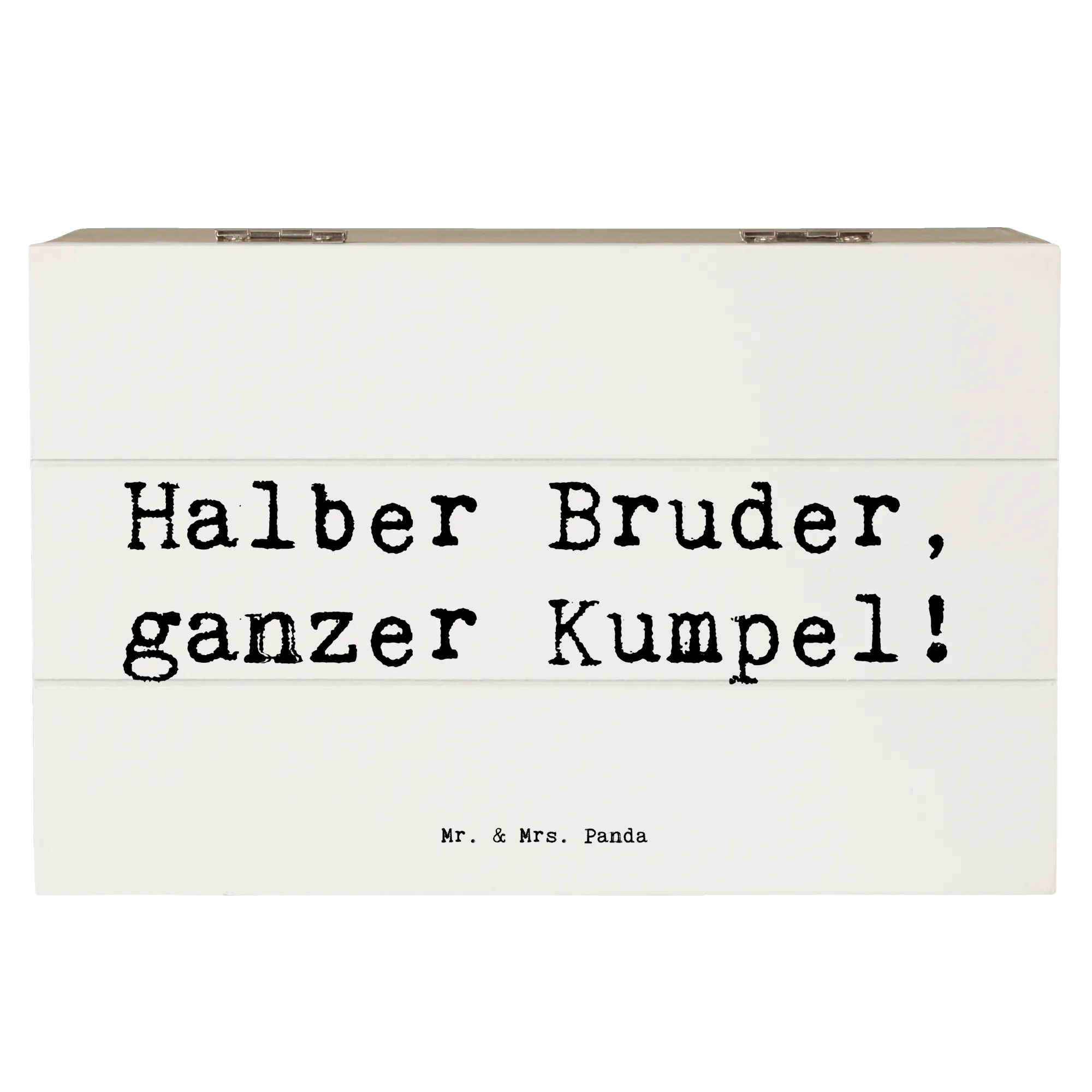 Die wunderschöne Holzkiste von Mr. & Mrs. Panda ist der perfekte Begleiter für all deine Schätze und Erinnerungen. Mit dem liebevollen Motiv "Halber Bruder, ganzer Kumpel!" aus der Folge Familie & Verwandte, wird diese Kiste zu einem einzigartigen Geschenk für jeden Anlass. Ob zur Kommunion, Konfirmation oder einfach als süße Erinnerungskiste für Familienfotos, sie ist eine tolle Möglichkeit, besondere Momente festzuhalten.