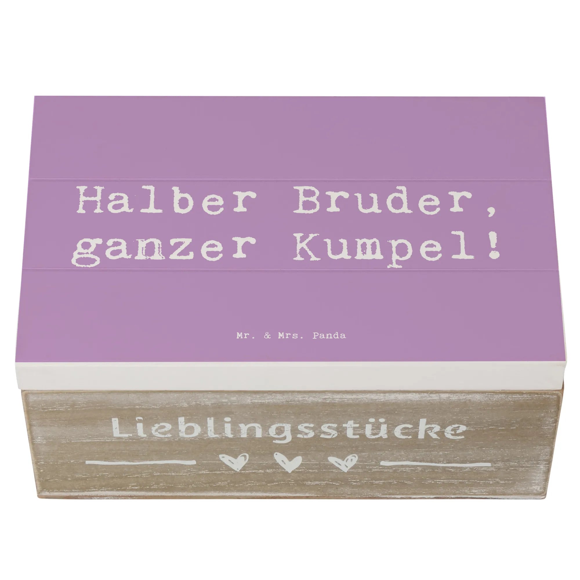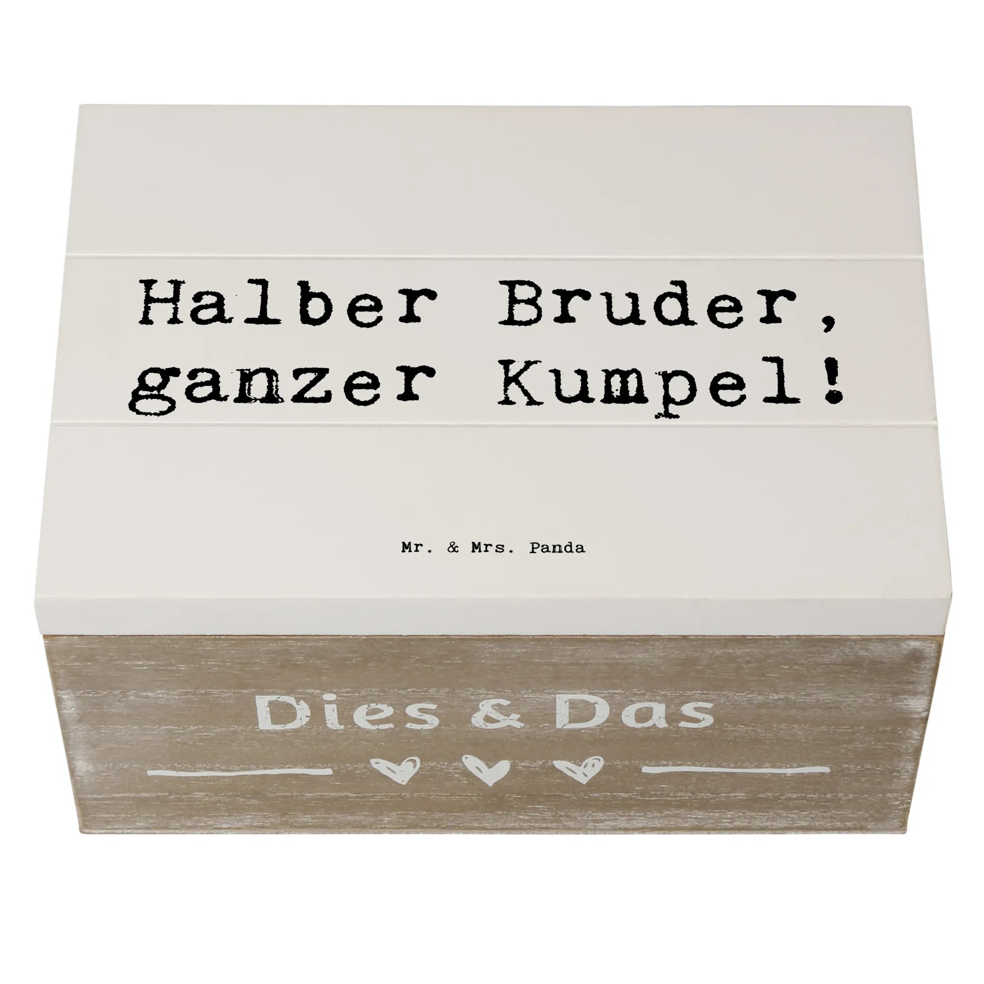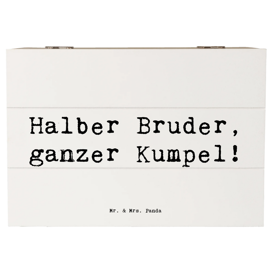 Die Holzkiste "Halbbruder, ganzer Kumpel!" von Mr. & Mrs. Panda ist mehr als nur eine Kiste. Sie ist ein liebevolles Zuhause für all deine besonderen Erinnerungen und Schätze. Diese wunderschöne Erinnerungskiste bietet nicht nur Platz für Fotos, Briefe oder kleine Geschenke, sondern steht auch ganz im Zeichen der Verbundenheit innerhalb der Familie.