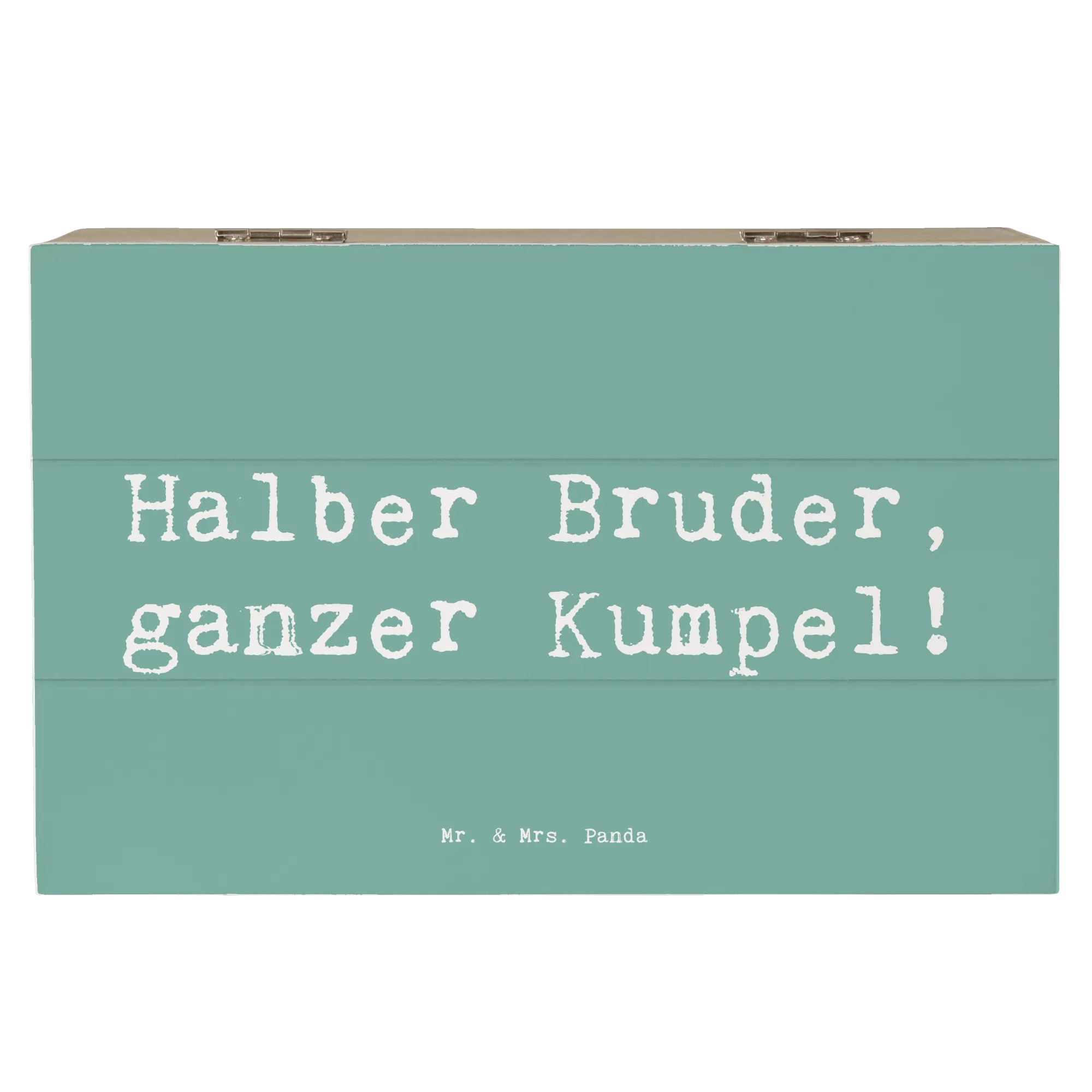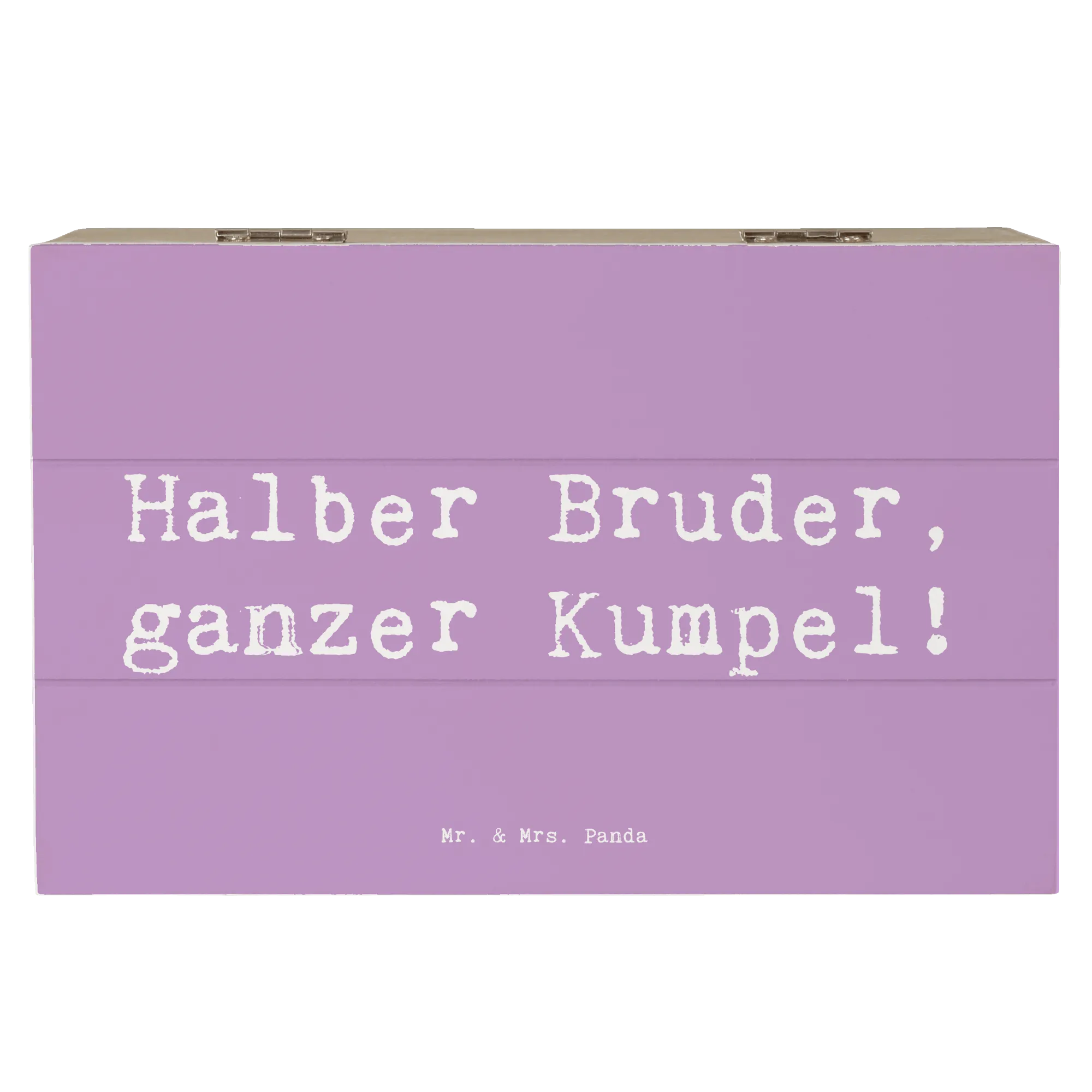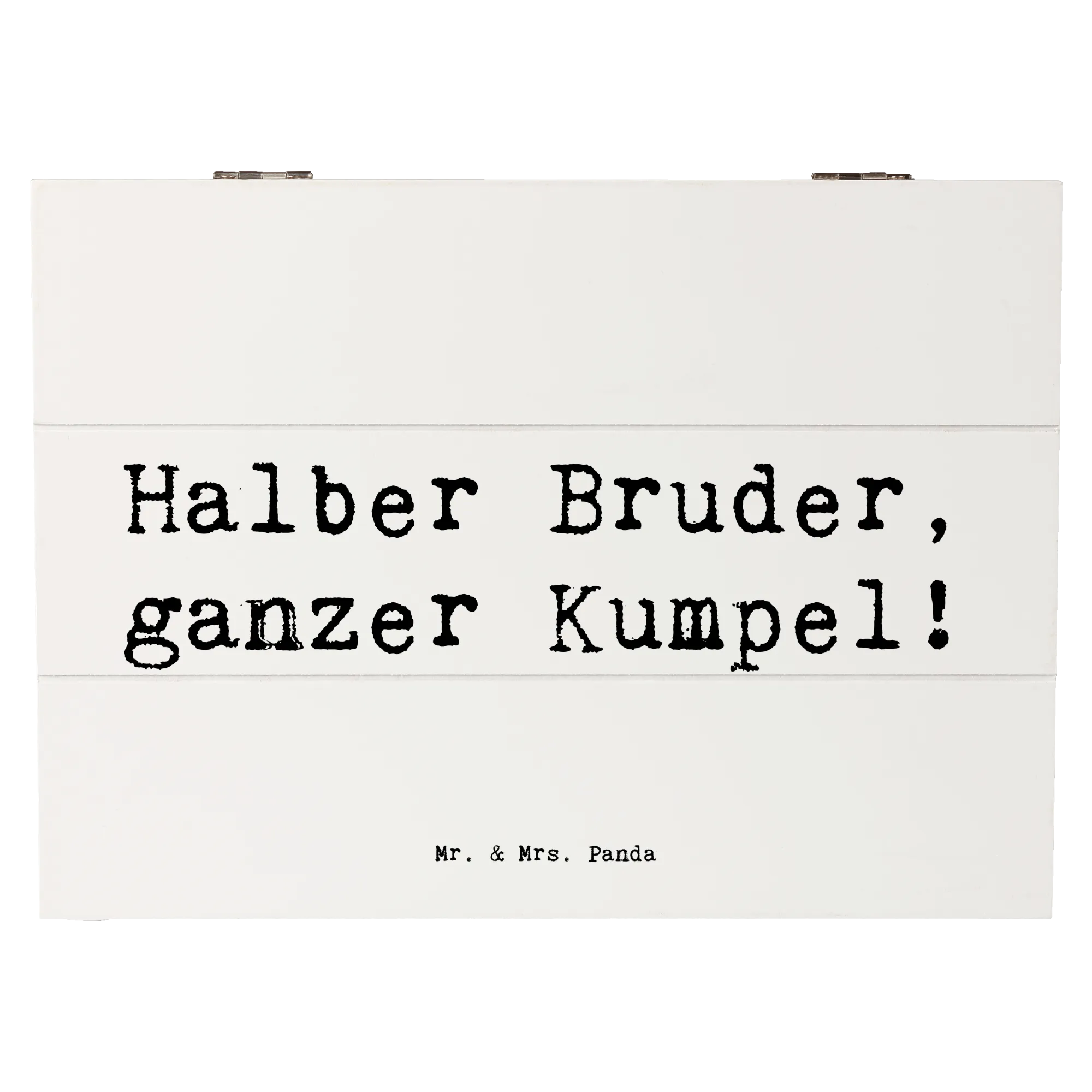 Die Holzkiste "Halbbruder, ganzer Kumpel!" von Mr. & Mrs. Panda ist mehr als nur eine Kiste. Sie ist ein liebevolles Zuhause für all deine besonderen Erinnerungen und Schätze. Diese wunderschöne Erinnerungskiste bietet nicht nur Platz für Fotos, Briefe oder kleine Geschenke, sondern steht auch ganz im Zeichen der Verbundenheit innerhalb der Familie.