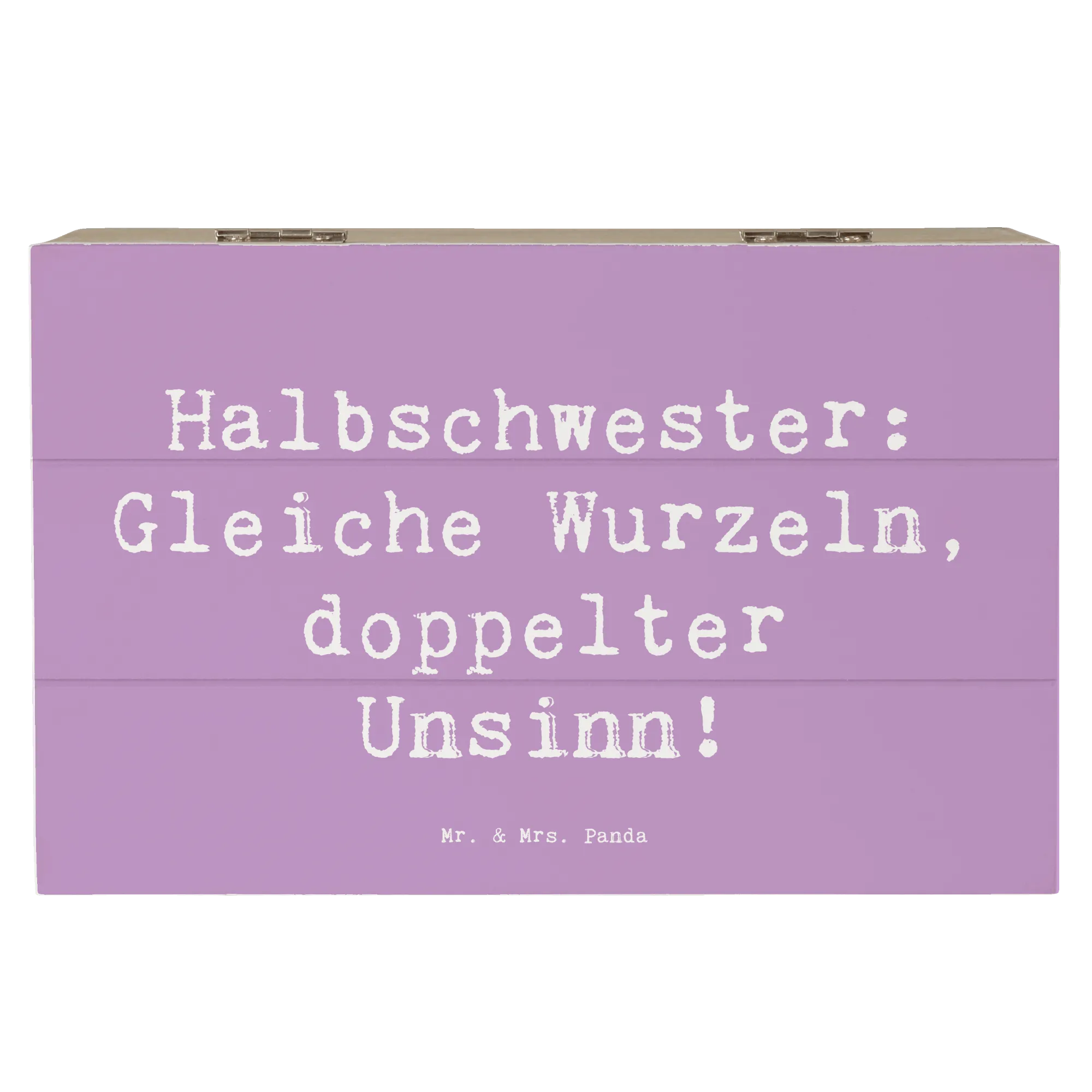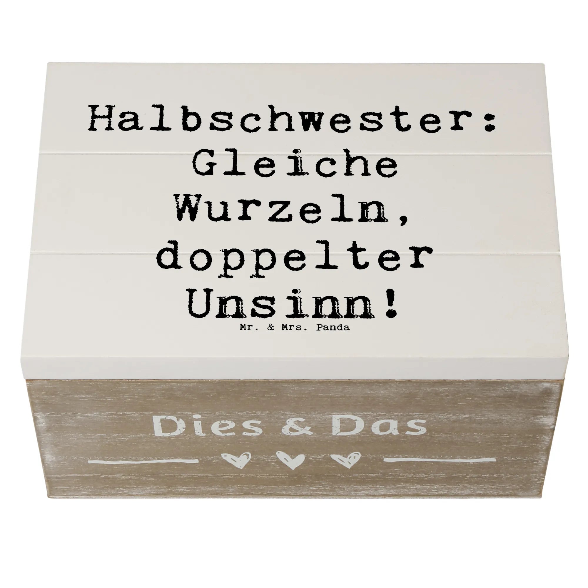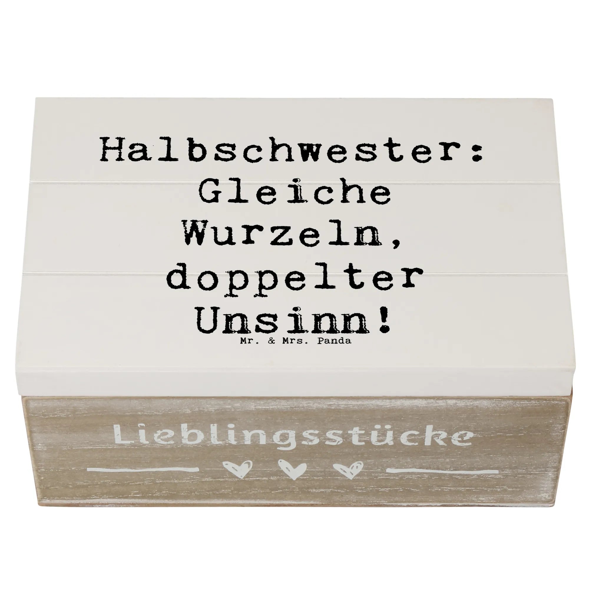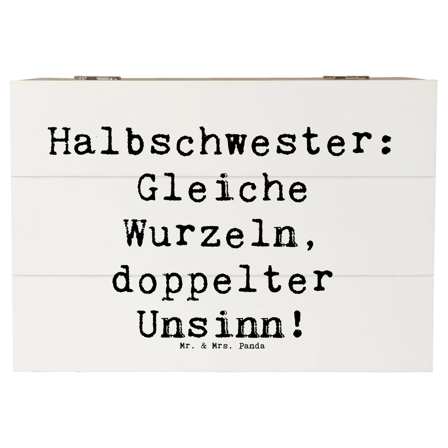 Die Holzkiste 'Halbschwester: Gleiche Wurzeln, doppelter Unsinn!' von Mr. & Mrs. Panda ist nicht nur ein multifunktionales Aufbewahrungselement, sondern auch ein liebevolles Geschenk, das die einzigartige Bindung zwischen Halbschwestern zelebriert.