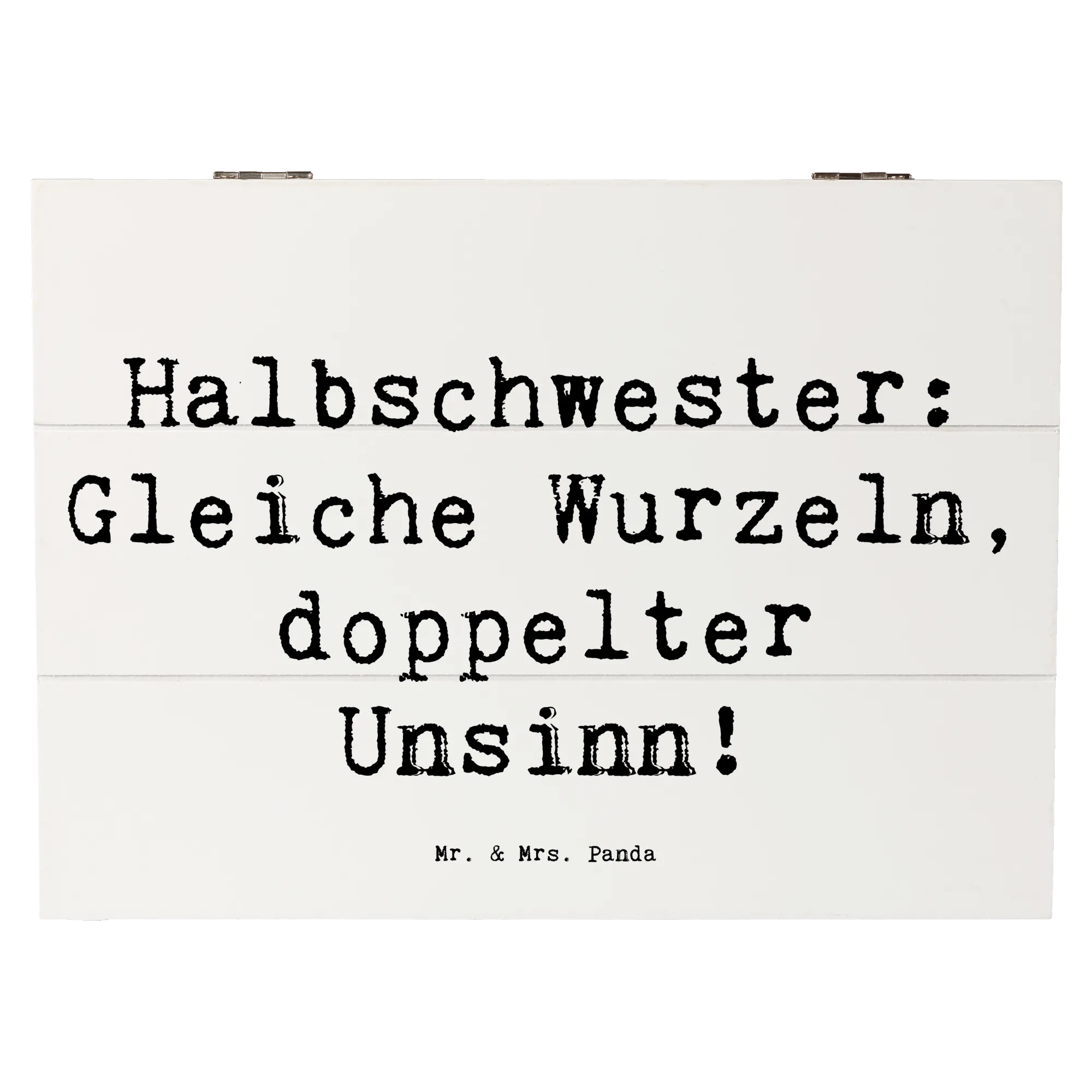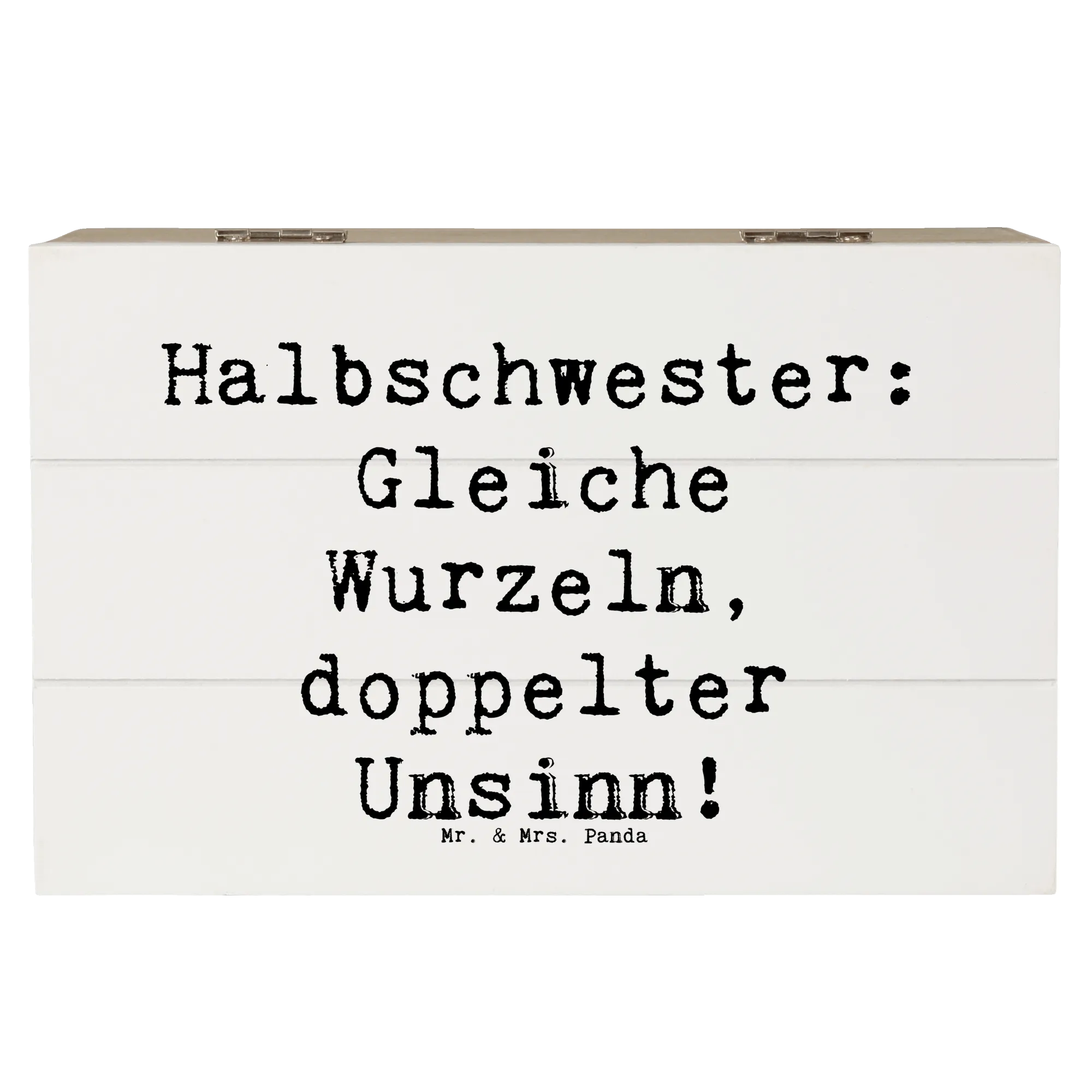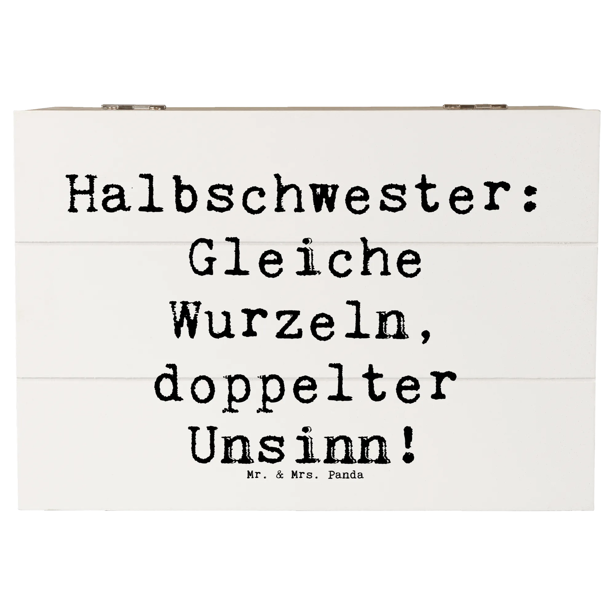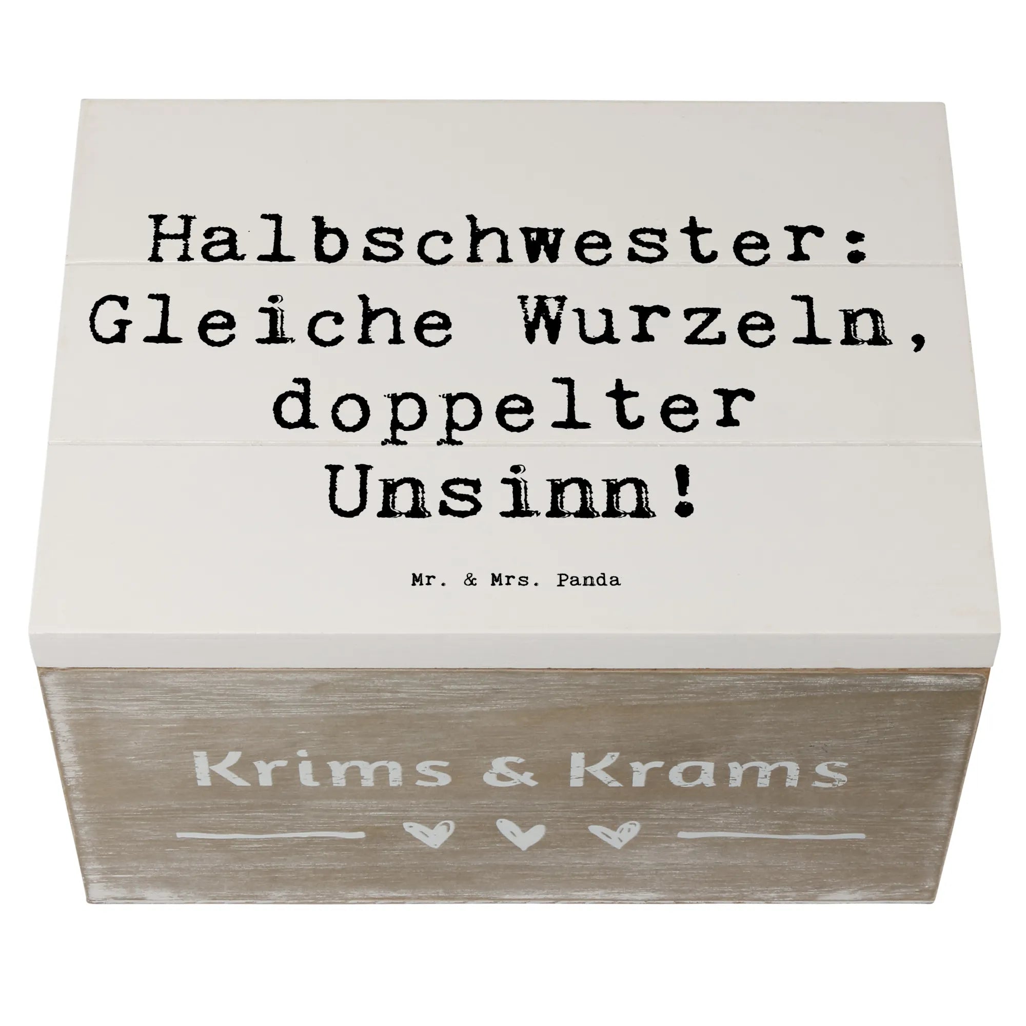 Die Holzkiste 'Halbschwester: Gleiche Wurzeln, doppelter Unsinn!' von Mr. & Mrs. Panda ist nicht nur ein multifunktionales Aufbewahrungselement, sondern auch ein liebevolles Geschenk, das die einzigartige Bindung zwischen Halbschwestern zelebriert.