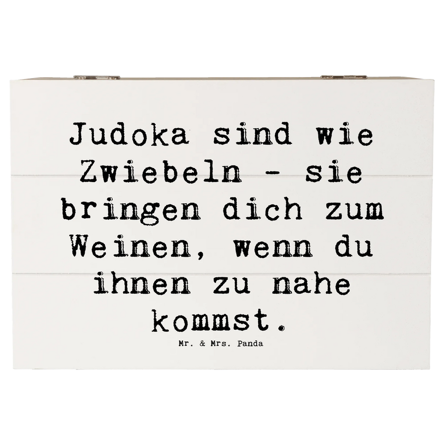 Entdecke die zauberhafte Holzkiste von Mr. & Mrs. Panda, die perfekt für alle Sportbegeisterten ist! Diese wunderschöne Kiste ist nicht nur ein praktischer Aufbewahrungsort für all deine Schätze, sondern auch eine Erinnerung an die aufregenden Momente im Judo. Mit dem liebevollen Slogan 'Judoka sind wie Zwiebeln - sie bringen dich zum Weinen, wenn du ihnen zu nahe kommst' verleiht sie deiner Sammlung eine persönliche Note.