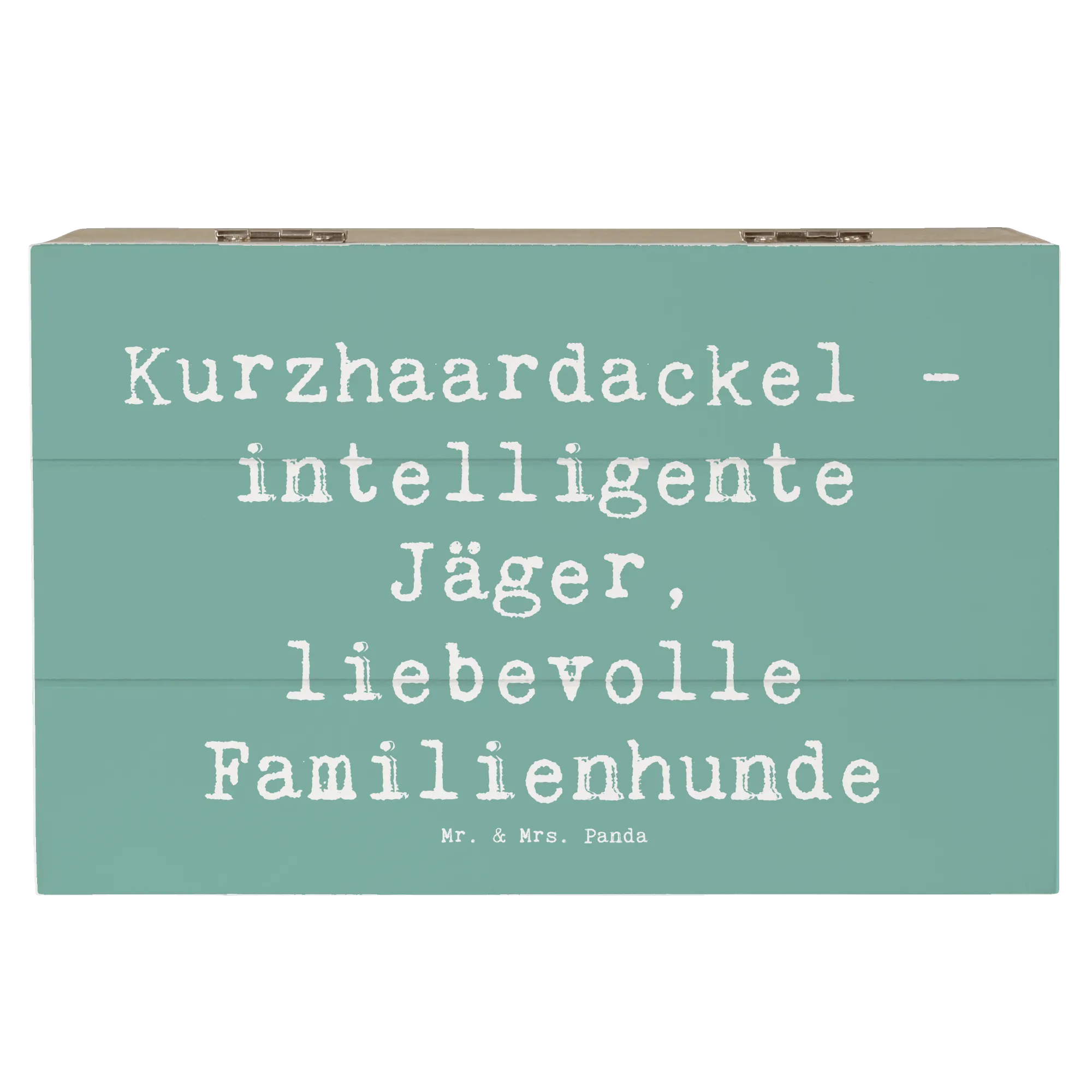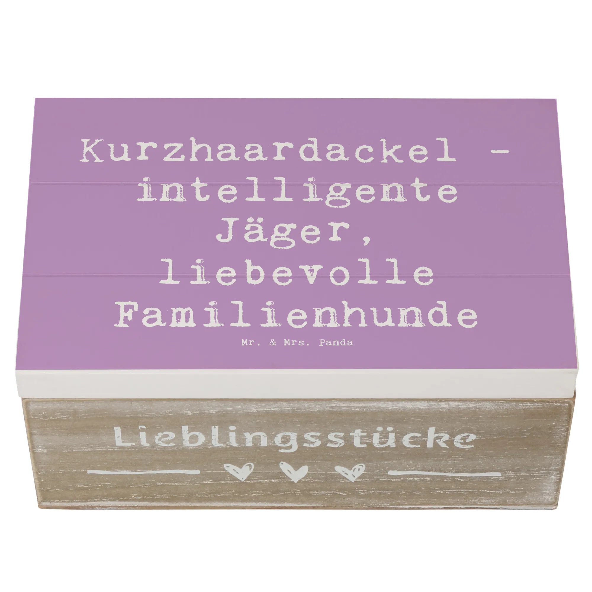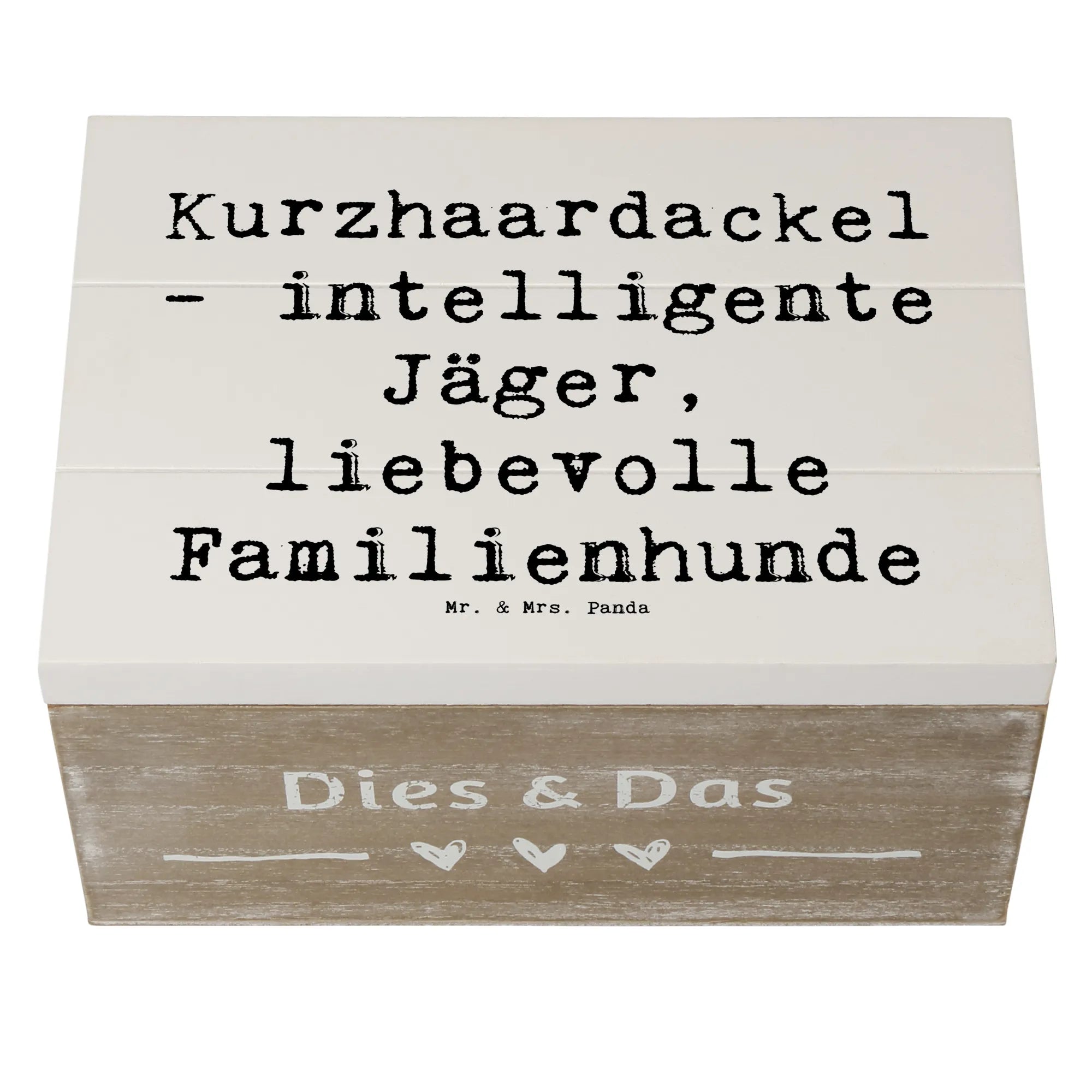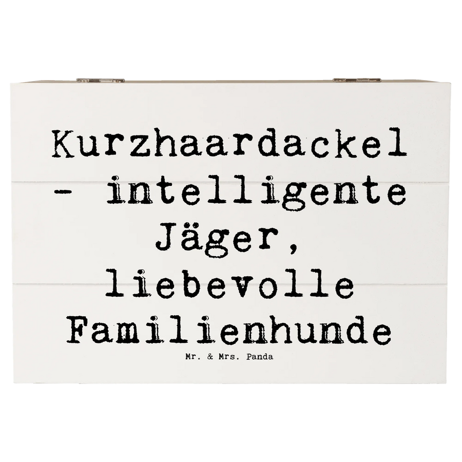 Die wunderschöne Holzkiste mit dem Motiv "Kurzhaardackel - intelligente Jäger, liebevolle Familienhunde" von Mr. & Mrs. Panda ist das perfekte Geschenk für alle Hundefans! Mit ihrer stabilen Verarbeitung und der charmanten Gestaltung ist sie ideal als Aufbewahrungsort für all die kleinen Schätze, die du in deinem Leben gesammelt hast.