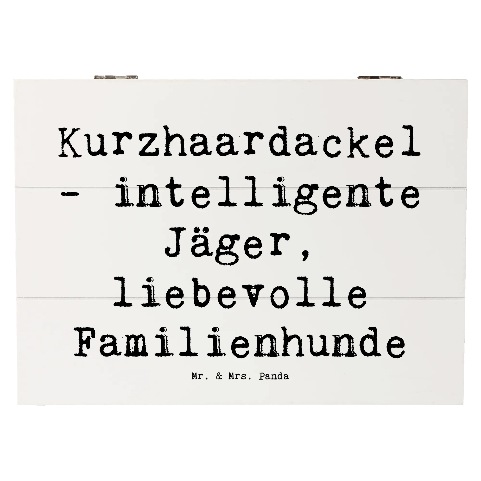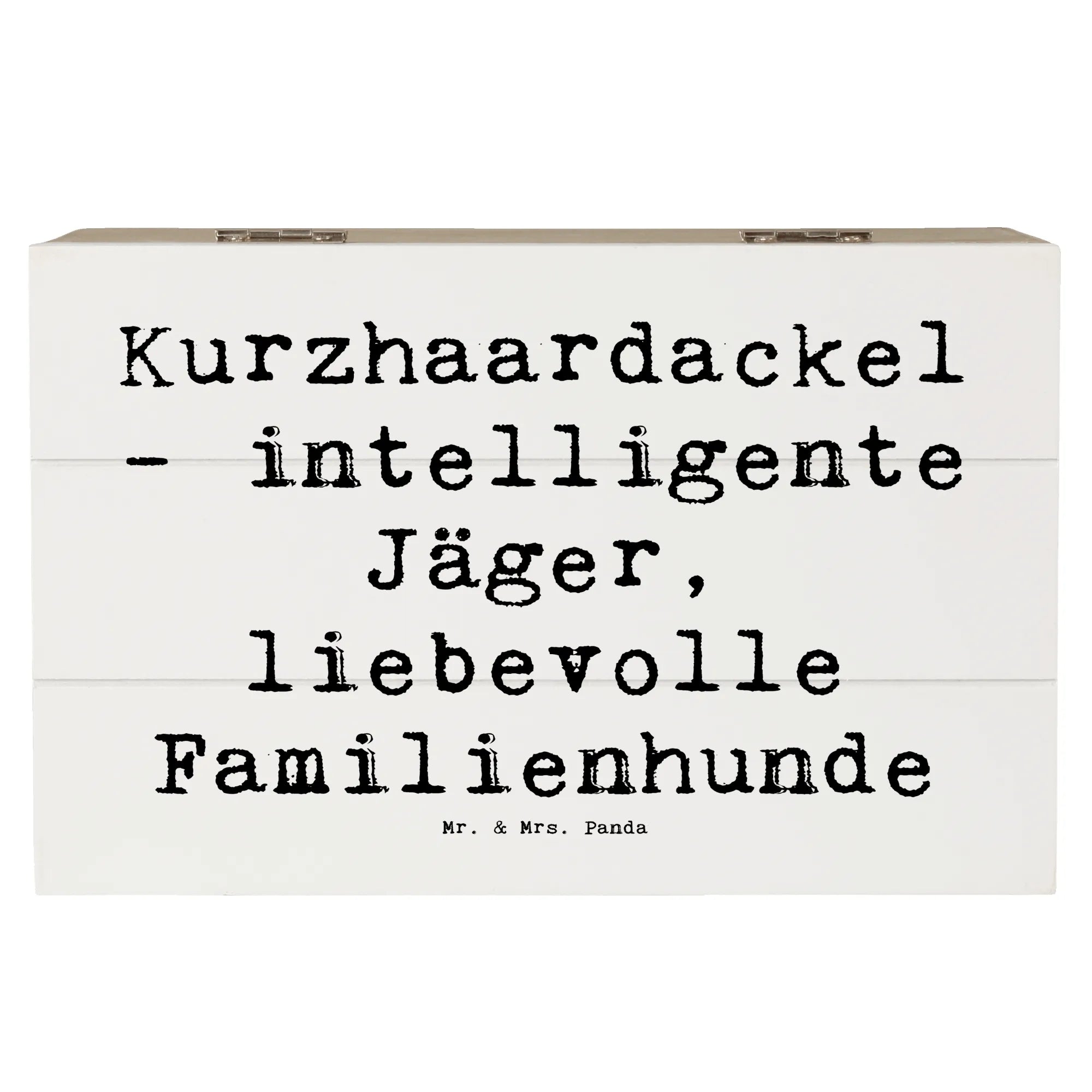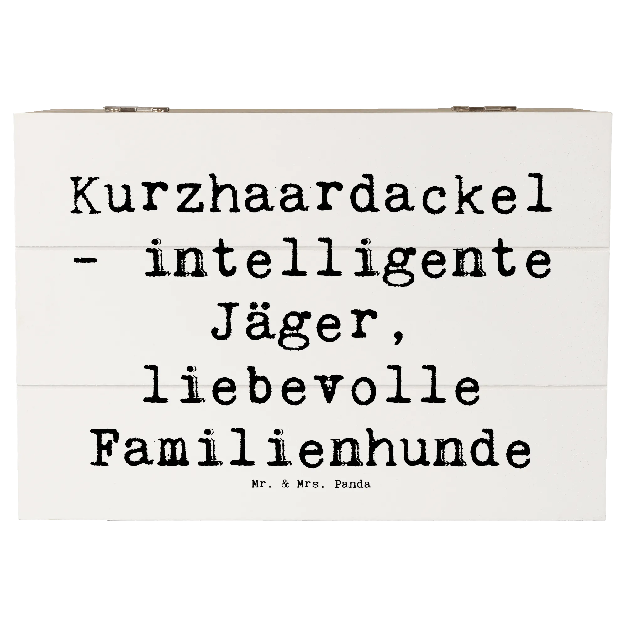 Die wunderschöne Holzkiste mit dem Motiv "Kurzhaardackel - intelligente Jäger, liebevolle Familienhunde" von Mr. & Mrs. Panda ist das perfekte Geschenk für alle Hundefans! Mit ihrer stabilen Verarbeitung und der charmanten Gestaltung ist sie ideal als Aufbewahrungsort für all die kleinen Schätze, die du in deinem Leben gesammelt hast.