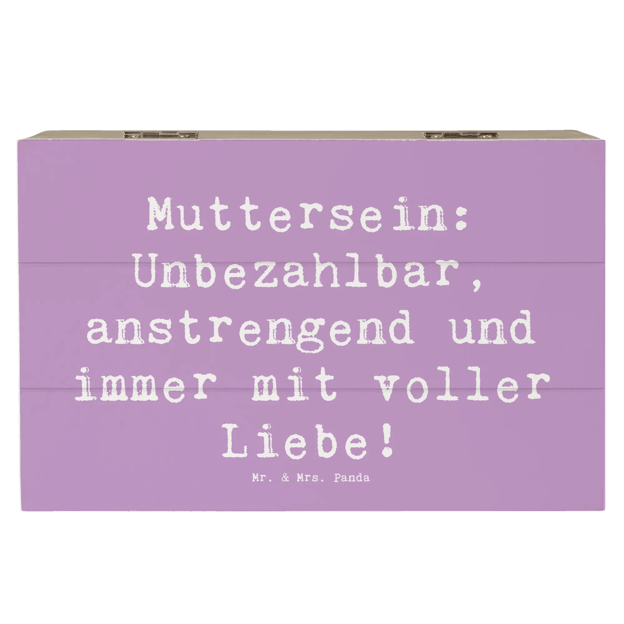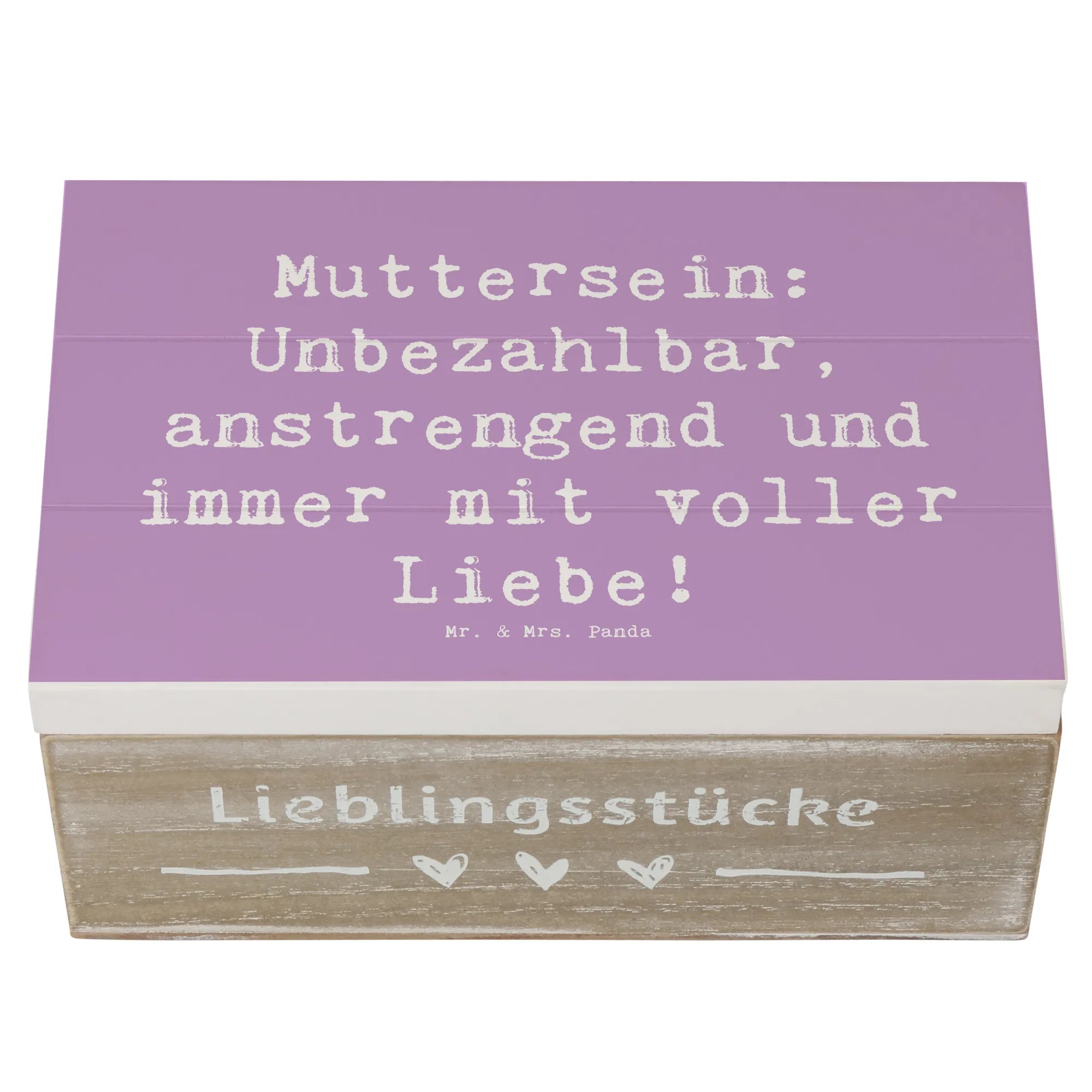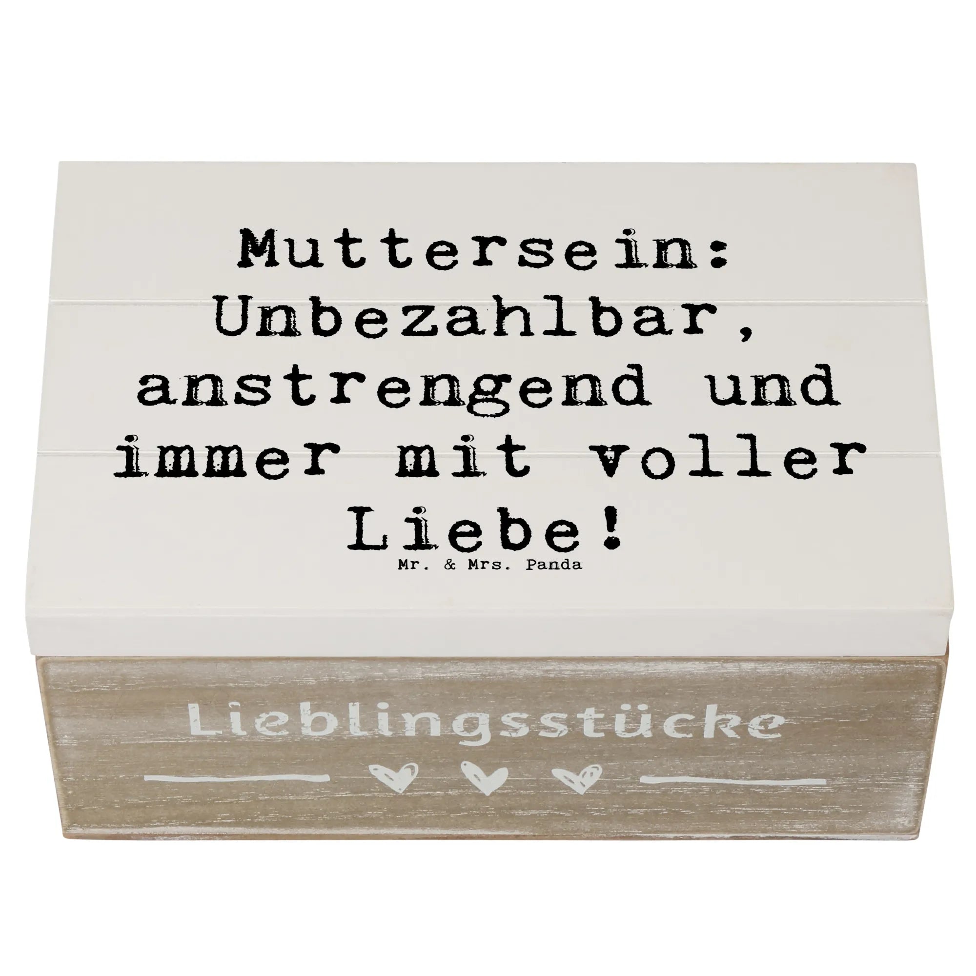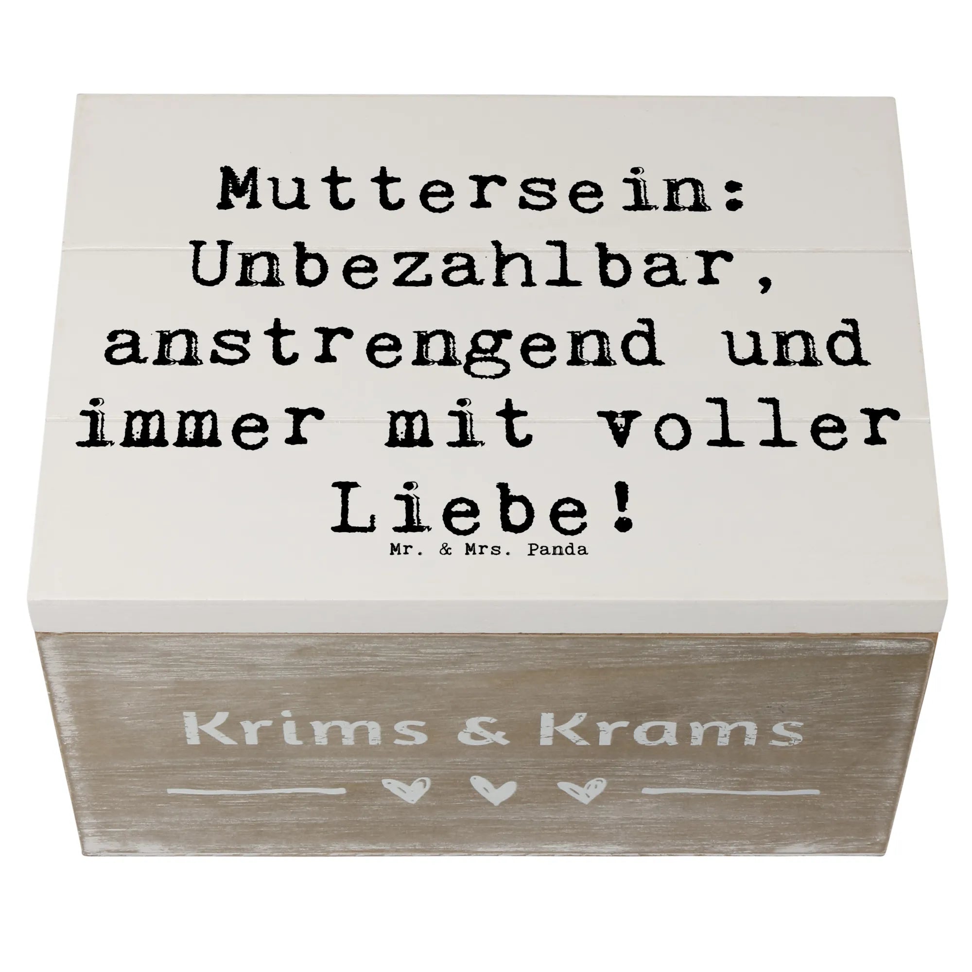 Die Beziehung zwischen einer Mutter und ihrem Kind ist einzigartig und unvergleichlich. Das Motiv auf dieser Kiste zeigt die unendliche Liebe, Unterstützung und Fürsorge, die jede Mama ihren Kindern gibt. Der Spruch "Muttersein: Unbezahlbar, anstrengend und immer mit voller Liebe!" fängt die Emotionen perfekt ein und macht die Kiste zu einem besonders geschätzten Geschenk am Muttertag, zum Geburtstag oder einfach als herzlichen Dankeschön für die wundervolle Mama in Deinem Leben.