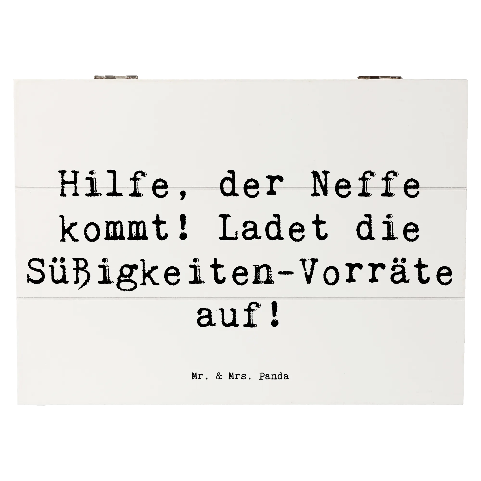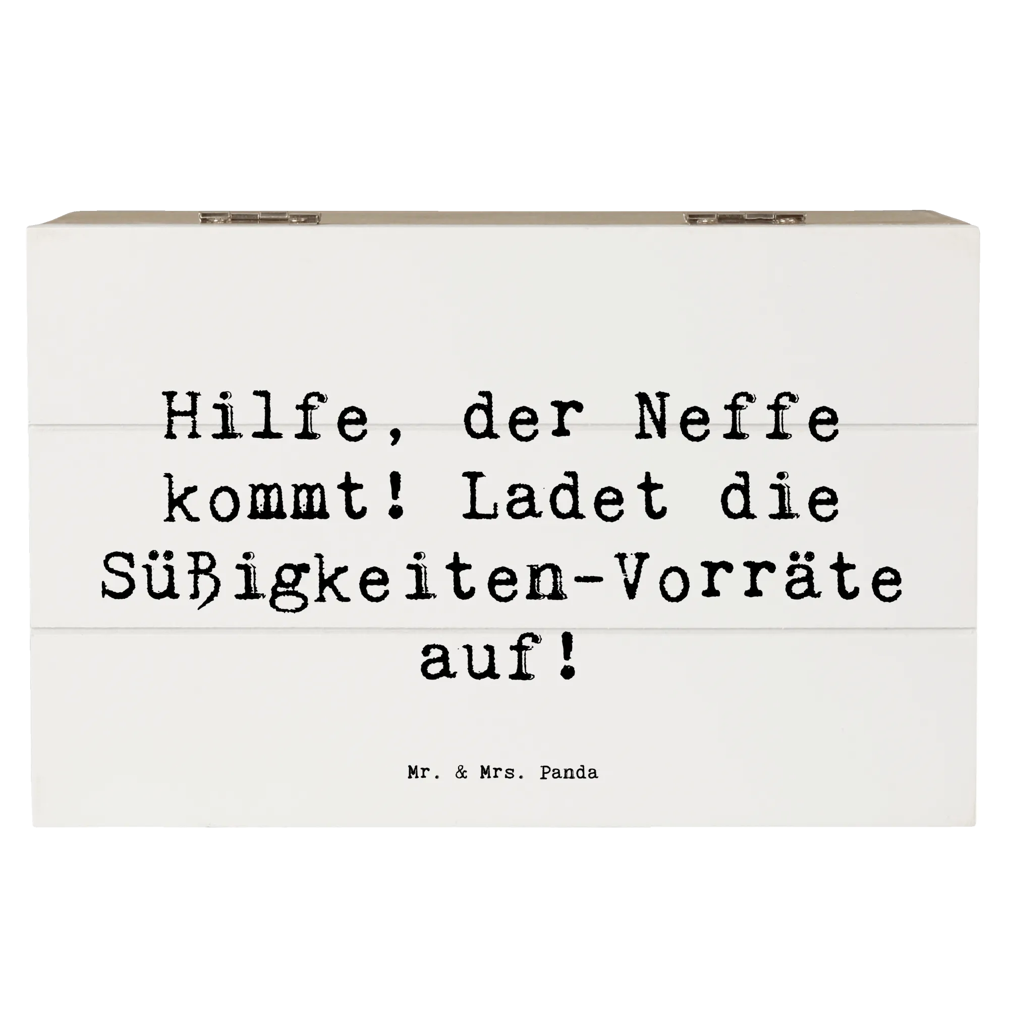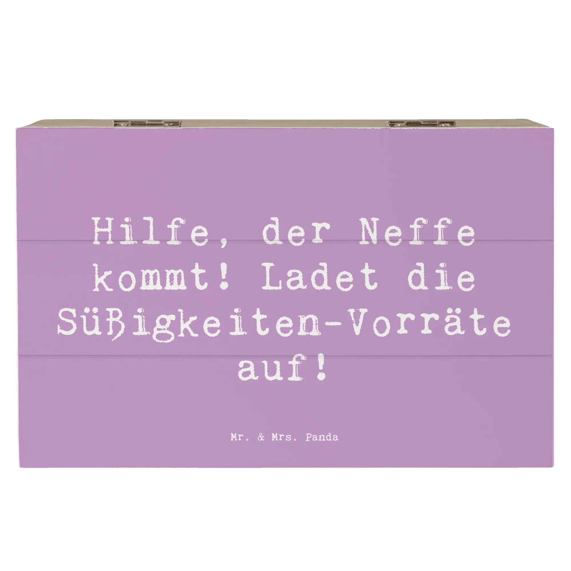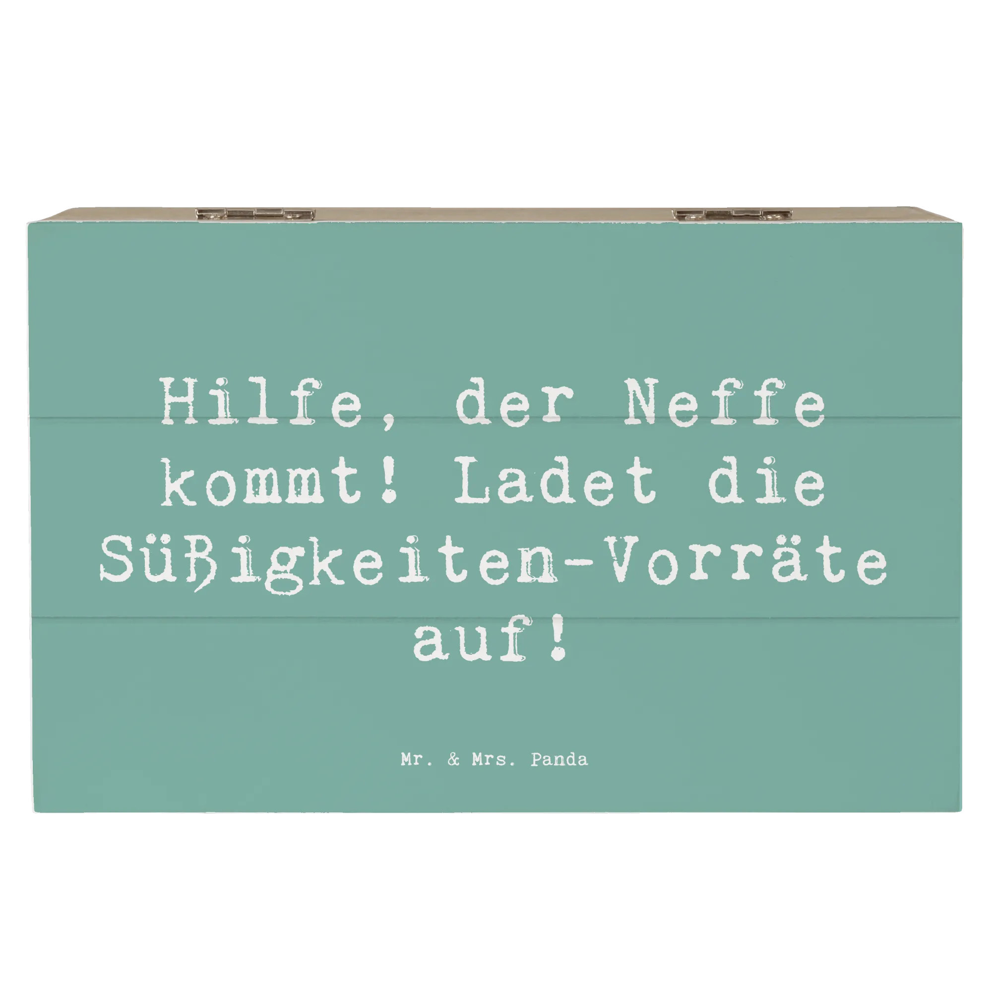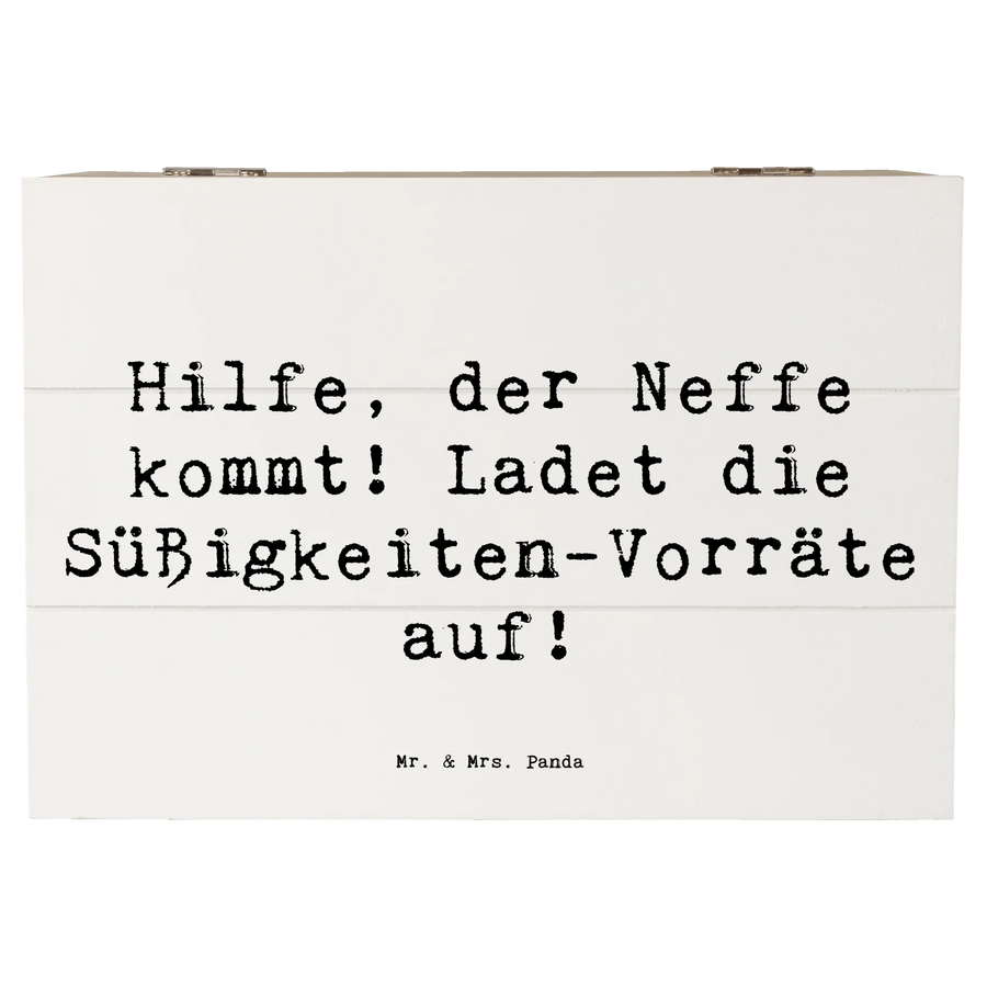 Entdecke die bezaubernde Holzkiste für deinen lieben Neffen aus der Familie & Verwandte Kollektion von Mr. & Mrs. Panda! Diese schöne Holzkiste ist mehr als nur ein Aufbewahrungsort. Sie ist ein Ort voller Erinnerungen, Abenteuer und besonderer Momente, die du mit deinem Neffen teilen wirst. Mit einem charmanten Spruch, 'Hilfe, der Neffe kommt! Ladet die Süßigkeiten-Vorräte auf!', sorgt diese Schatzkiste sofort für gute Laune und erhellt jedes Kinderzimmer.