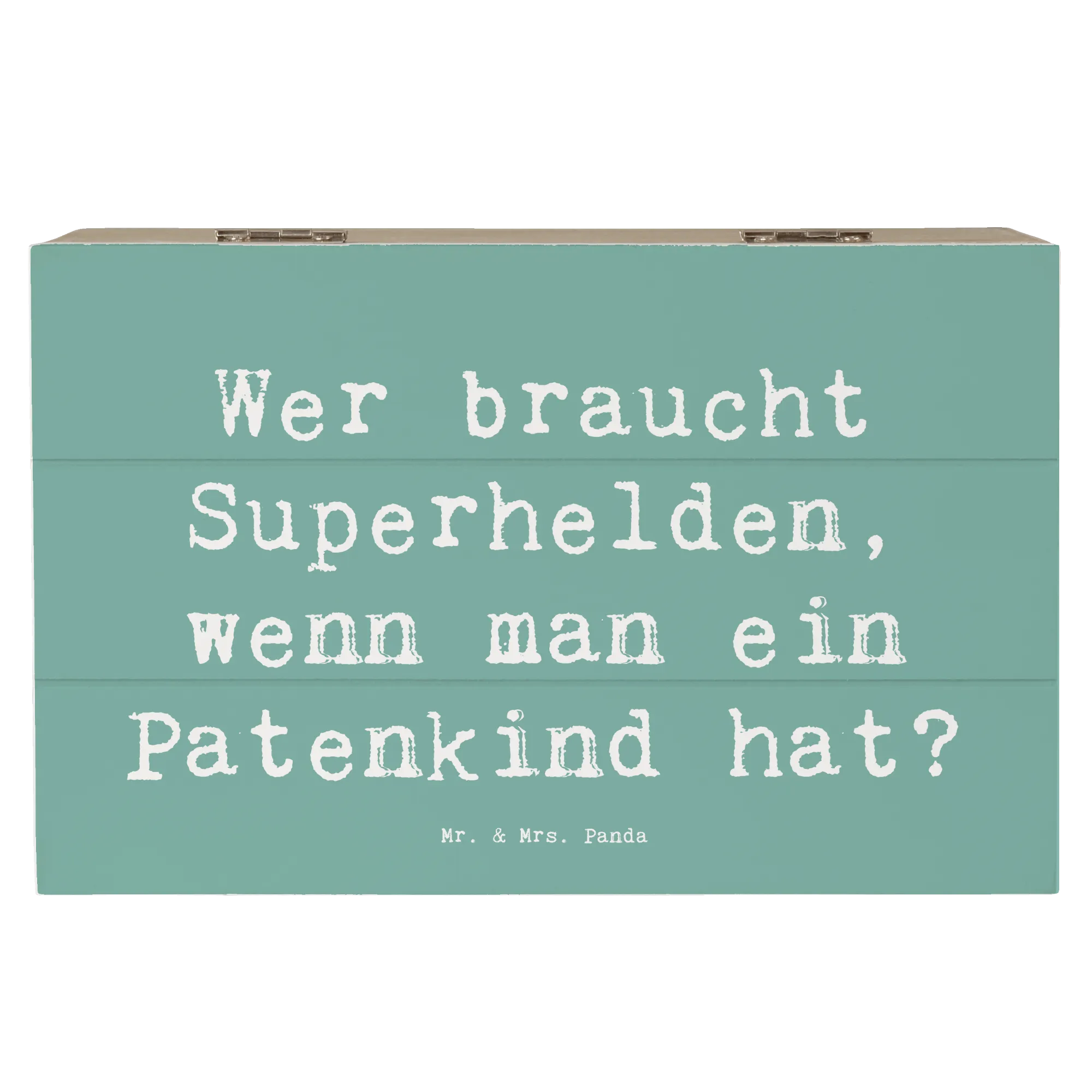 Ein ganz besonderes Geschenk aus der Kollektion Familie & Verwandte von Mr. & Mrs. Panda. Die Kiste ist nicht personalisierbar, strahlt aber durch ihre charmante Gestaltung ein Gefühl von Fürsorge und Liebe aus. Wenn du also nach einem bedeutungsvollen Geschenk suchst, das Lächeln ins Gesicht deines Patenkindes zaubern wird, hast du mit dieser Holzkiste genau das Richtige gefunden. Sie ist zudem eine nachhaltige und wiederverwendbare Geschenkbox, die du immer wieder verwenden kannst. Einfach mit einem feuchten Tuch abwischen, und sie bleibt wunderschön!