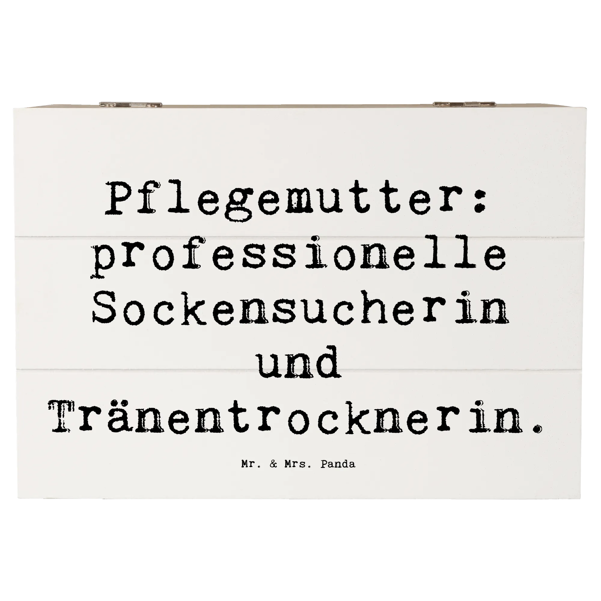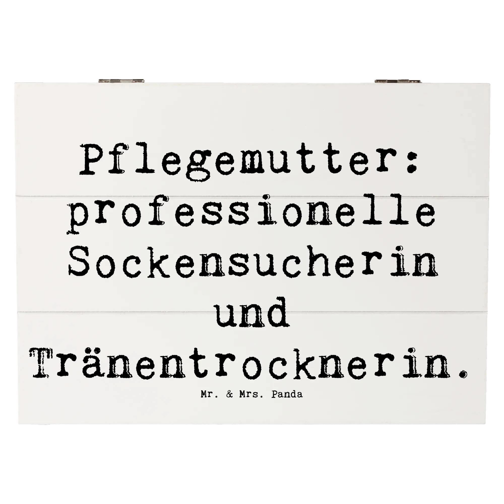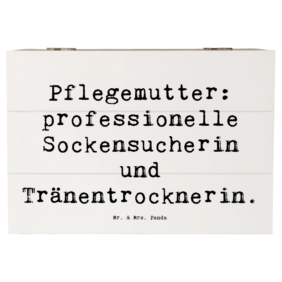 Die fantastische Holzkiste mit dem Motiv Pflegemutter von Mr. & Mrs. Panda ist das perfekte Geschenk für alle, die Pflegeeltern ehren und wertschätzen wollen. Diese wunderschöne Erinnerungskiste bietet nicht nur Platz für wertvolle Schätze, sondern ist auch ein liebevolles Andenken an besondere Momente. Mit dem Slogan „Pflegemutter: professionelle Sockensucherin und Tränentrocknerin“ wird die wichtige Rolle von Pflegeeltern auf charmante Weise gewürdigt.
