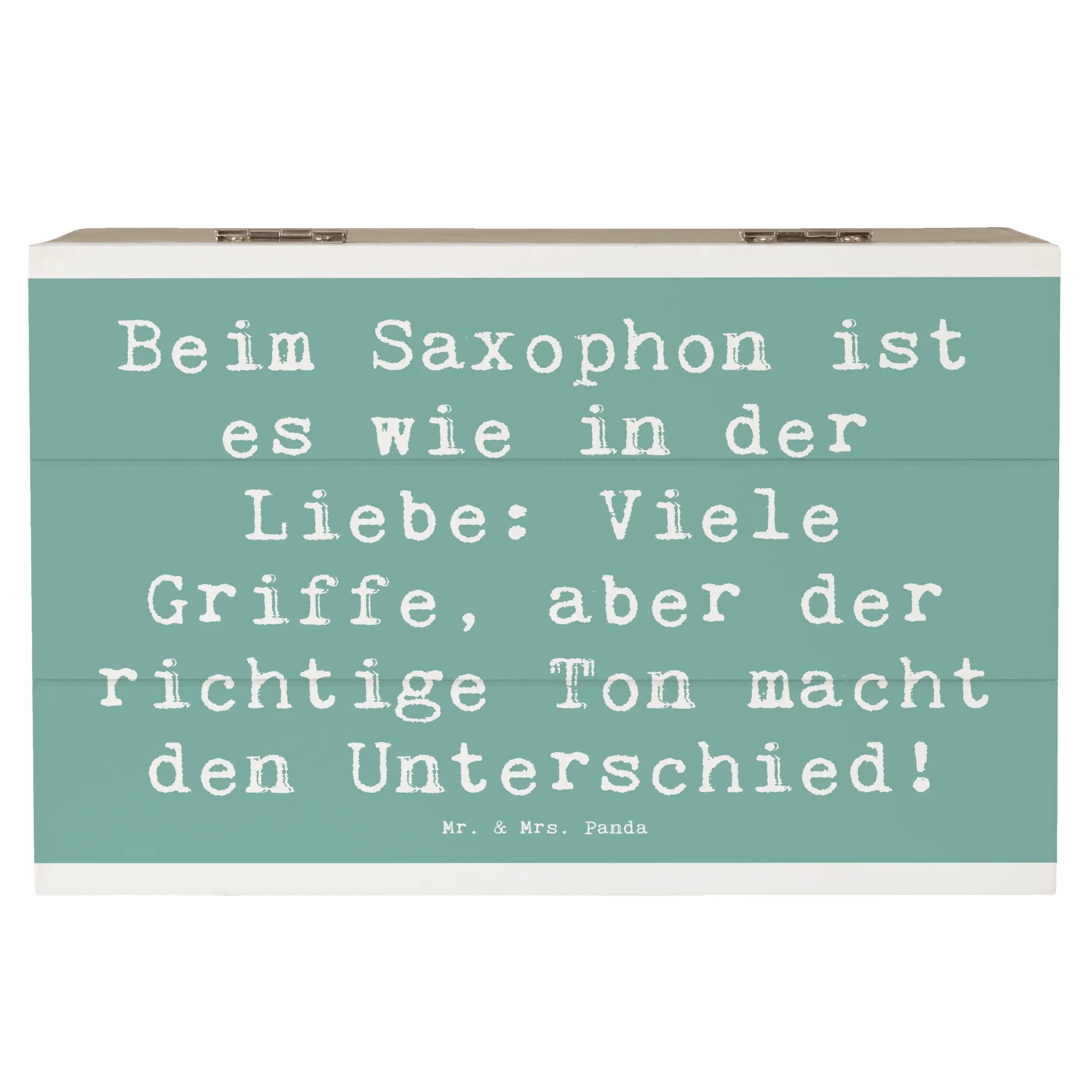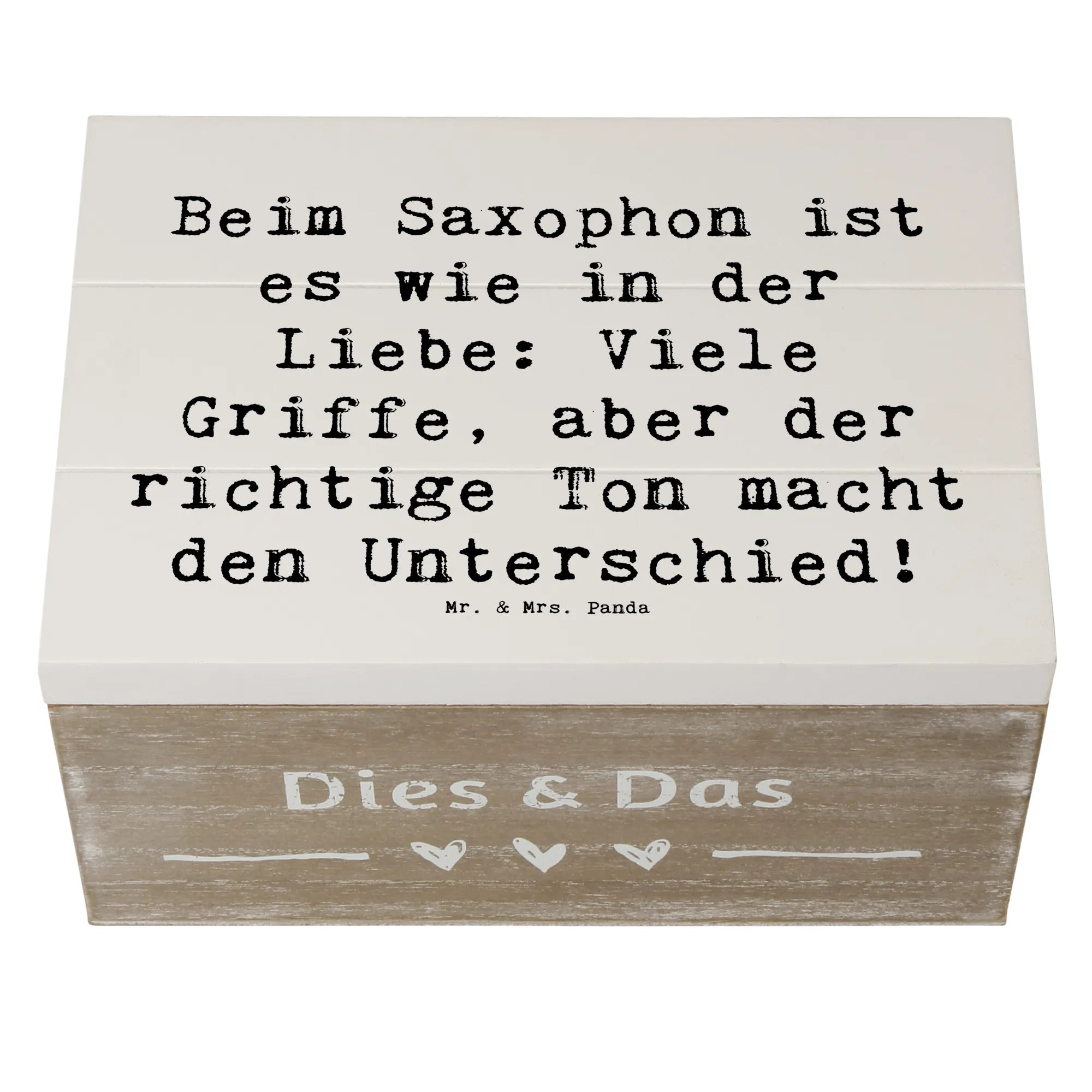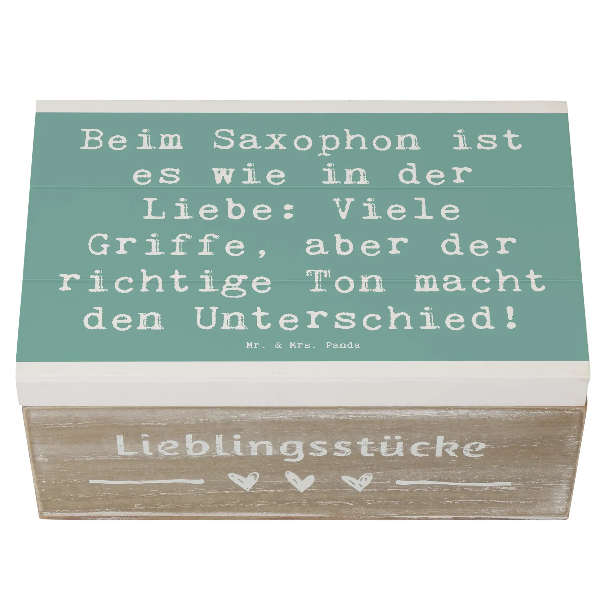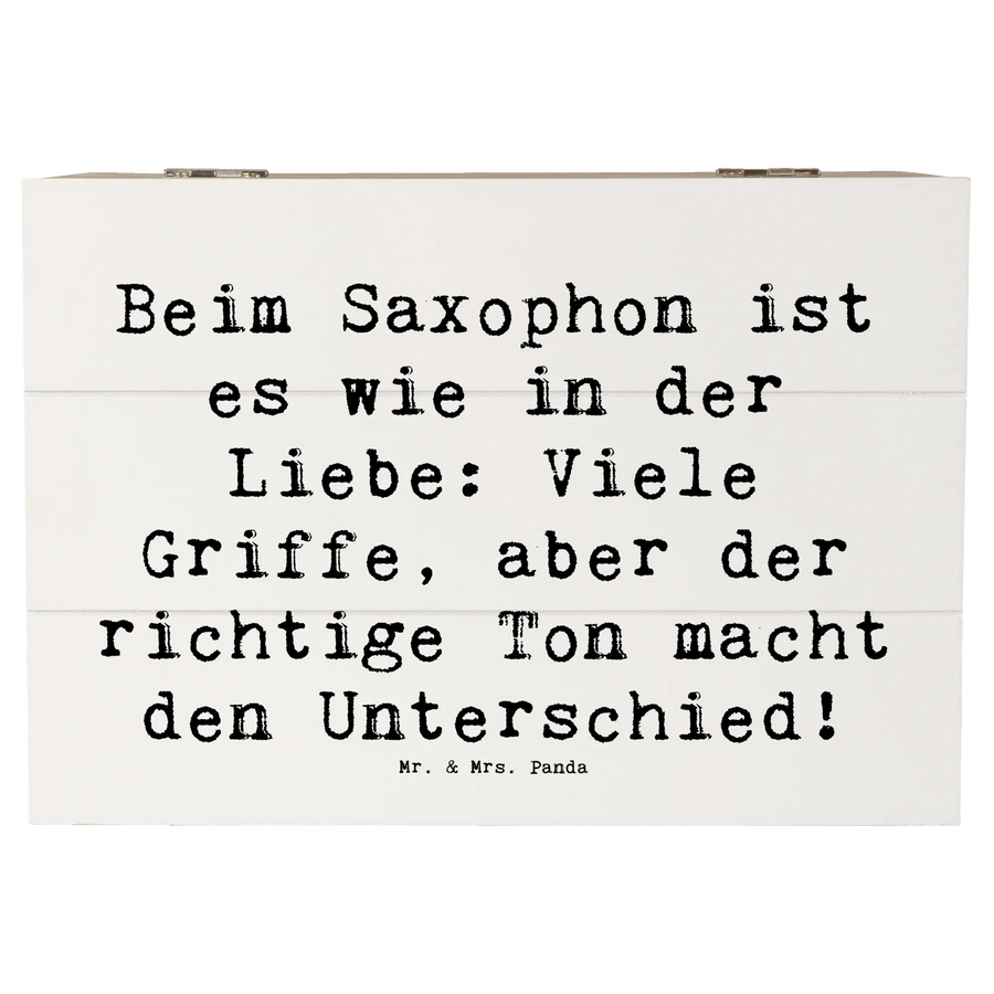 Die wunderschöne Holzkiste von Mr. & Mrs. Panda ist das perfekte Geschenk für jeden Musiker und Musikliebhaber! Mit ihrem bezaubernden Saxophon-Motiv und dem liebevollen Spruch 'Beim Saxophon ist es wie in der Liebe: Viele Griffe, aber der richtige Ton macht den Unterschied!' bringt diese Erinnerungsbox nicht nur Freude, sondern auch eine persönliche Note in jeden Raum. Ob als Schatzkiste für wichtige Erinnerungen, als Aufbewahrungsort für Musikinstrumente oder als stilvolle Dekokiste – diese Kiste ist ein wahrer Alleskönner!