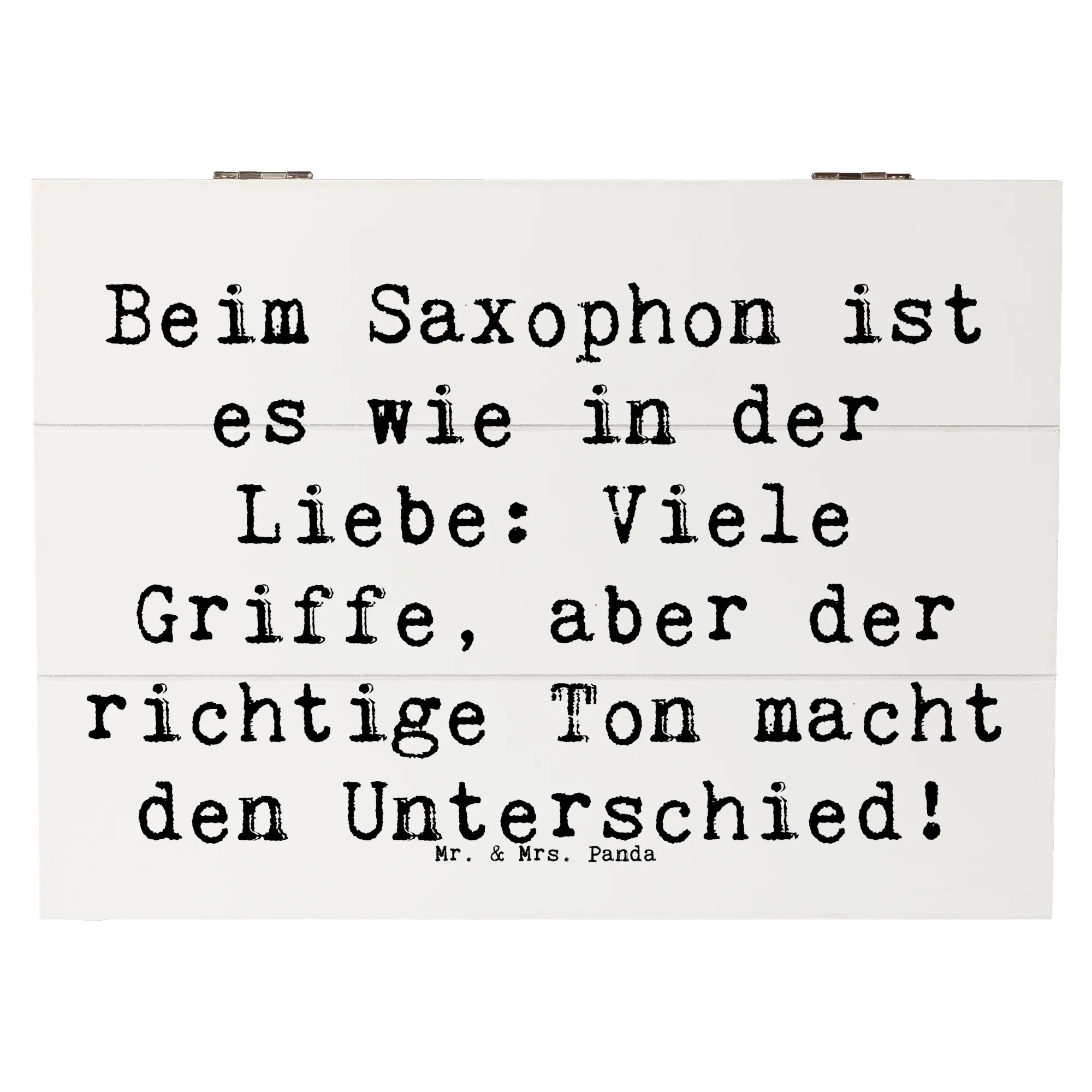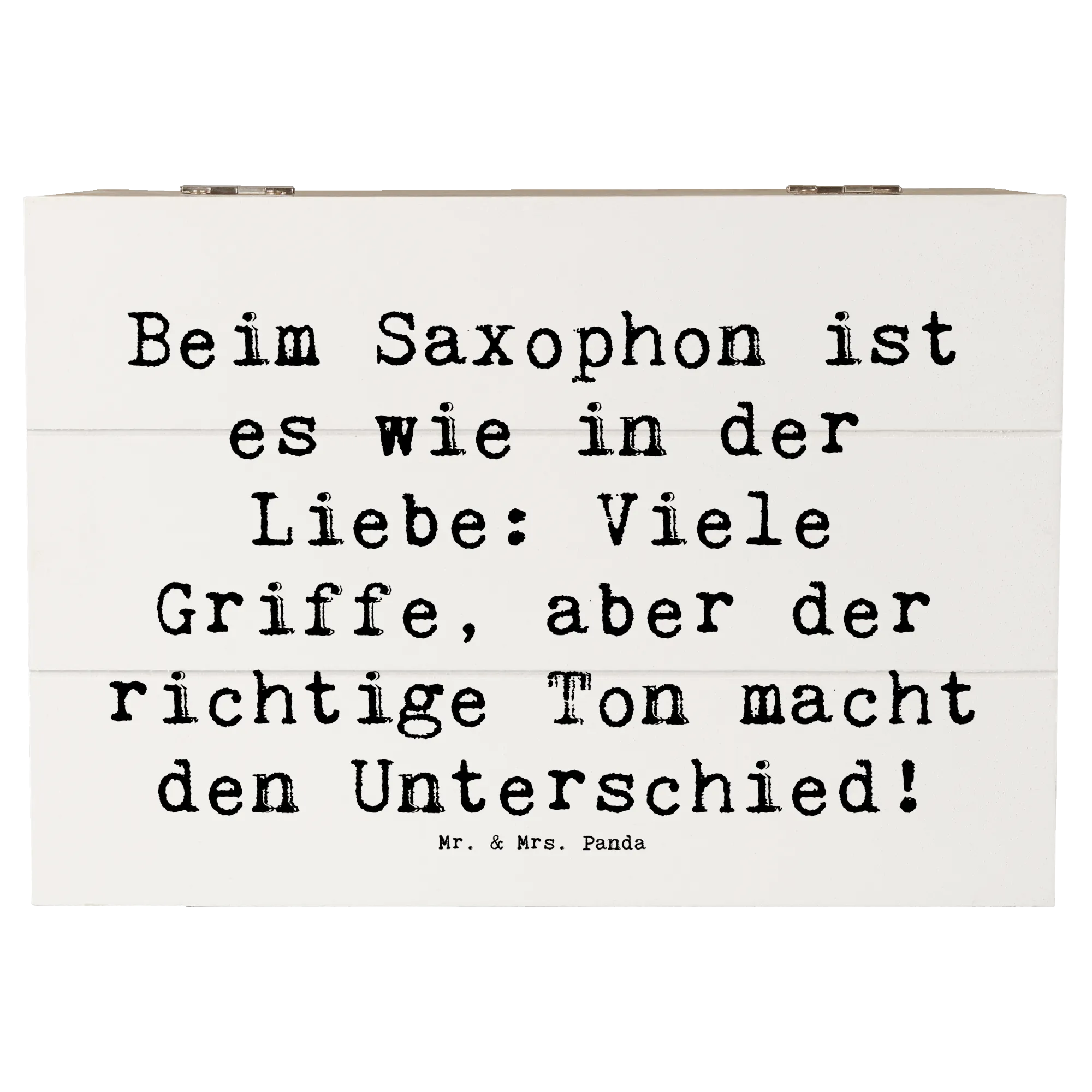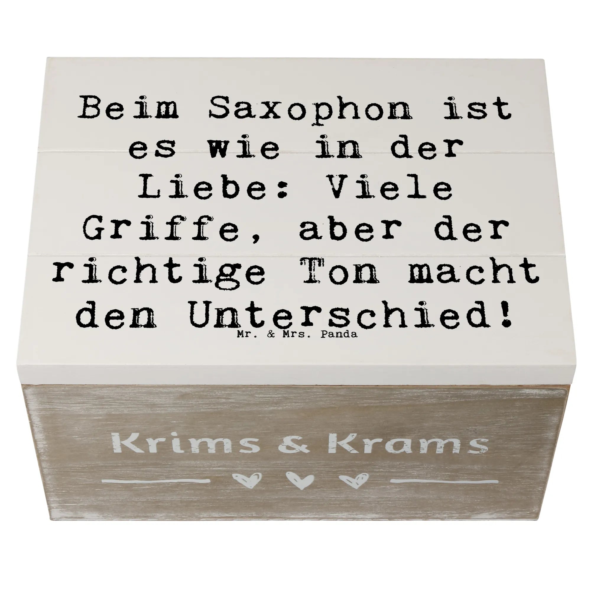 Die wunderschöne Holzkiste von Mr. & Mrs. Panda ist das perfekte Geschenk für jeden Musiker und Musikliebhaber! Mit ihrem bezaubernden Saxophon-Motiv und dem liebevollen Spruch 'Beim Saxophon ist es wie in der Liebe: Viele Griffe, aber der richtige Ton macht den Unterschied!' bringt diese Erinnerungsbox nicht nur Freude, sondern auch eine persönliche Note in jeden Raum. Ob als Schatzkiste für wichtige Erinnerungen, als Aufbewahrungsort für Musikinstrumente oder als stilvolle Dekokiste – diese Kiste ist ein wahrer Alleskönner!