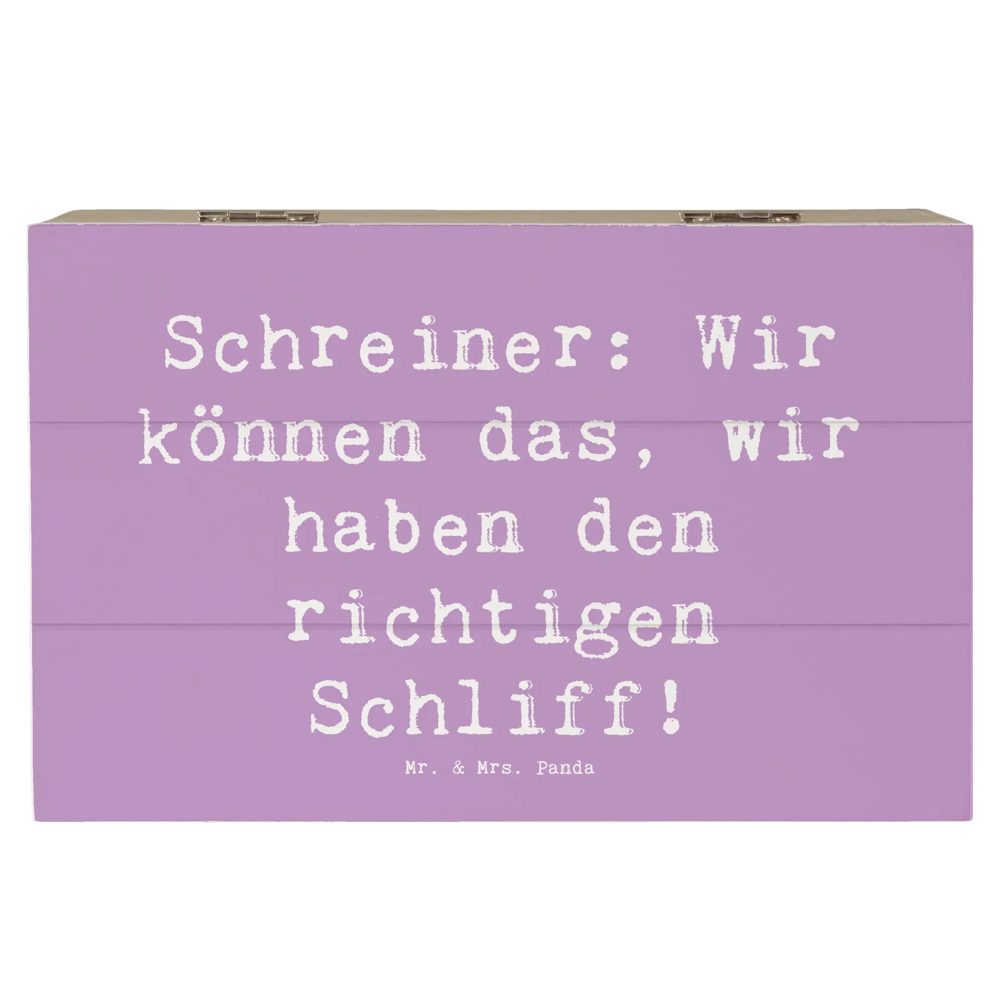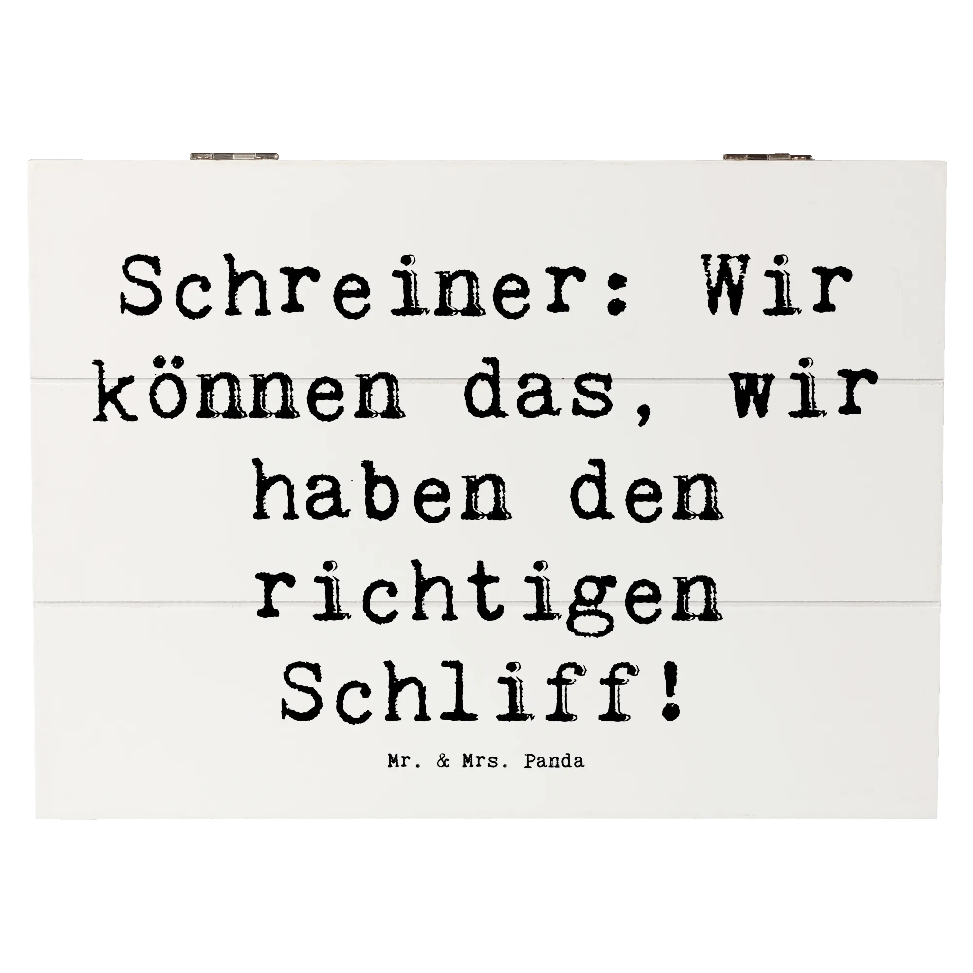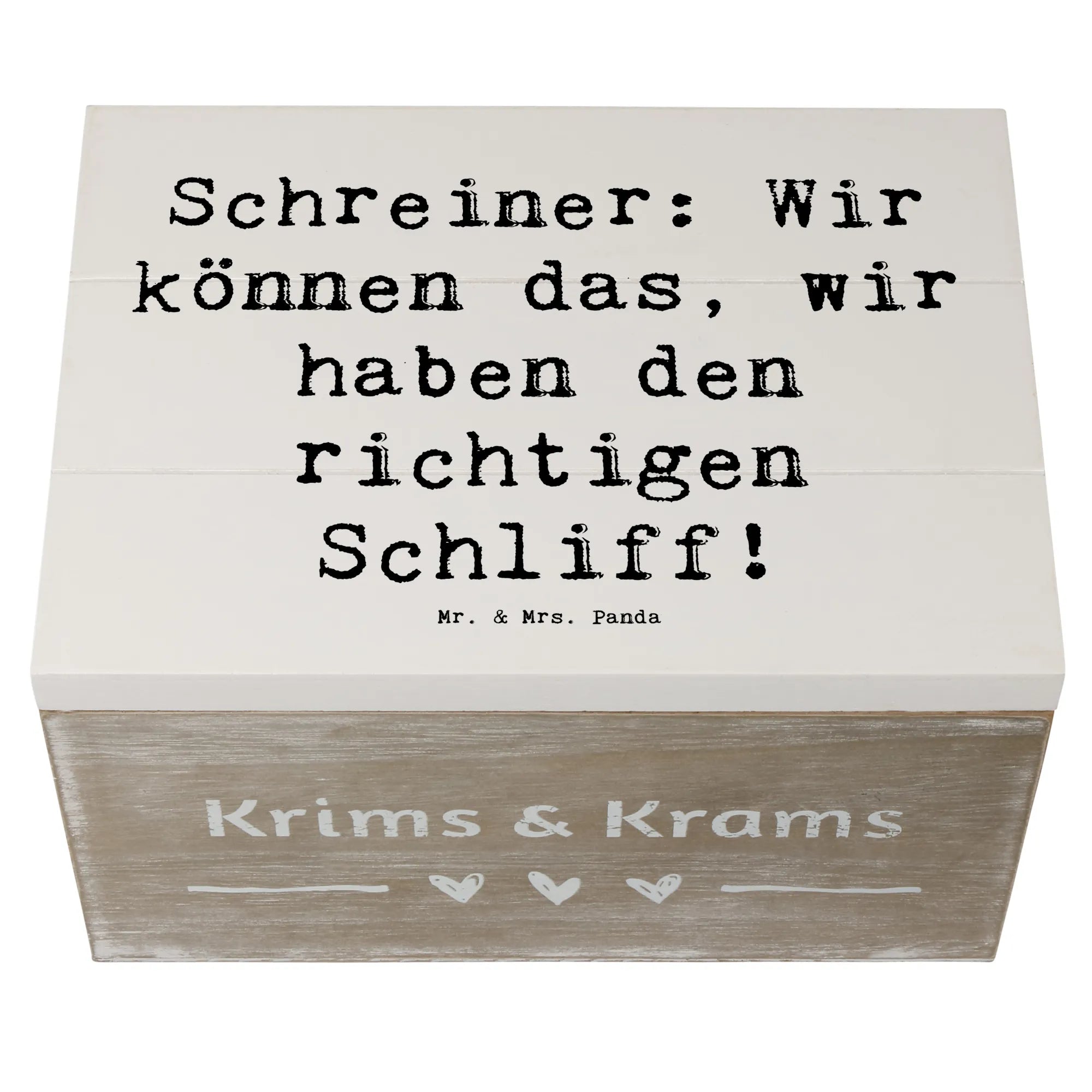 Eine wunderschöne Holzkiste von Mr. & Mrs. Panda, die nicht nur funktional, sondern auch ein echter Blickfang ist. Sie ist ideal als Aufbewahrungsort für Deine wertvollsten Erinnerungen, Schätze oder auch als Dekokiste für besondere Anlässe. Mit dem liebevollen Motiv "Schreiner: Wir können das, wir haben den richtigen Schliff!" aus der Berufe-Kollektion von Mr. & Mrs. Panda ist diese Kiste ein perfektes Geschenk für jeden Schreiner, Holzarbeiter oder einfach für jeden, der den Beruf des Schreiners wertschätzt.