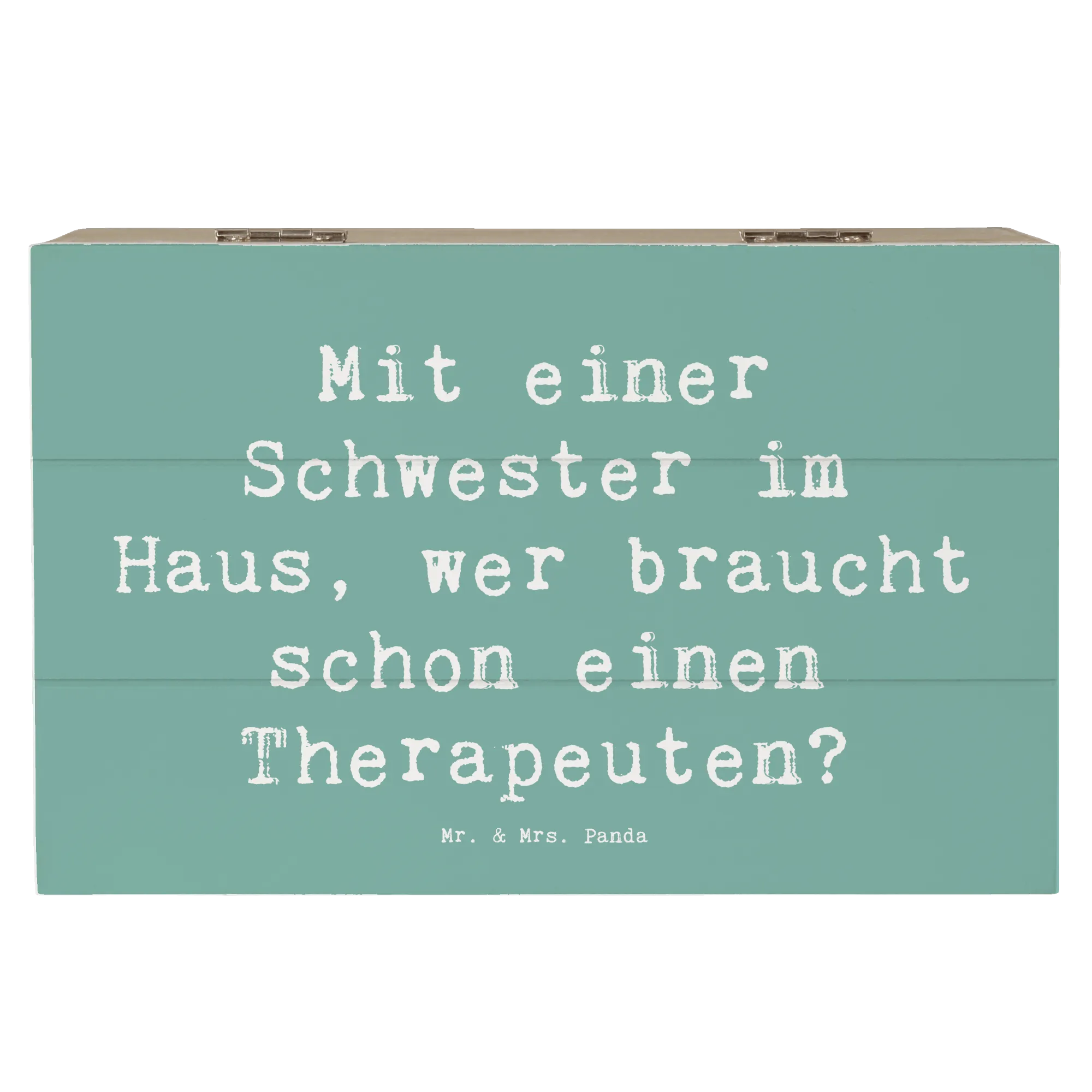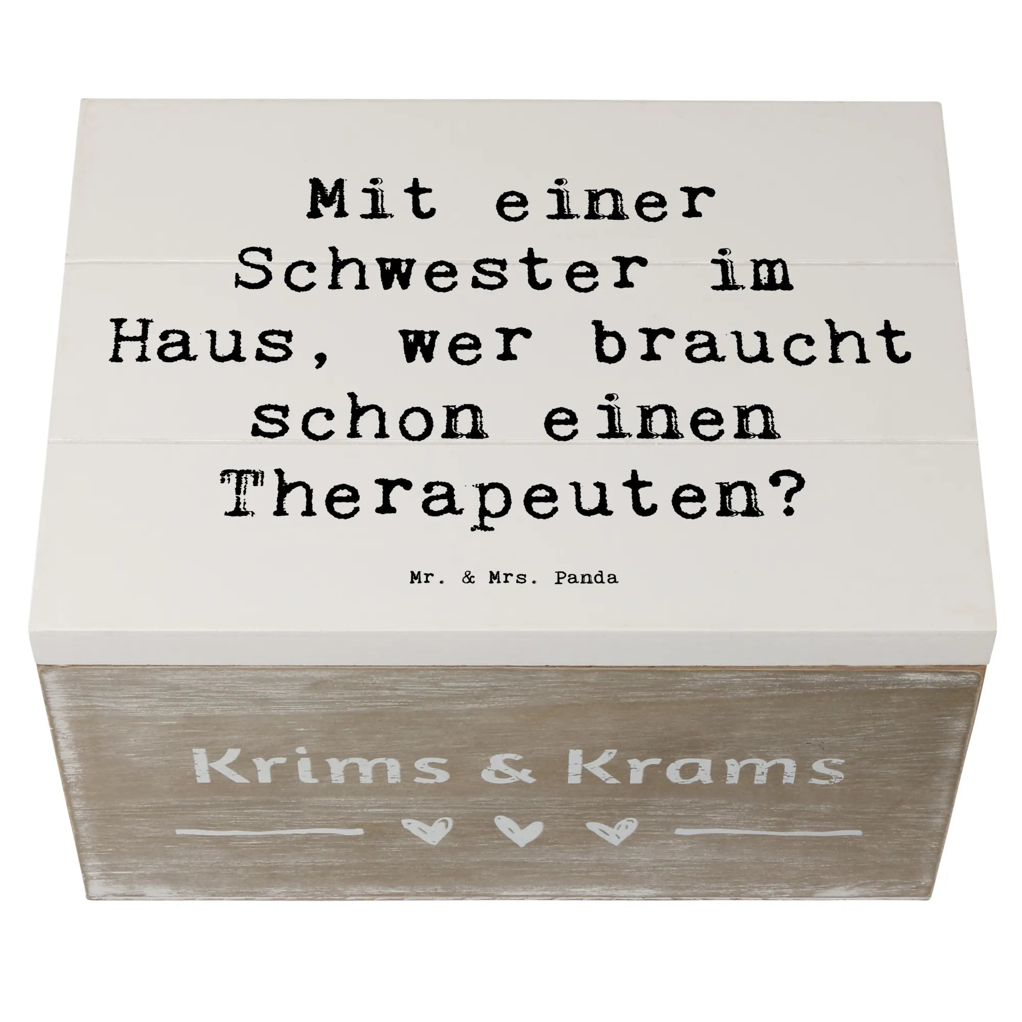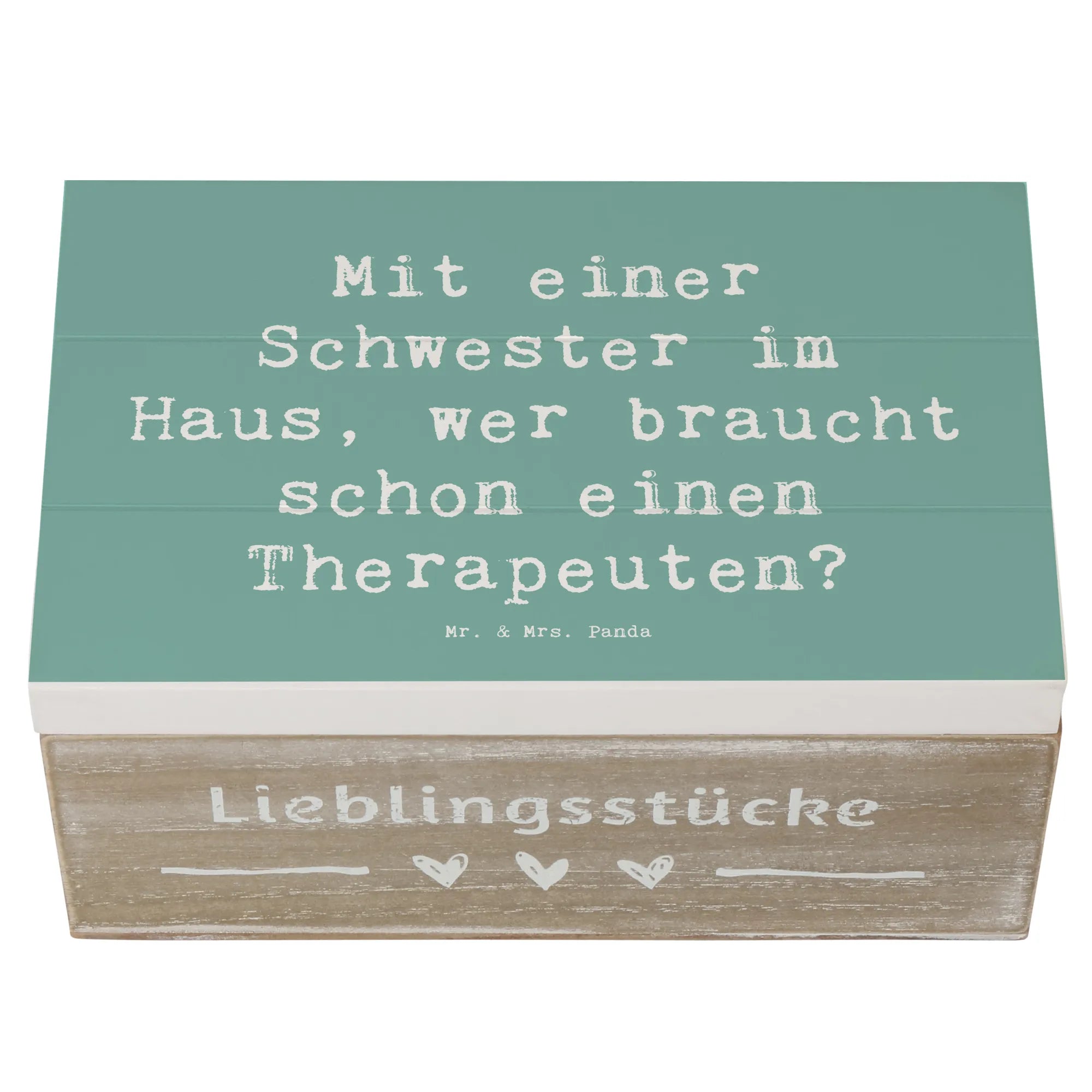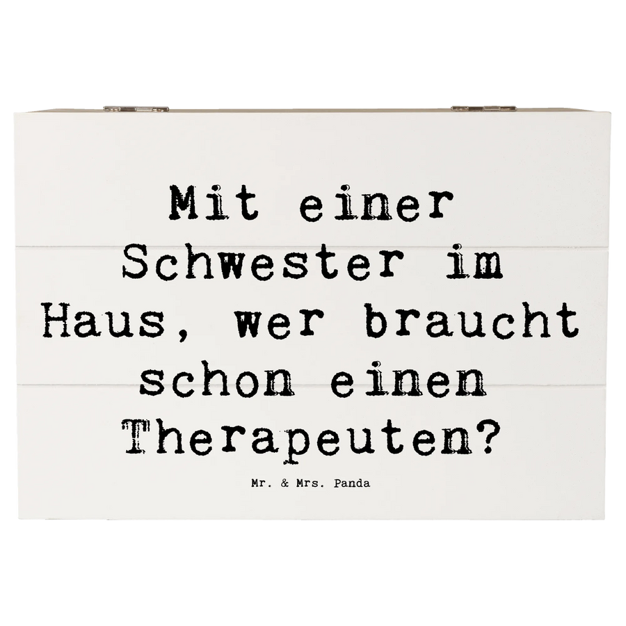 Diese einzigartige Kiste mit dem liebevollen Motto "Mit einer Schwester im Haus, wer braucht schon einen Therapeuten?" fängt die besondere Bindung zwischen Schwestern ein. Ideal für Geschenke an deine Schwester, sei es zum Geburtstag, zu Weihnachten oder einfach als liebevolle Überraschung.
