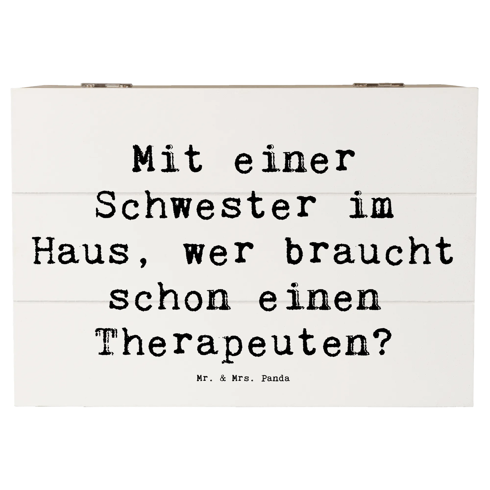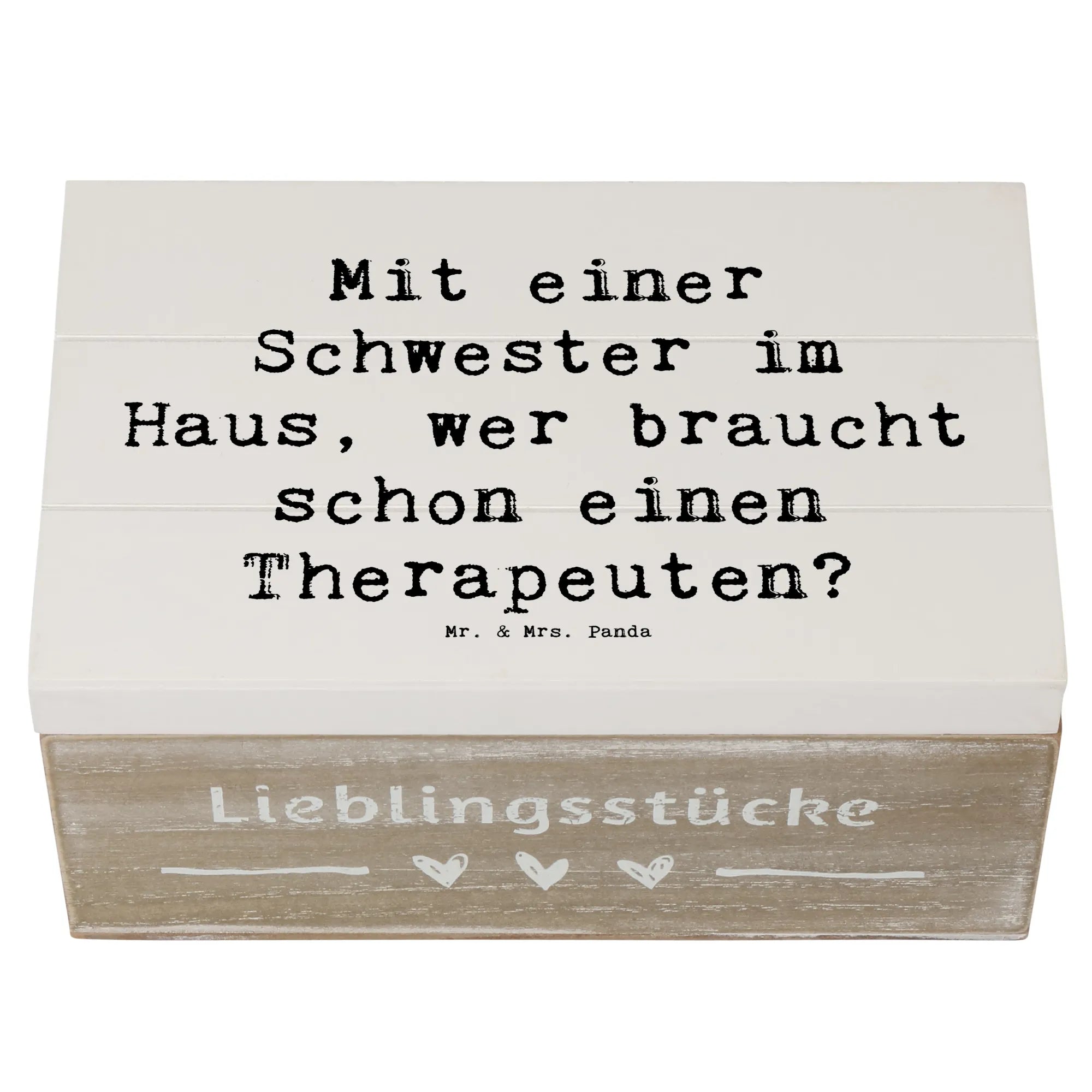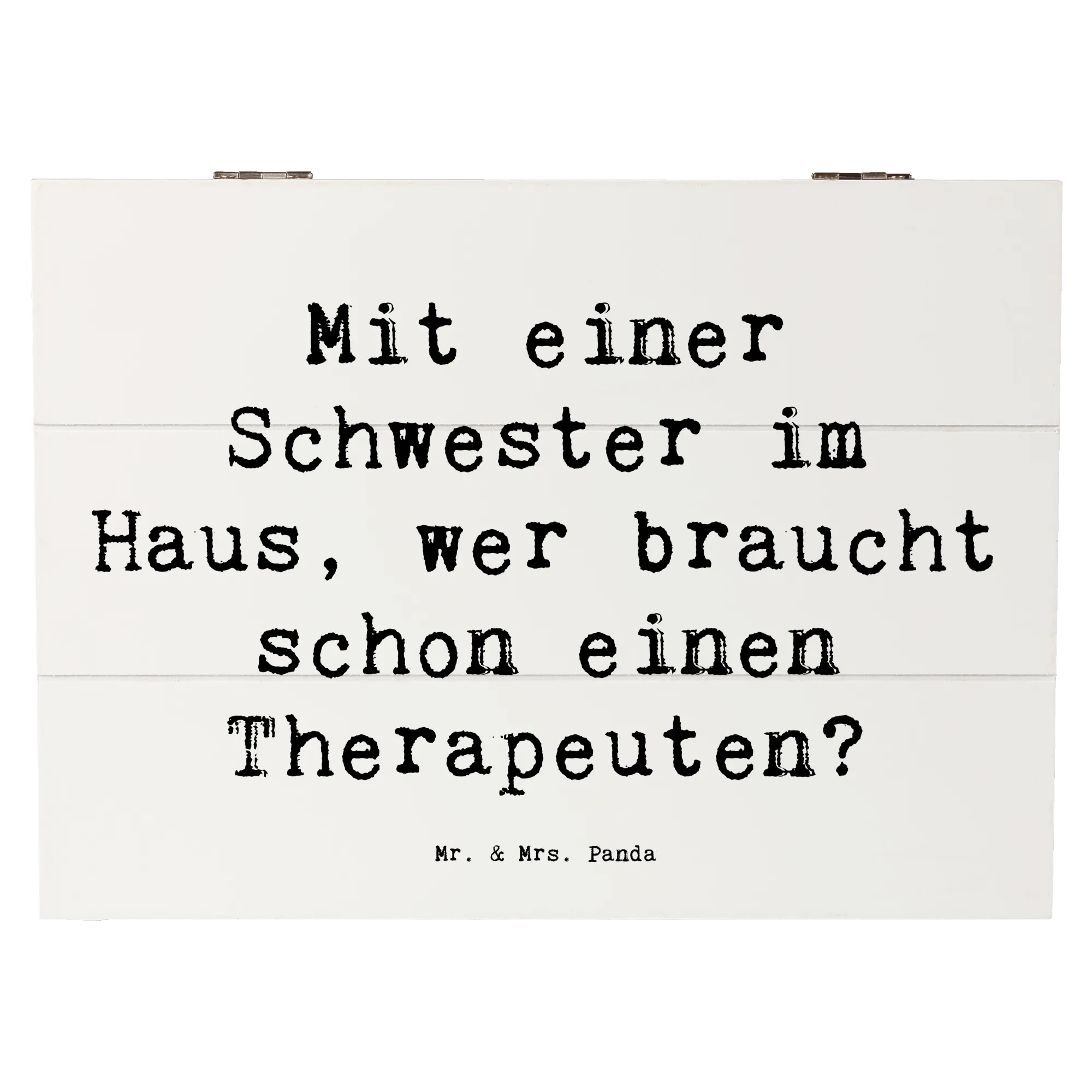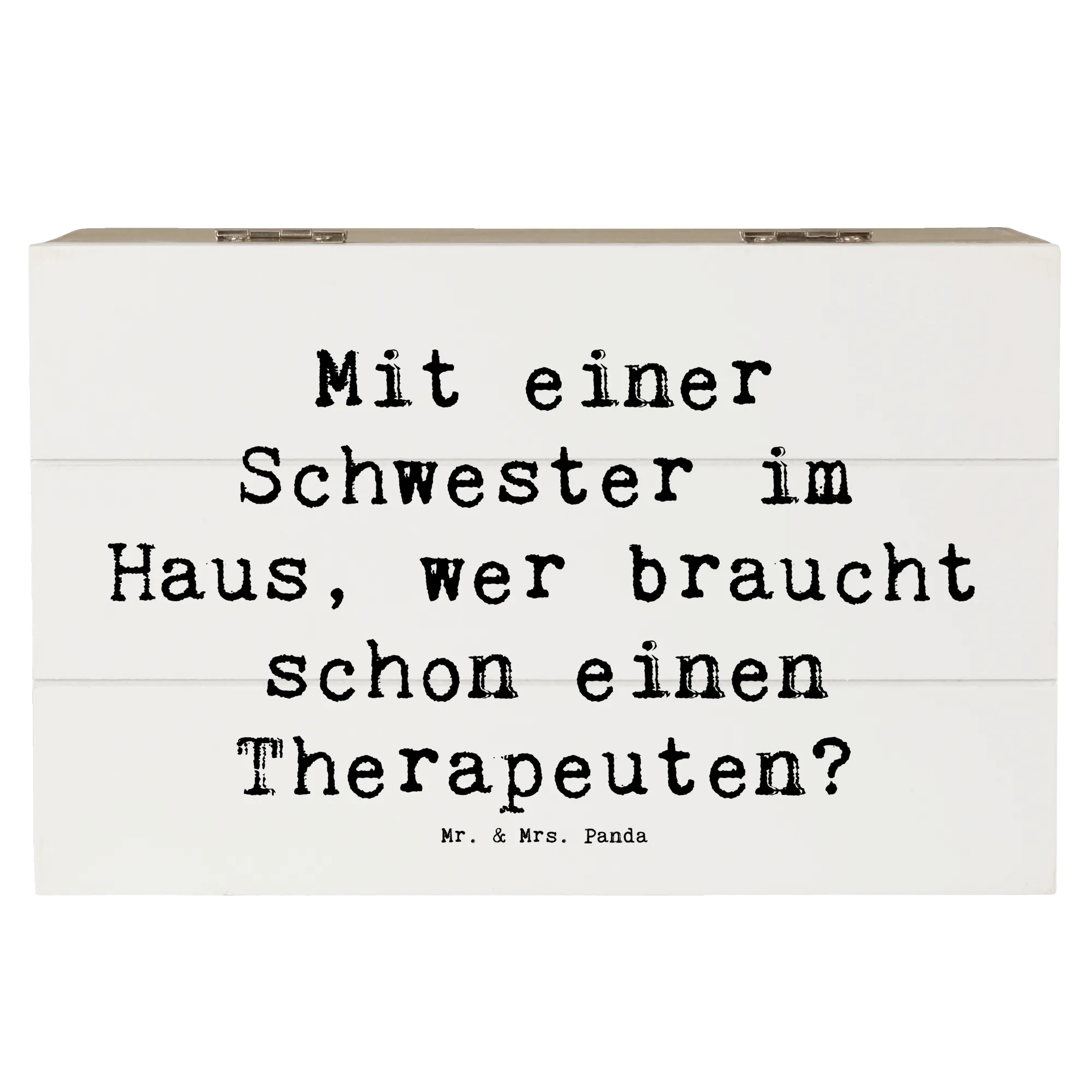 Diese einzigartige Kiste mit dem liebevollen Motto "Mit einer Schwester im Haus, wer braucht schon einen Therapeuten?" fängt die besondere Bindung zwischen Schwestern ein. Ideal für Geschenke an deine Schwester, sei es zum Geburtstag, zu Weihnachten oder einfach als liebevolle Überraschung.