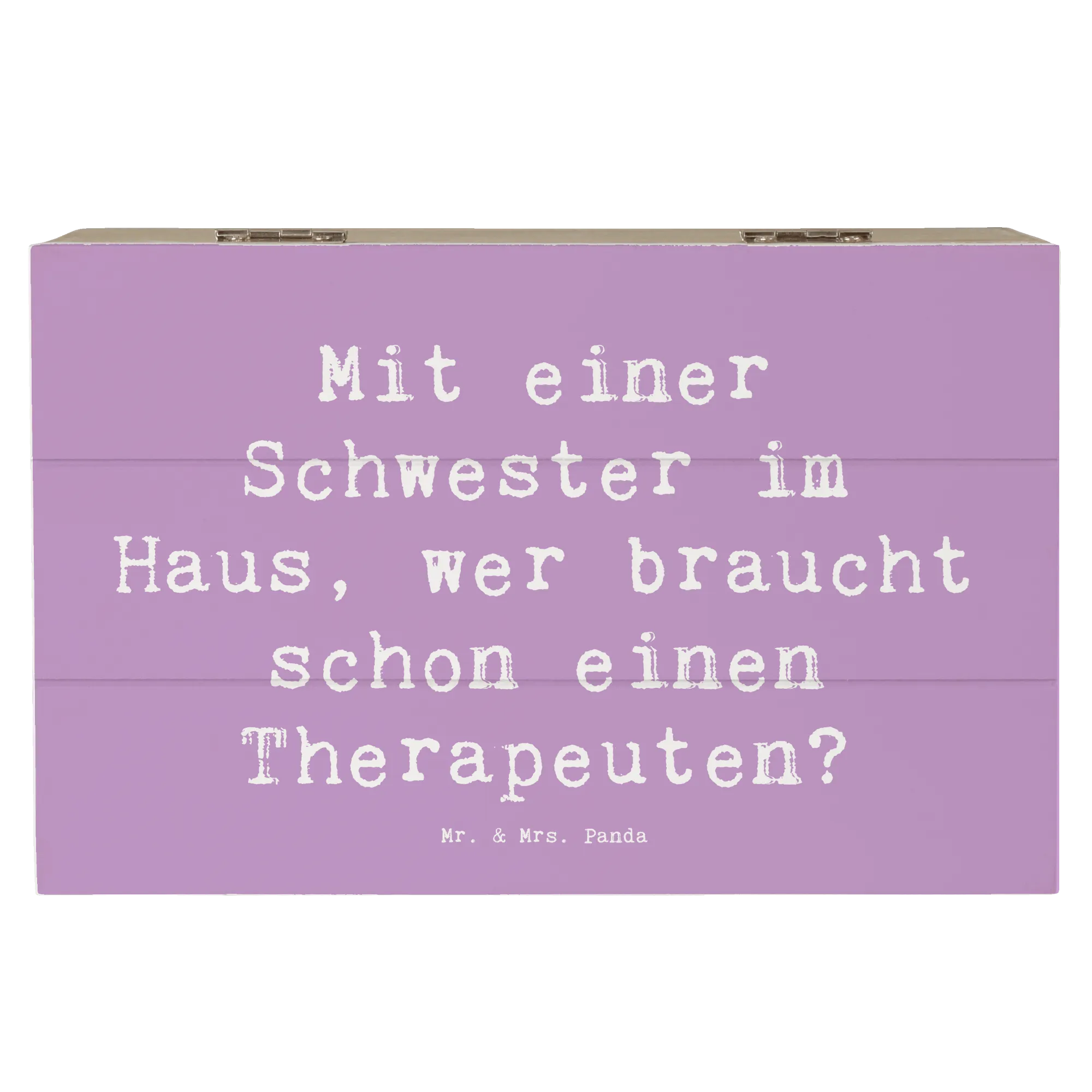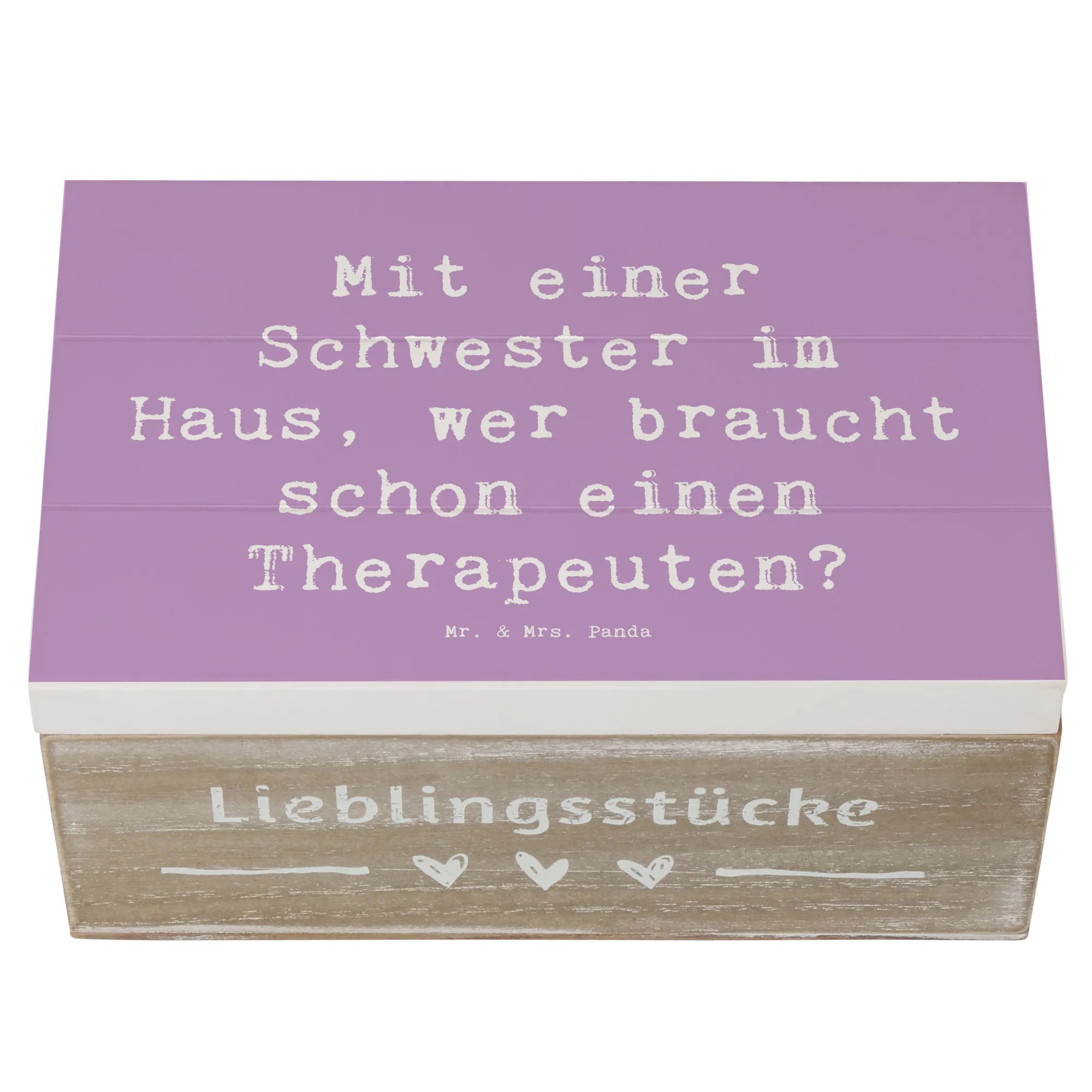 Die wunderschöne Holzkiste von Mr. & Mrs. Panda ist das perfekte Geschenk für alle, die eine besondere Beziehung zu ihrer Schwester haben. Mit dem herzerwärmenden Spruch "Mit einer Schwester im Haus, wer braucht schon einen Therapeuten?" wird diese Kiste nicht nur zum stilvollen Aufbewahrungsort für kleine Schätze, sondern auch zu einem liebevollen Erinnerungsstück.