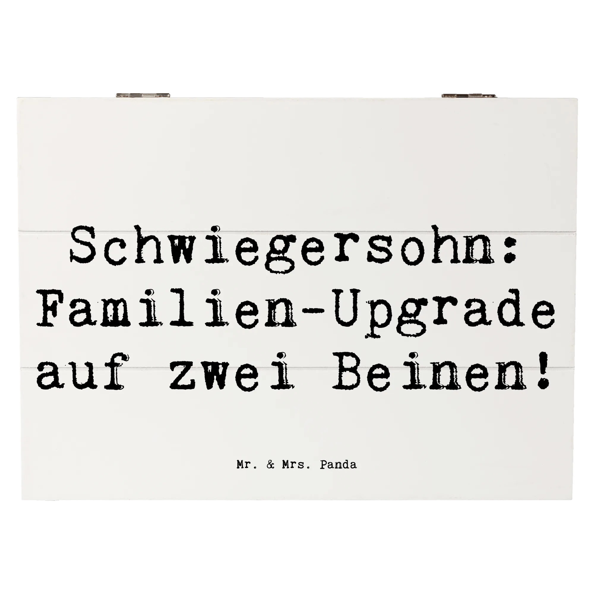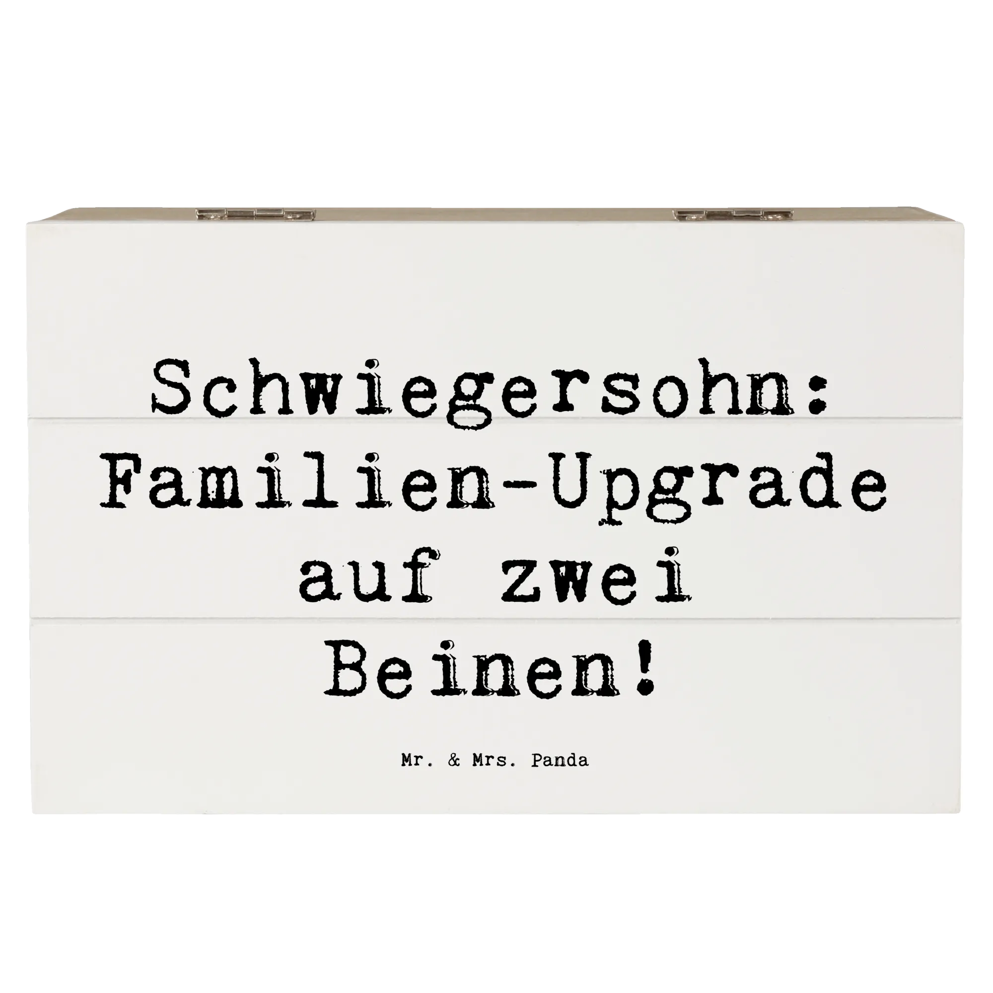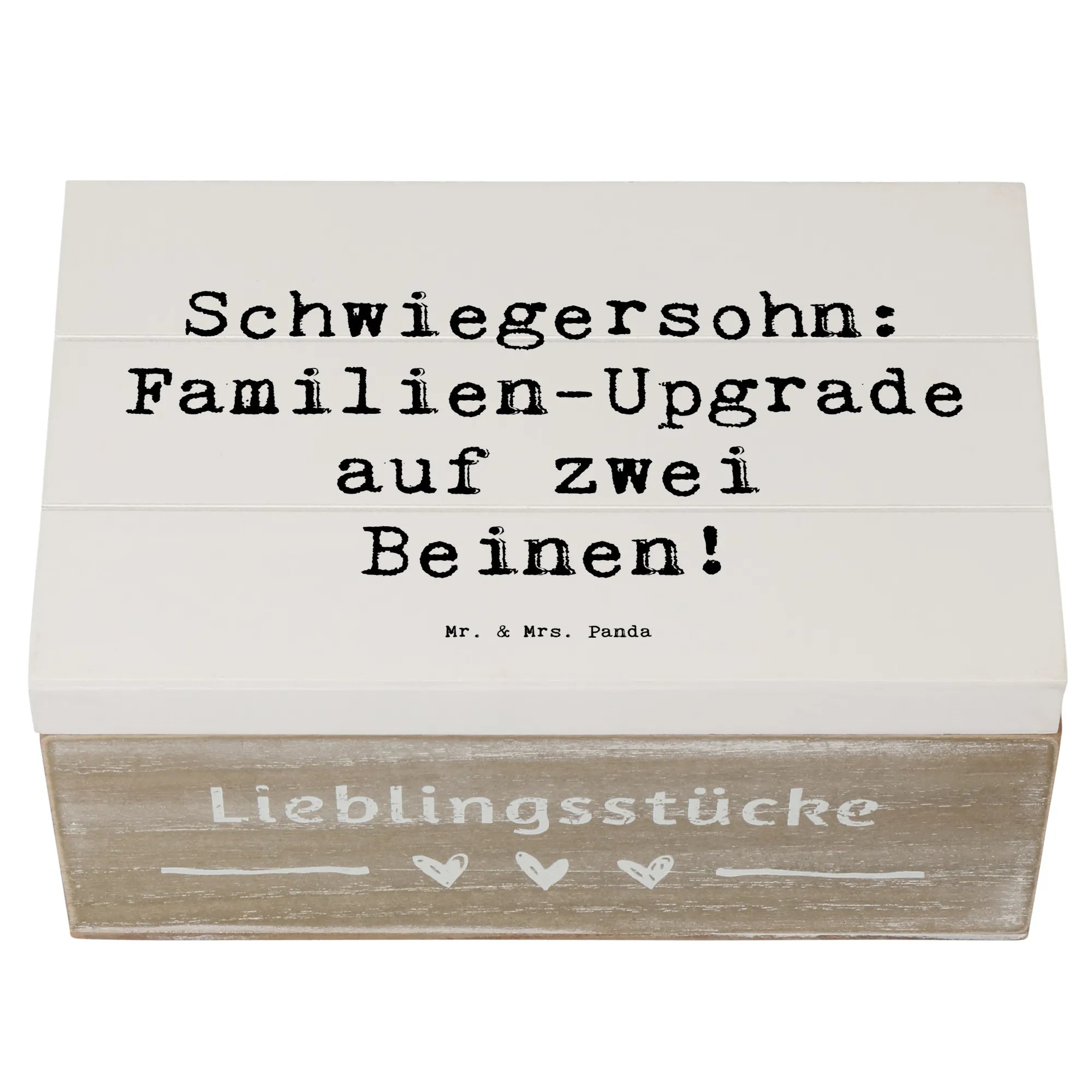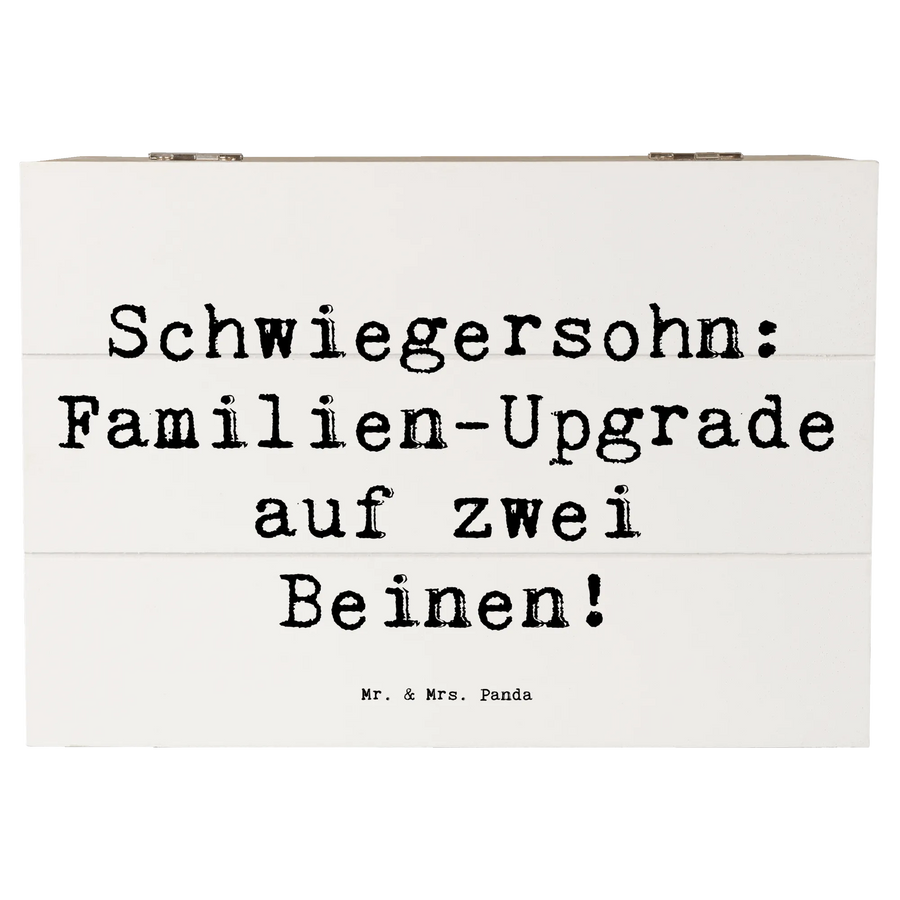 Die Holzkiste von Mr. & Mrs. Panda ist das ideale Geschenk für deinen Schwiegersohn! Mit dem liebevollen Spruch "Schwiegersohn: Familien-Upgrade auf zwei Beinen!" zeigt diese wunderschöne Kiste nicht nur Wertschätzung, sondern auch, wie wichtig diese besondere Beziehung in der Familie ist. Diese Erinnerungskiste ist perfekt, um all die kleinen Schätze und Erinnerungen zu bewahren, die im Laufe der Jahre gesammelt werden. Ob für besondere Anlässe wie Geburtstage, Hochzeiten oder einfach nur als Dankeschön – diese Kiste ist ein ganz besonderes Geschenk für jeden Schwiegersohn.