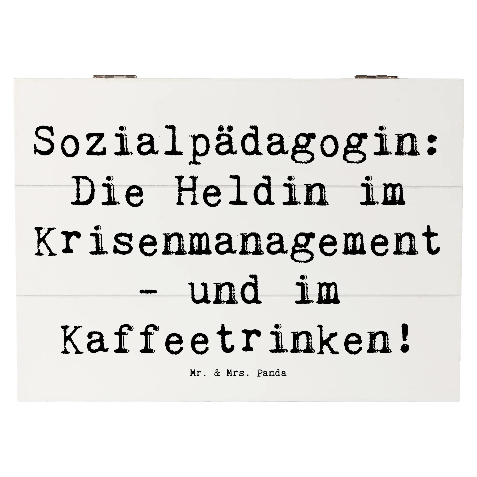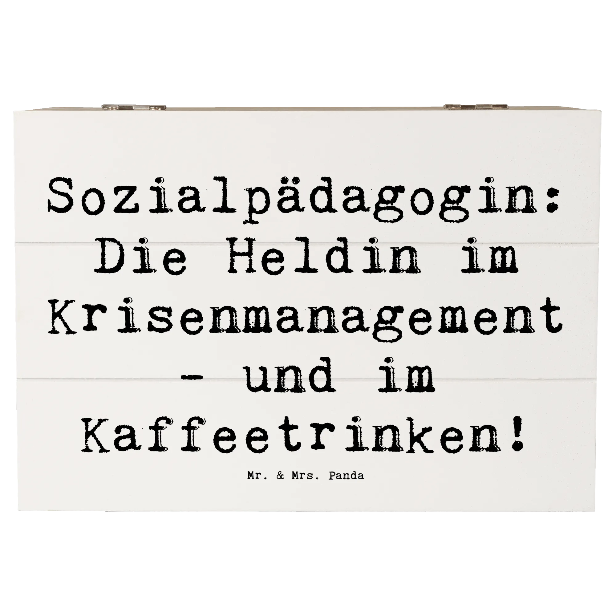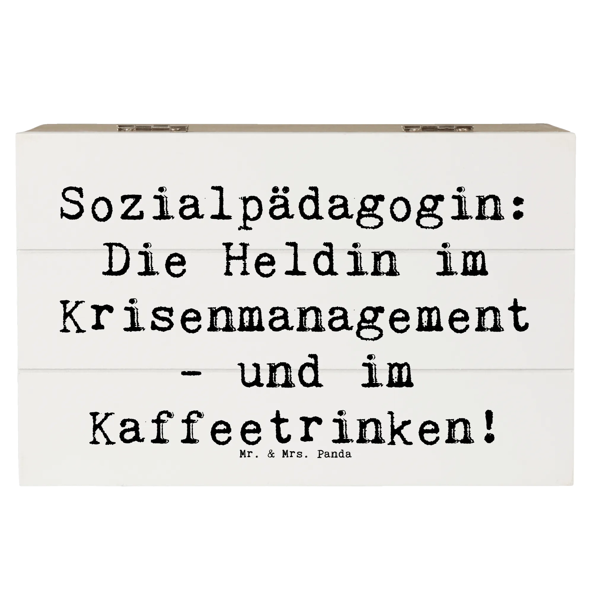 Holzkiste Spruch Sozialpädagogin: Die Heldin im Krisenmanagement - und im Kaffeetrinken! - 22 x 15 cm - Weiß
