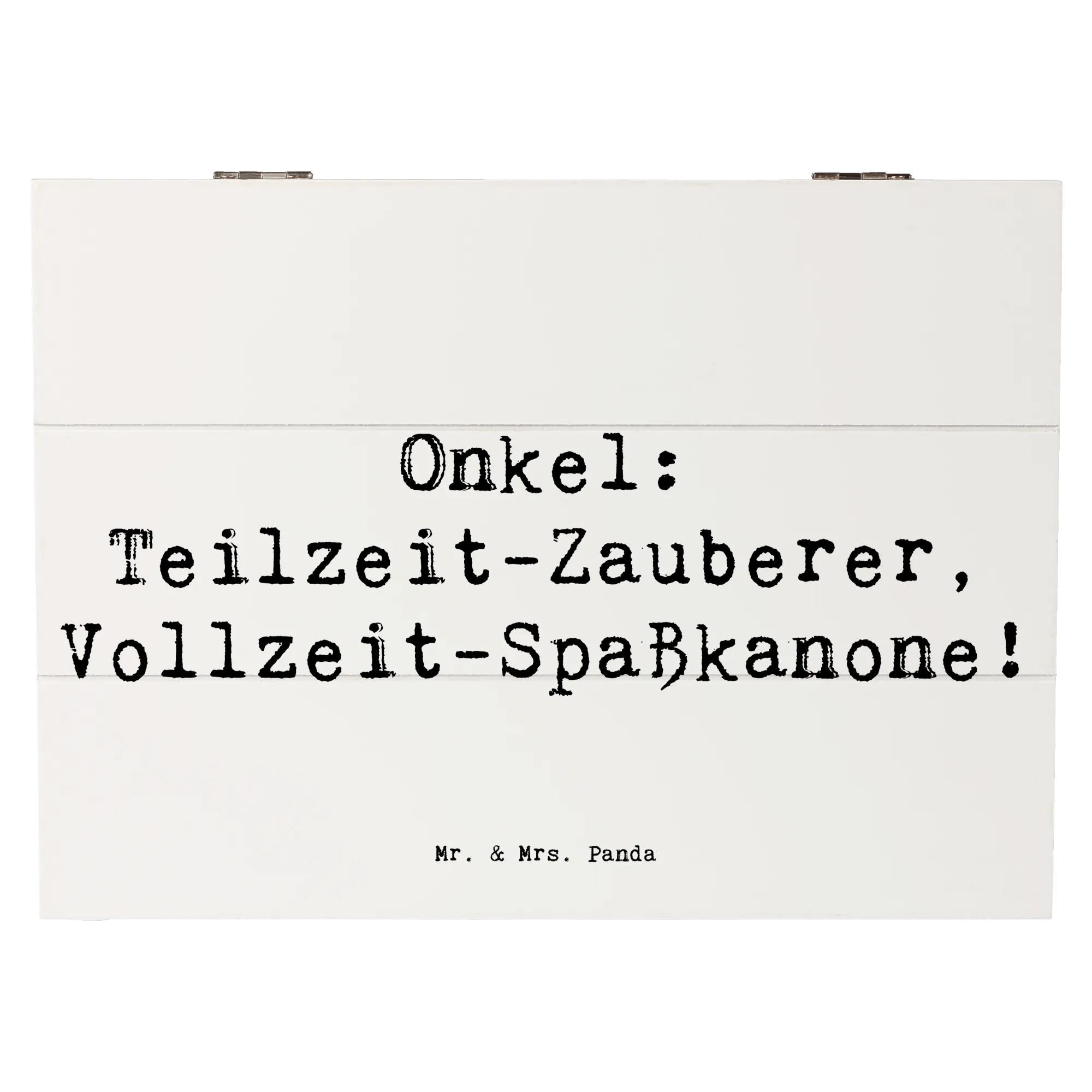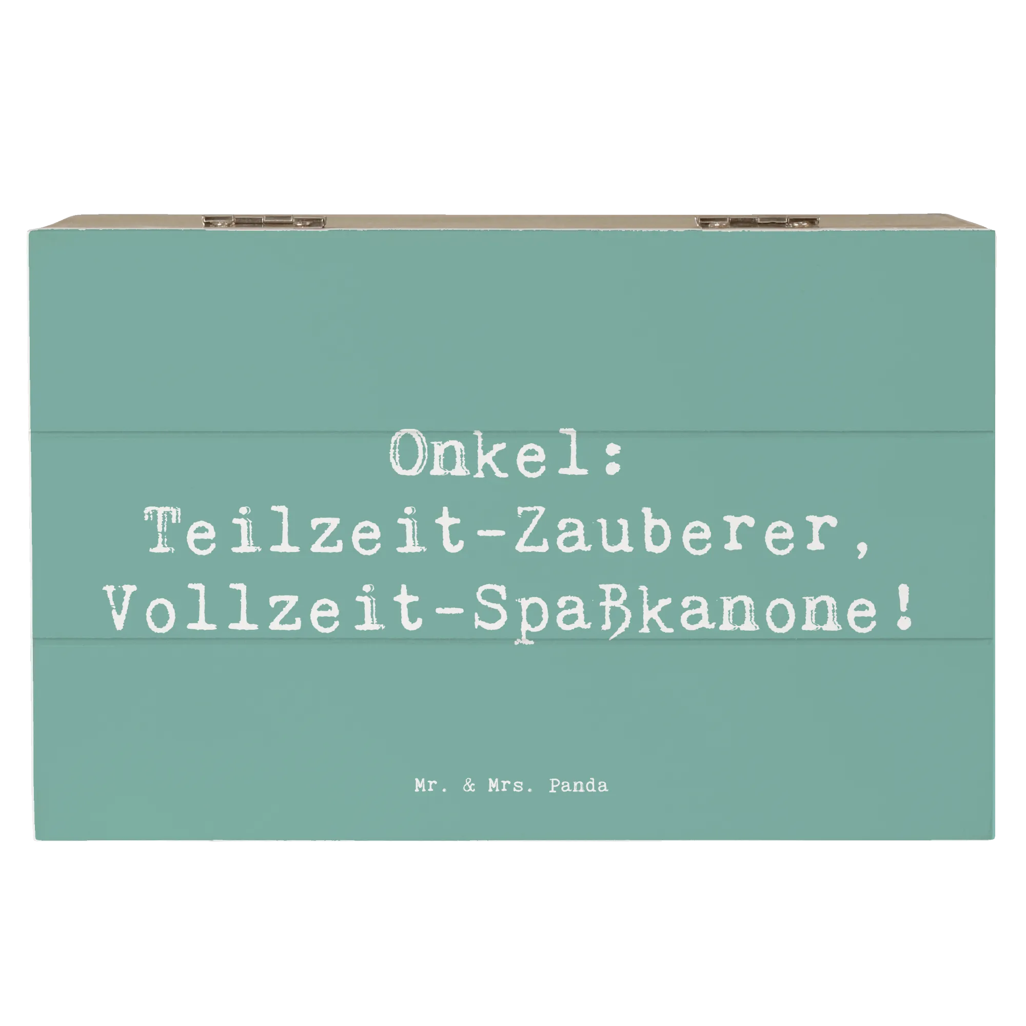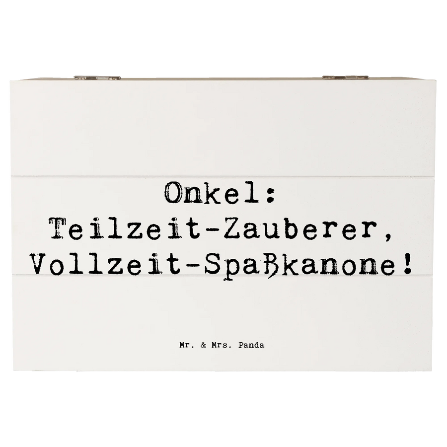 Die wunderschöne Holzkiste von Mr. & Mrs. Panda ist das perfekte Geschenk für den Onkel – einen wichtigen Teil unserer Familie! Mit dem liebevollen Slogan "Onkel: Teilzeit-Zauberer, Vollzeit-Spaßkanone!" wird diese Kiste schnell zu einem besonderen Highlight bei jeder Familienfeier. Sie ist nicht nur ein wahrer Blickfang, sondern bietet auch genügend Platz für all die tollen Erinnerungen, die Du zusammen mit Deinem Onkel gesammelt hast. Ob scrapbooking, Fotos, Briefe oder kleine Schätze aus der Kindheit – alles findet seinen perfekten Platz in dieser stilvollen Erinnerungskiste.