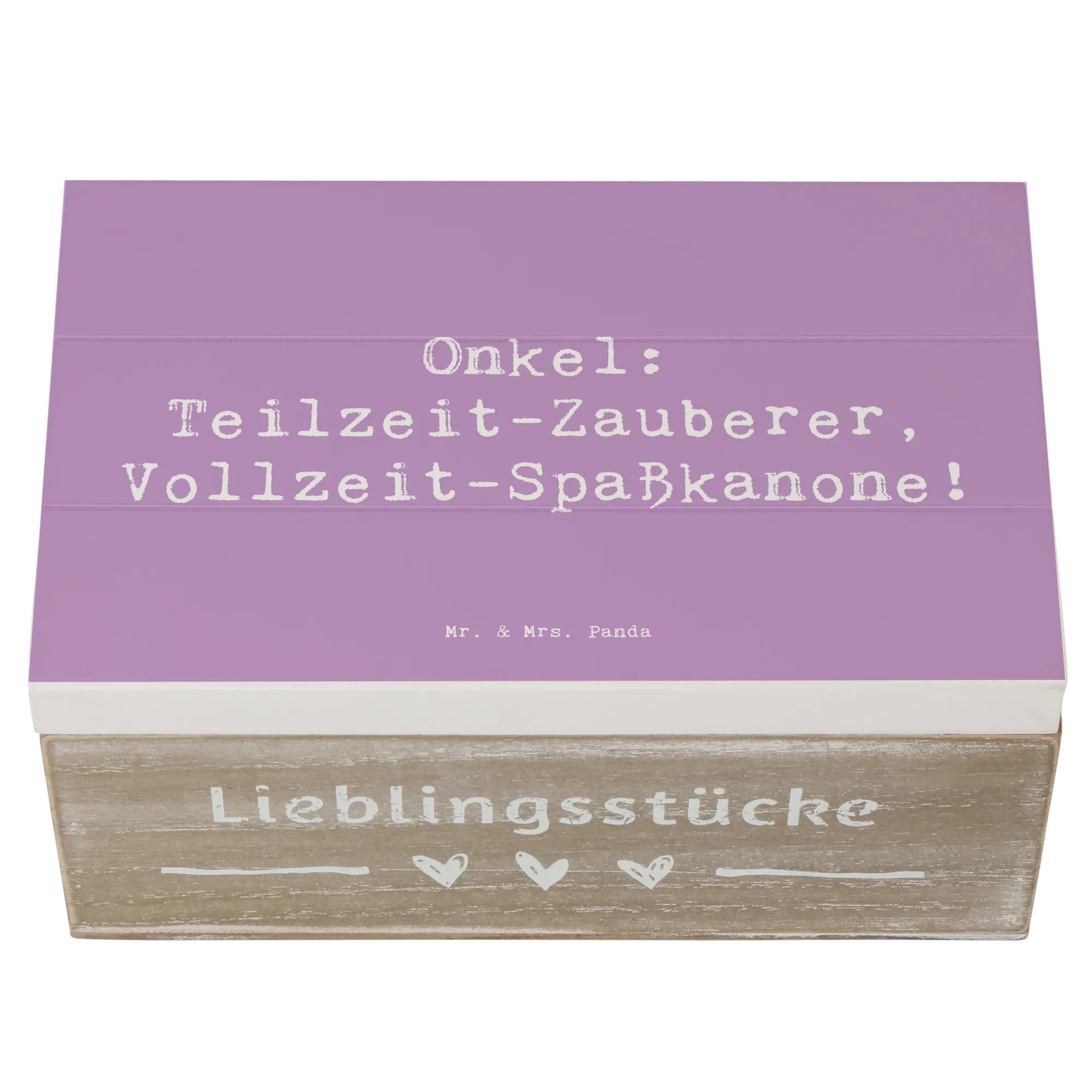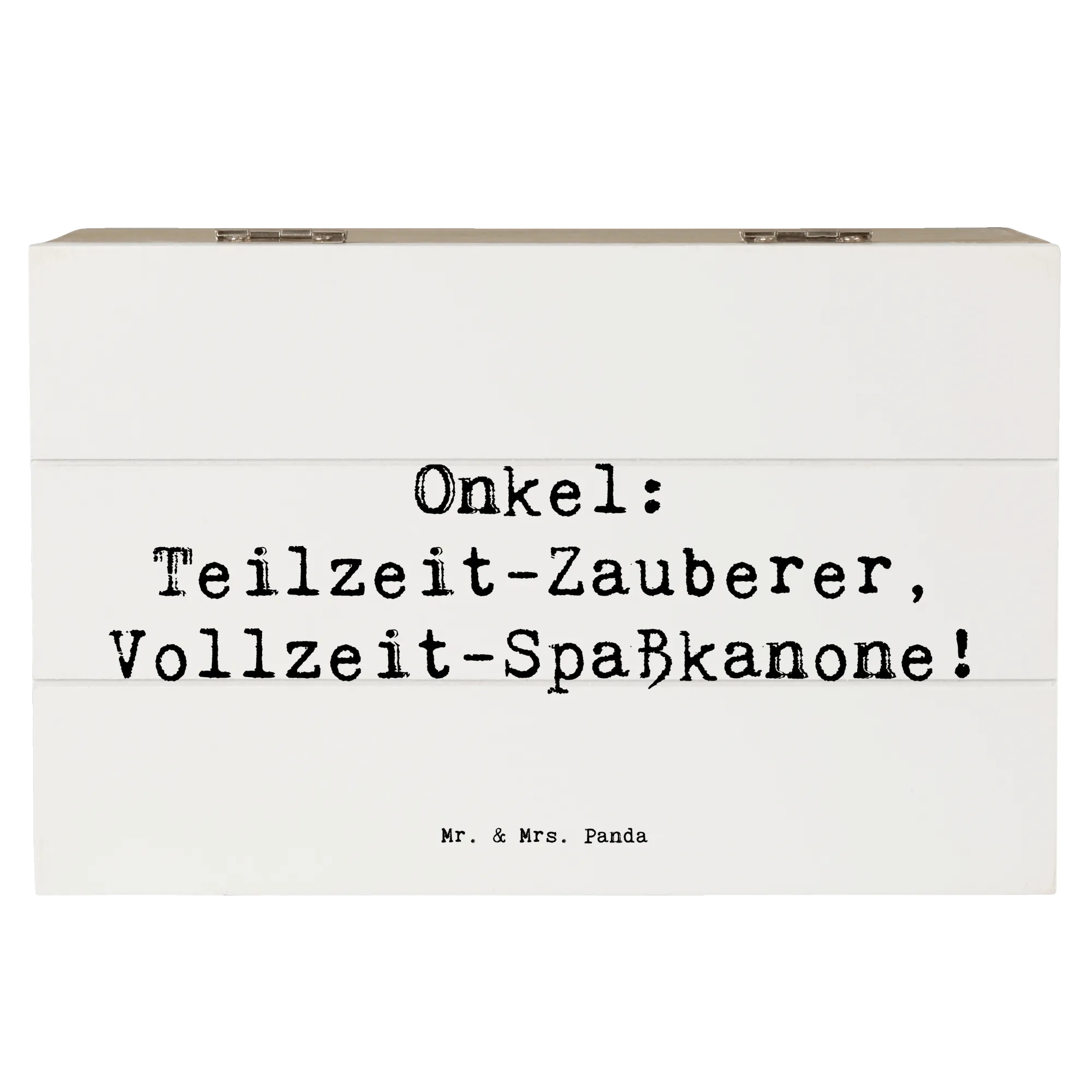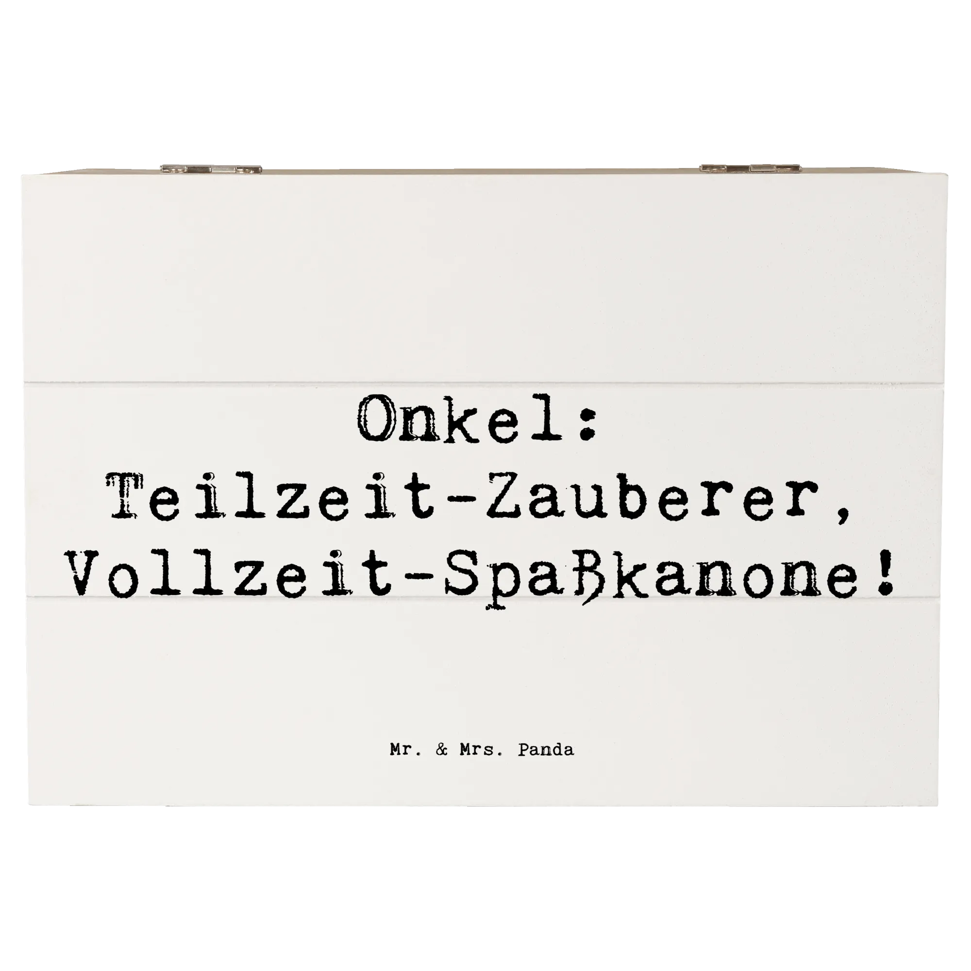 Die wunderschöne Holzkiste von Mr. & Mrs. Panda ist das perfekte Geschenk für den Onkel – einen wichtigen Teil unserer Familie! Mit dem liebevollen Slogan "Onkel: Teilzeit-Zauberer, Vollzeit-Spaßkanone!" wird diese Kiste schnell zu einem besonderen Highlight bei jeder Familienfeier. Sie ist nicht nur ein wahrer Blickfang, sondern bietet auch genügend Platz für all die tollen Erinnerungen, die Du zusammen mit Deinem Onkel gesammelt hast. Ob scrapbooking, Fotos, Briefe oder kleine Schätze aus der Kindheit – alles findet seinen perfekten Platz in dieser stilvollen Erinnerungskiste.