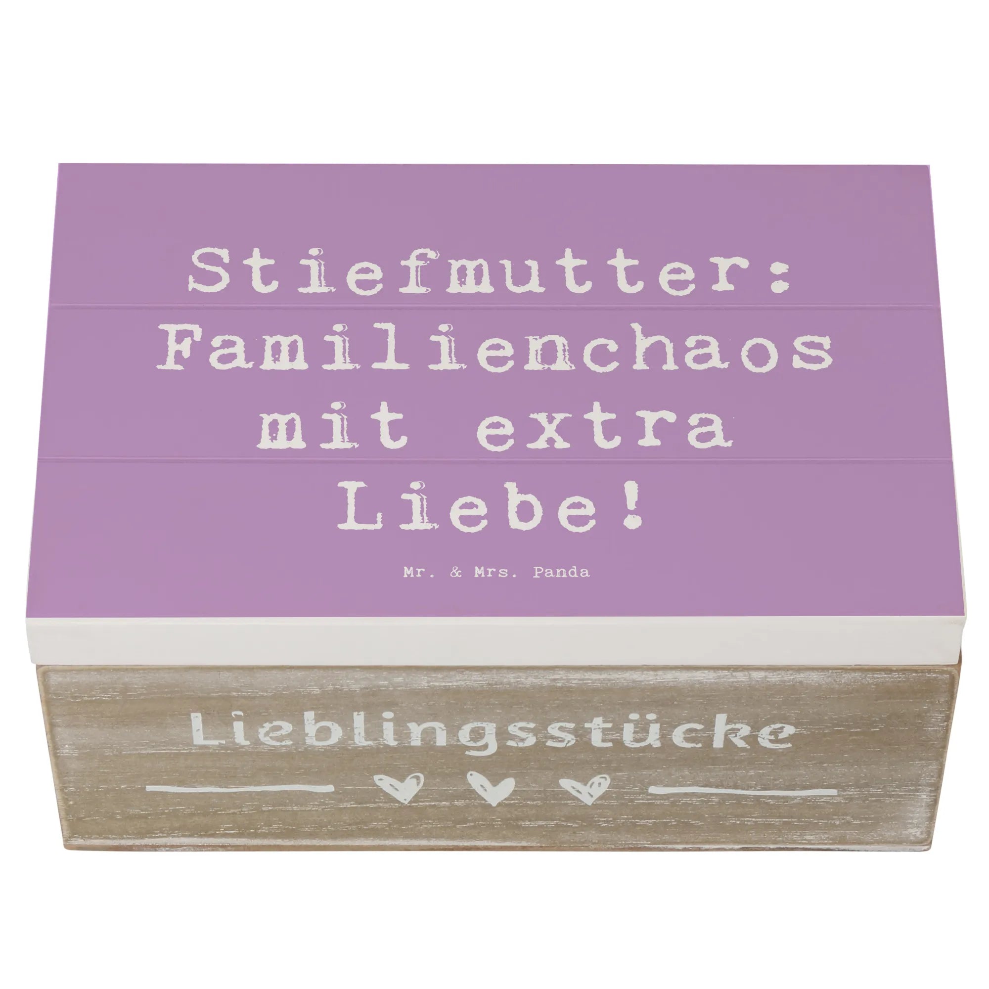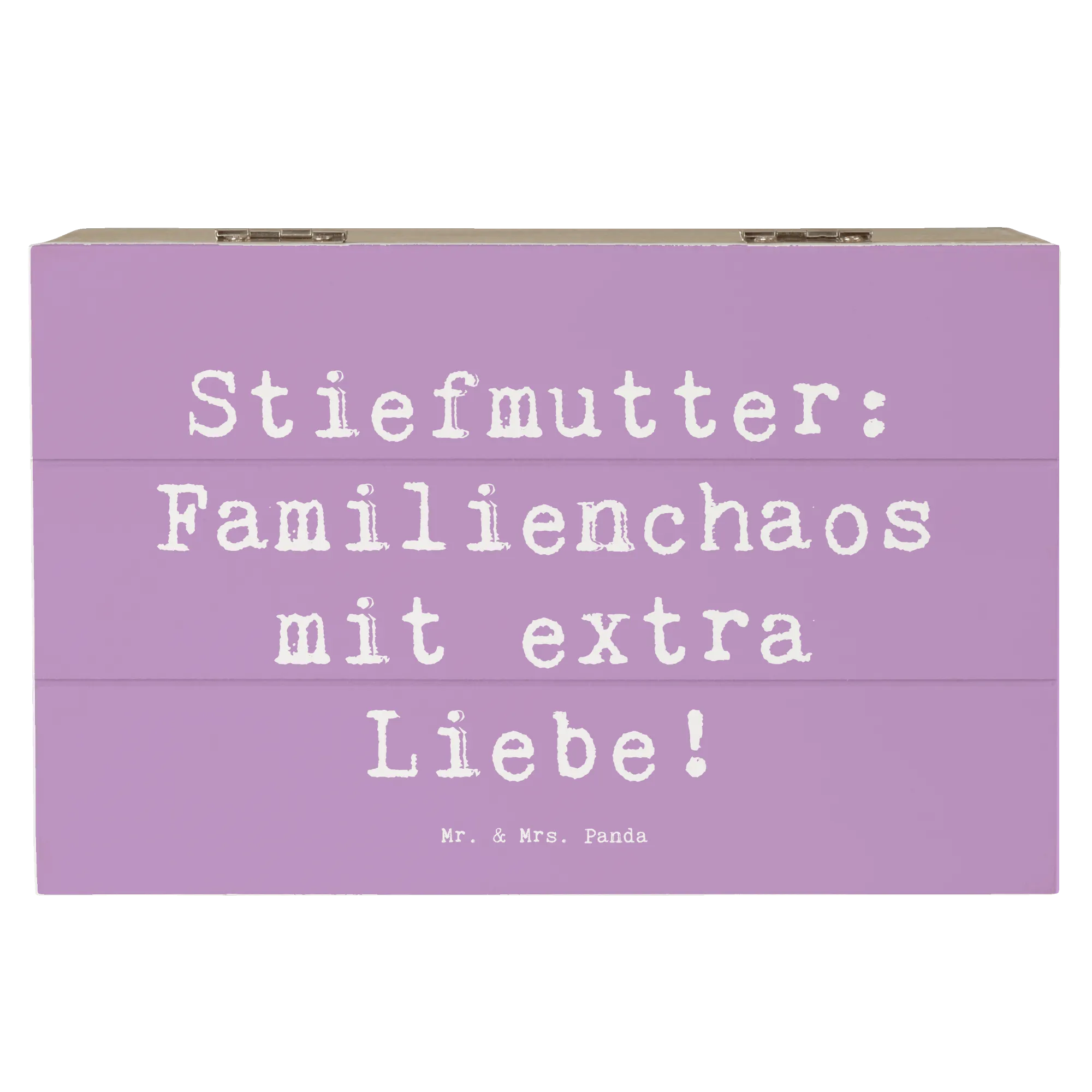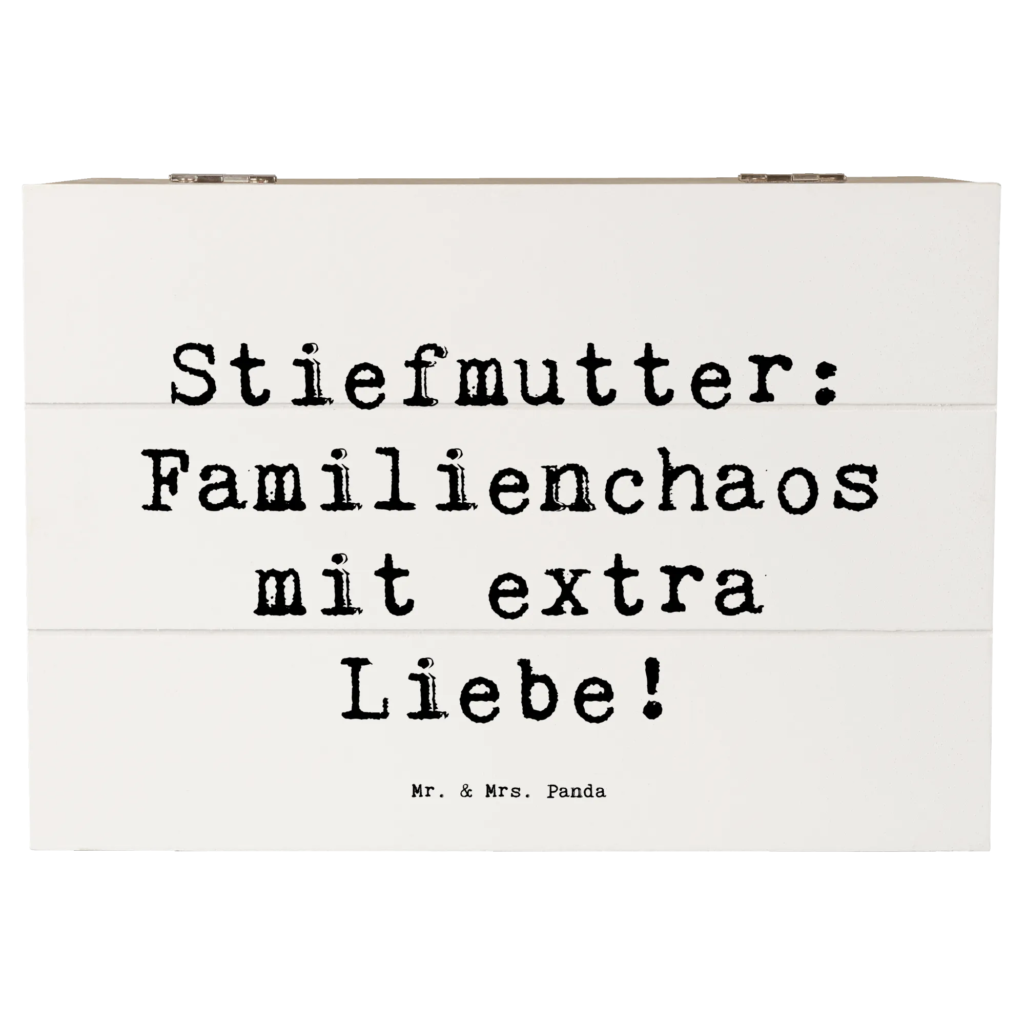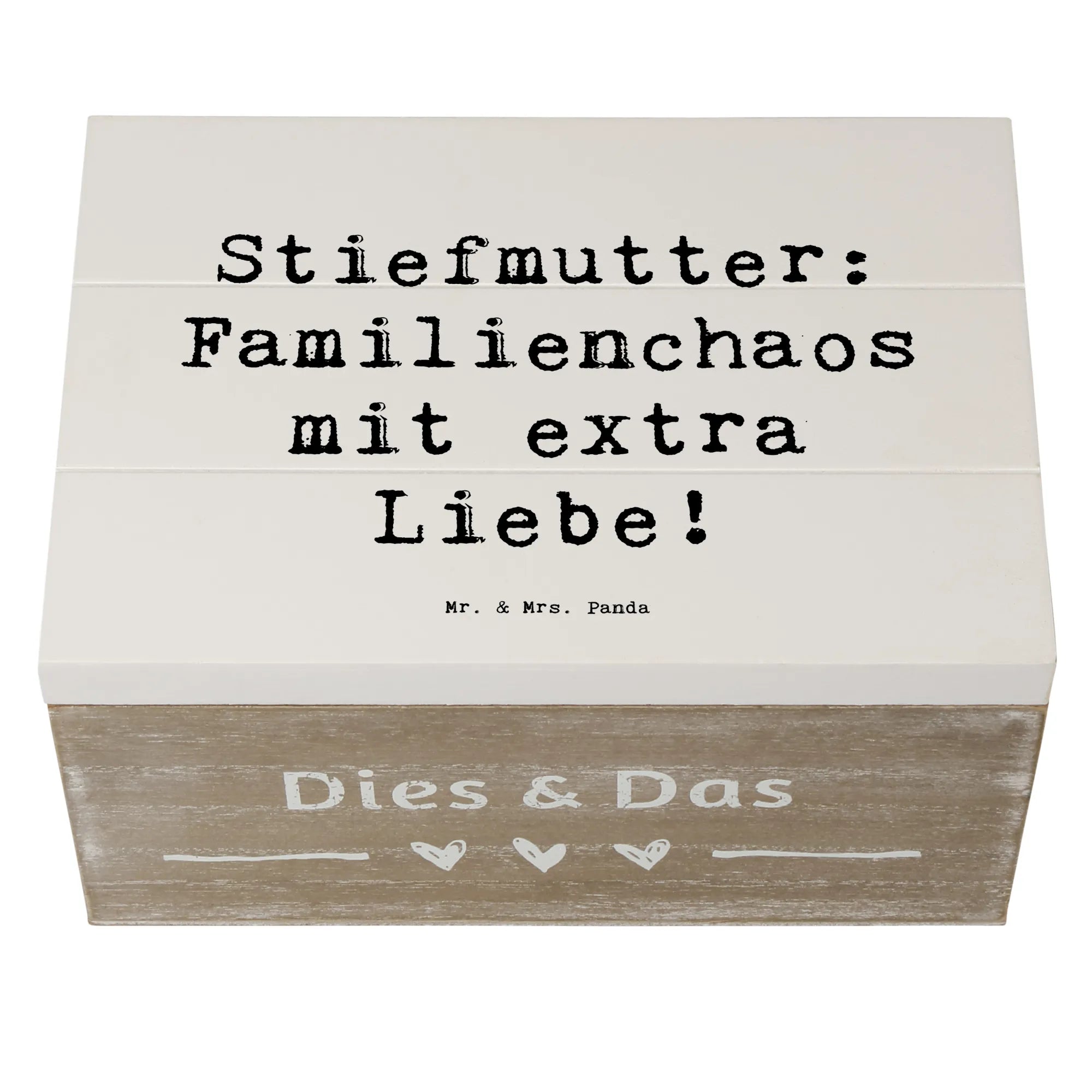 Die wunderschöne Holzkiste von Mr. & Mrs. Panda mit dem liebevollen Motiv "Stiefmutter: Familienchaos mit extra Liebe!" ist das perfekte Geschenk für jede Stiefmutter und ihre Patchwork-Familie. Diese Kiste ist mehr als nur ein einfaches Aufbewahrungsbehältnis; sie ist ein Ort, an dem wertvolle Erinnerungen und Schätze aufbewahrt werden können.