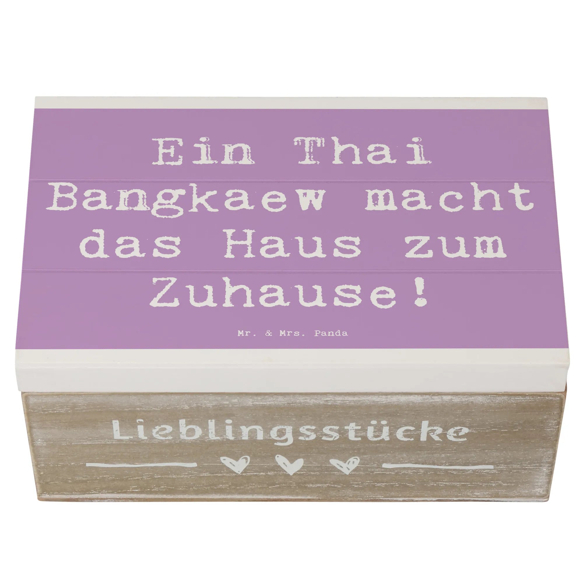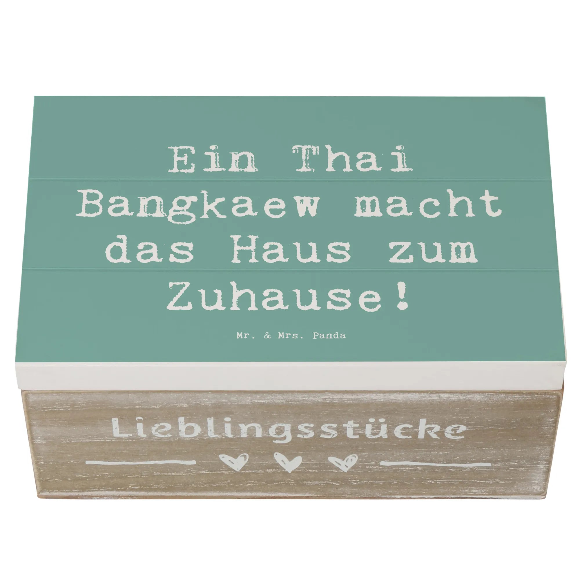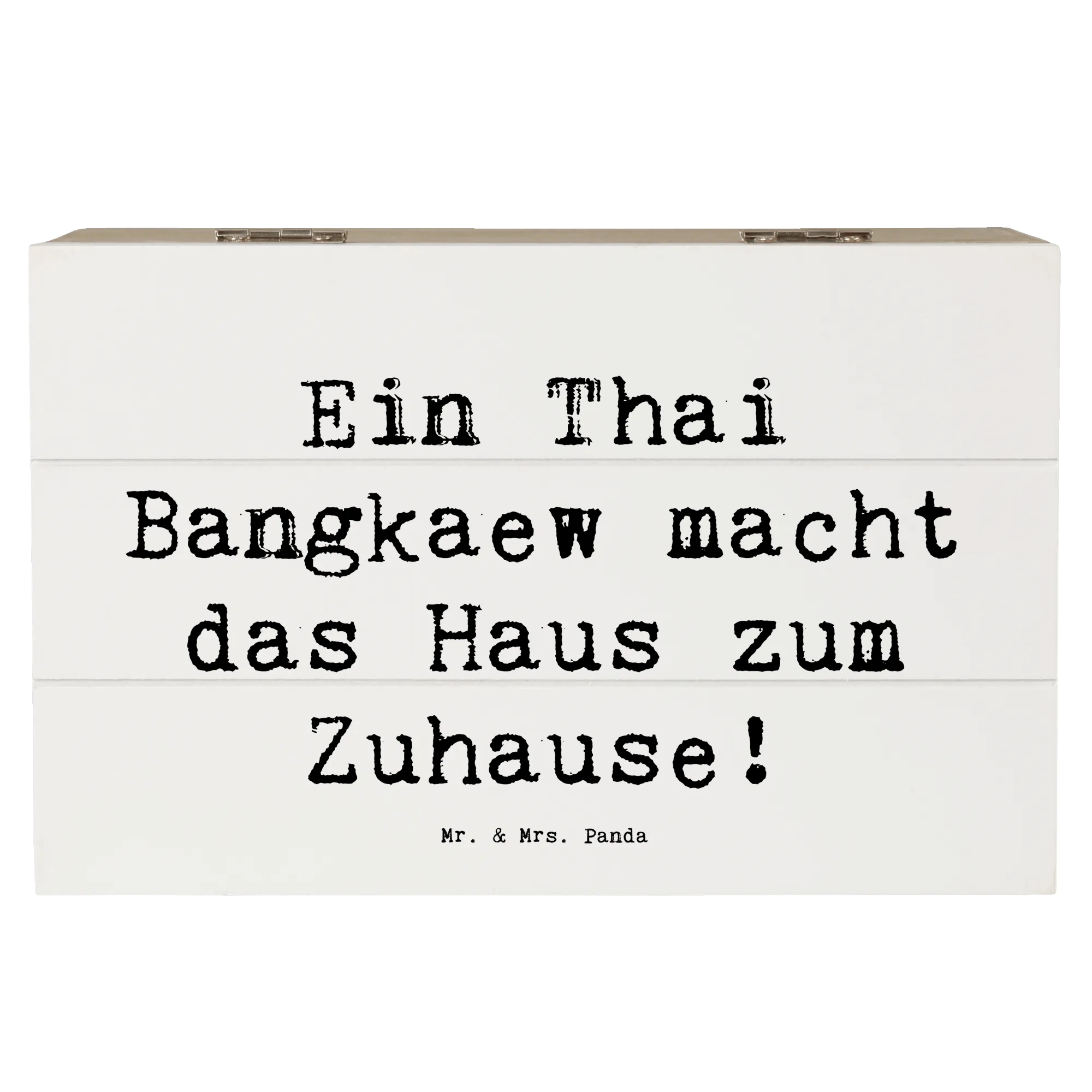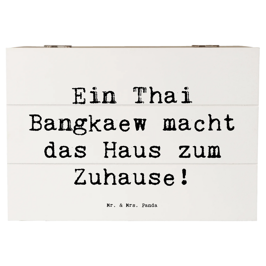 Die wunderschöne Holzkiste von Mr. & Mrs. Panda ist die perfekte Aufbewahrungslösung für all deine Schätze und Erinnerungen! Mit ihrem liebevollen Motiv des Thai Bangkaew und dem süßen Spruch "Ein Thai Bangkaew macht das Haus zum Zuhause!" bringt sie nicht nur Ordnung in dein Zuhause, sondern auch eine große Portion Herz.