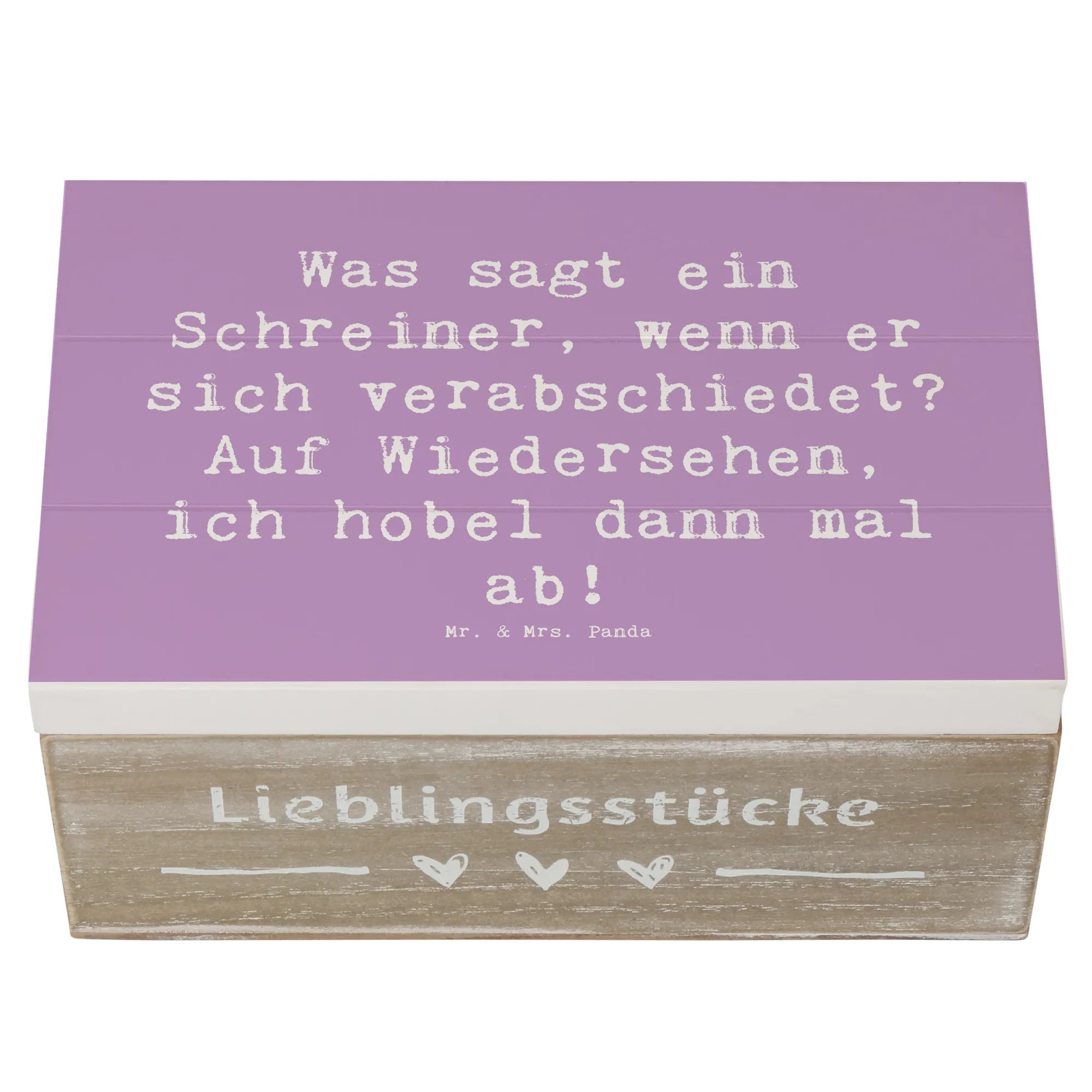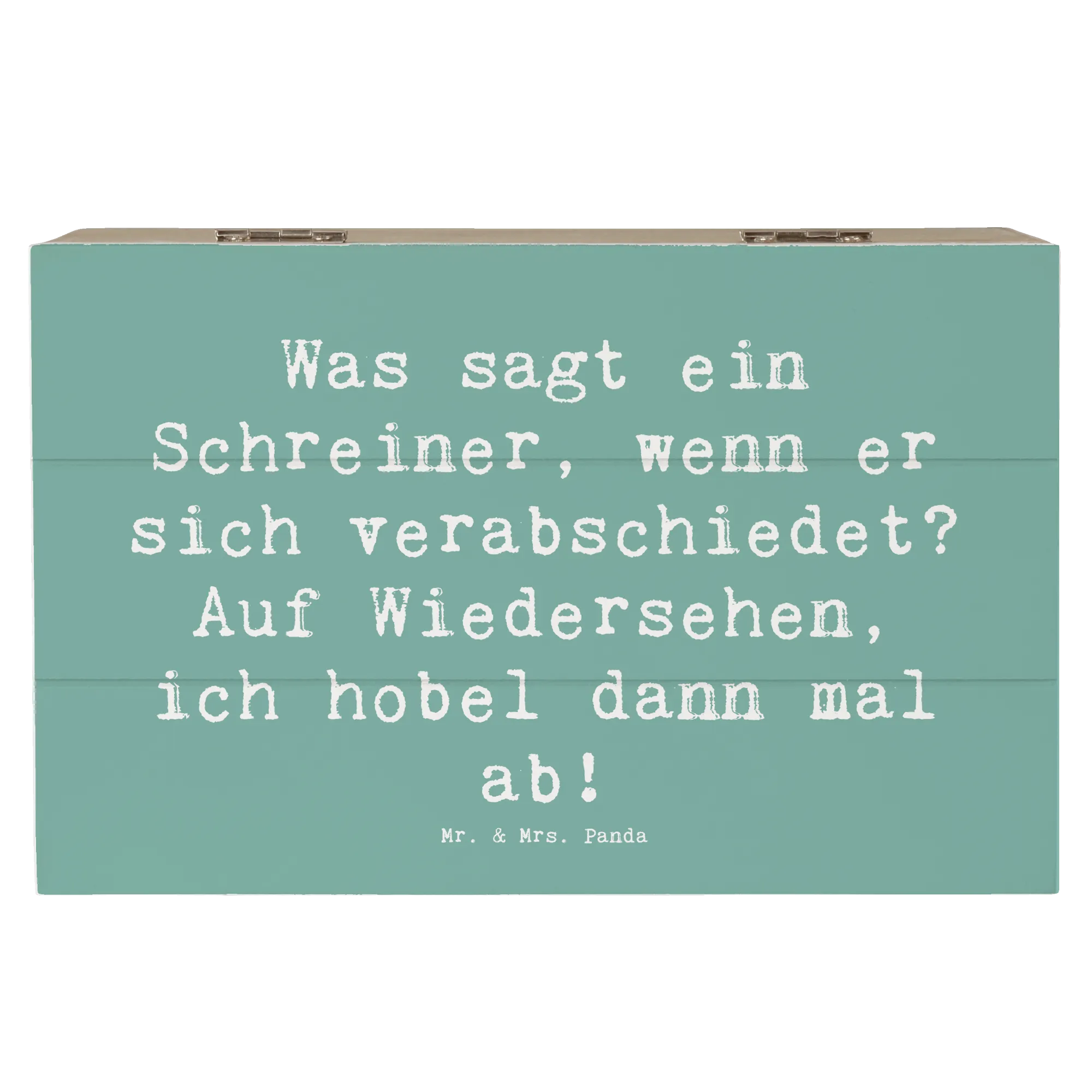 Wenn Du einem Handwerker ein besonderes Geschenk machen möchtest, sag es mit Humor! Der witzige Spruch "Was sagt ein Schreiner, wenn er sich verabschiedet? Auf Wiedersehen, ich hobel dann mal ab!" sorgt für ein Schmunzeln, während die Kiste gleichzeitig ein wunderschönes Zuhause für all die kleinen Schätze bietet.