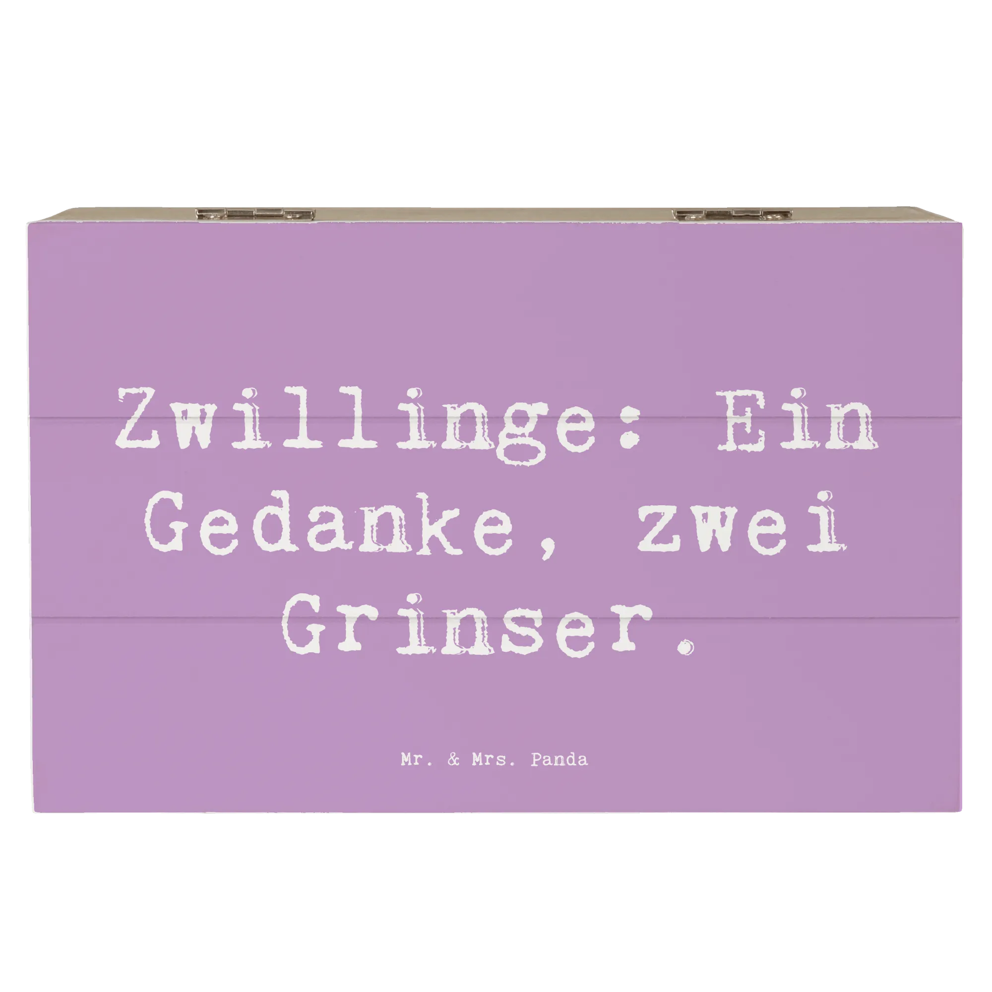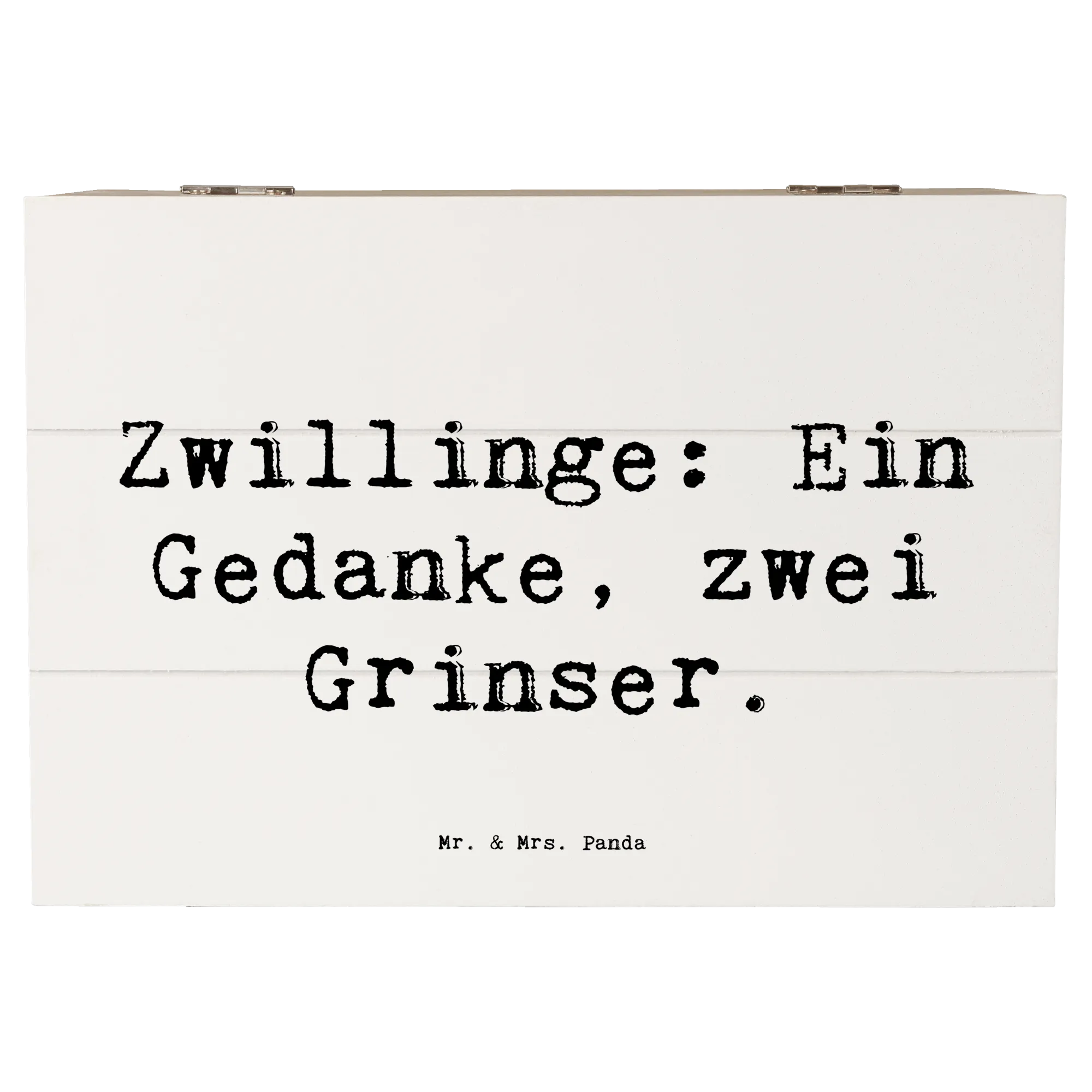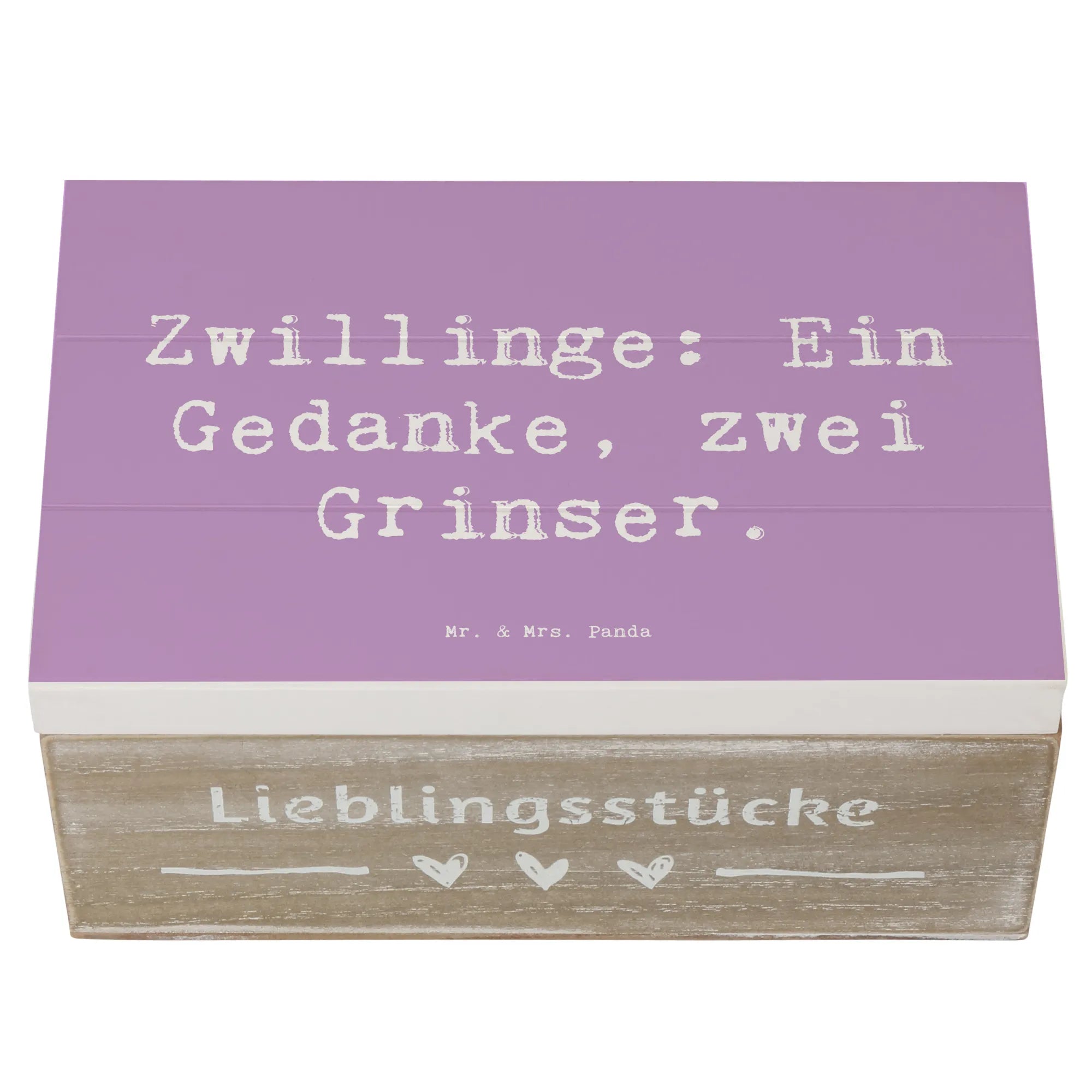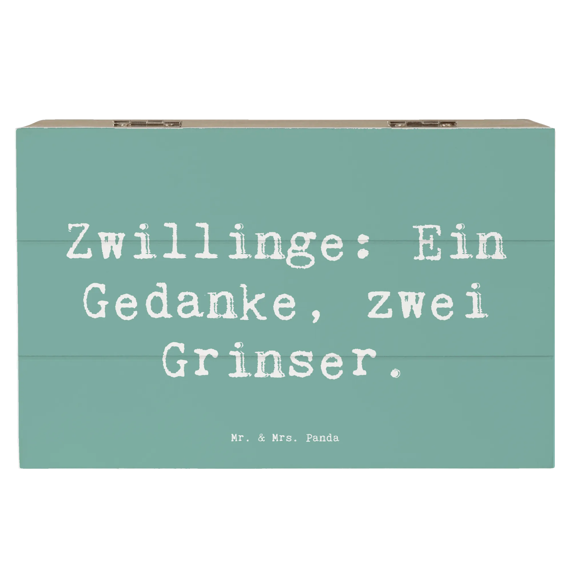 Die wunderschöne Holzkiste von Mr. & Mrs. Panda ist das perfekte Geschenk für Zwillingsgeschwister, die ihre besonderen Erinnerungen teilen möchten. Mit dem liebevollen Motiv "Zwillinge: Ein Gedanke, zwei Grinser." unterstreicht diese Kiste die innige Beziehung zwischen Geschwistern, die meist nicht nur ein Geburtsdatum teilen, sondern auch unzählige gemeinsame Abenteuer erleben.