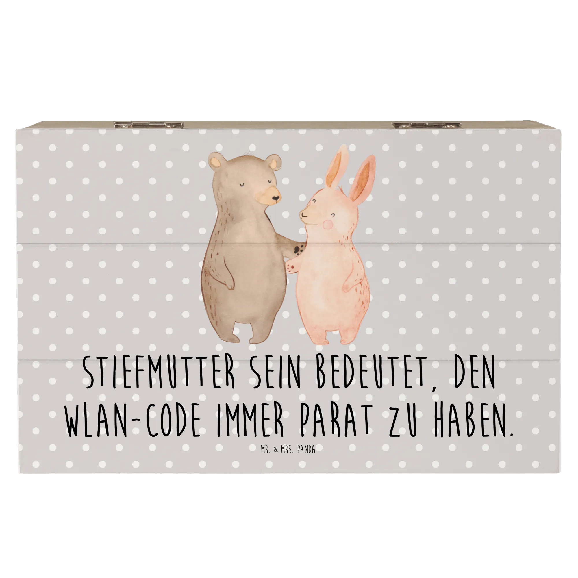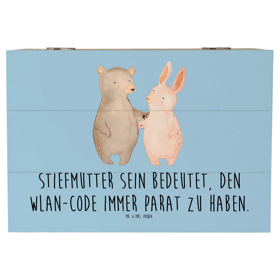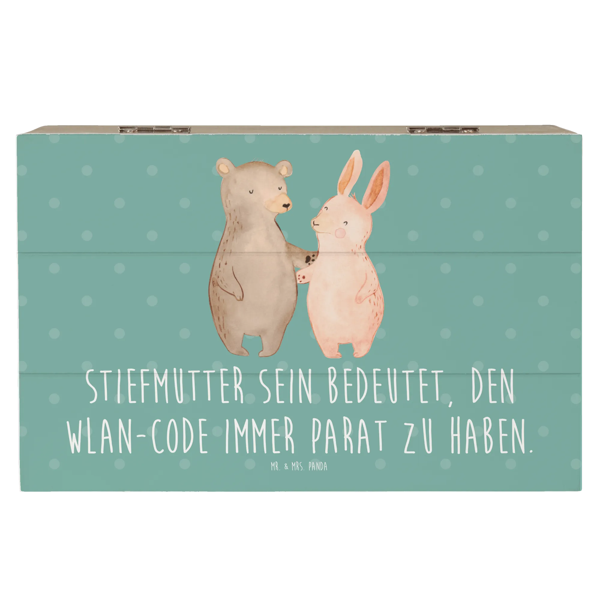Die wunderschöne Holzkiste von Mr. & Mrs. Panda ist das perfekte Geschenk für deine Stiefmutter oder als liebevolle Aufbewahrung für dein Stiefkind! Mit dem liebevollen Motiv "Stiefmutter sein bedeutet, den WLAN-Code immer parat zu haben." wird sie nicht nur zum Blickfang im Wohnzimmer, sondern ist auch ein Zeichen großer Wertschätzung.