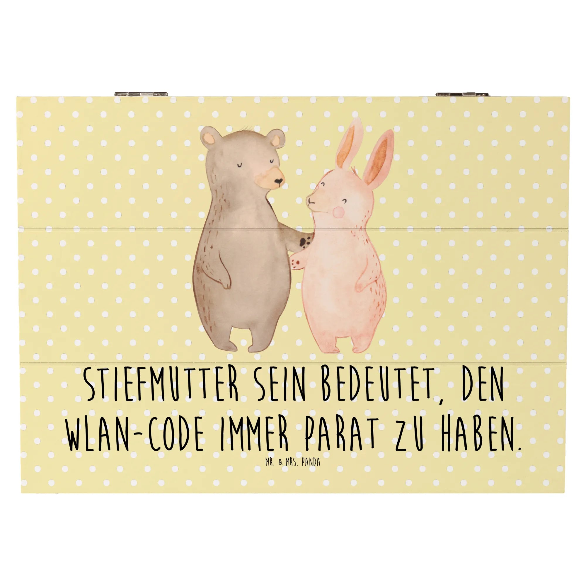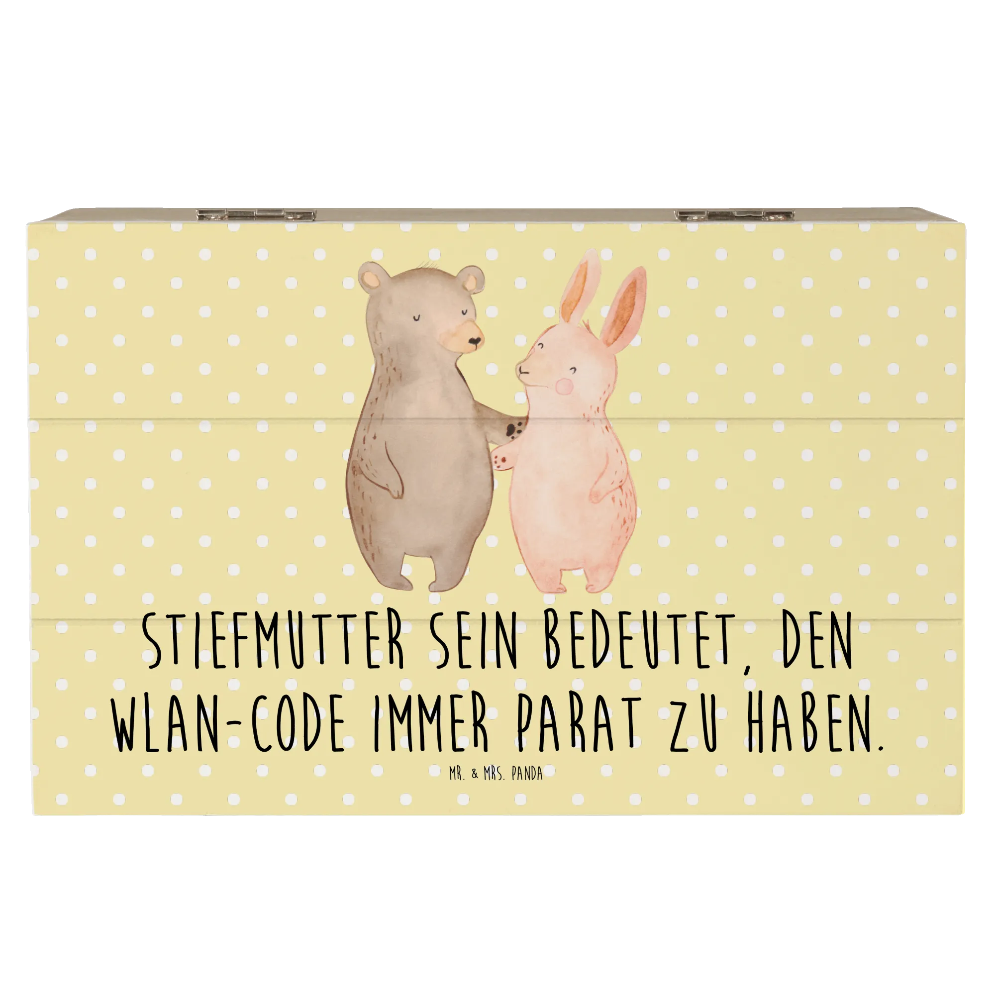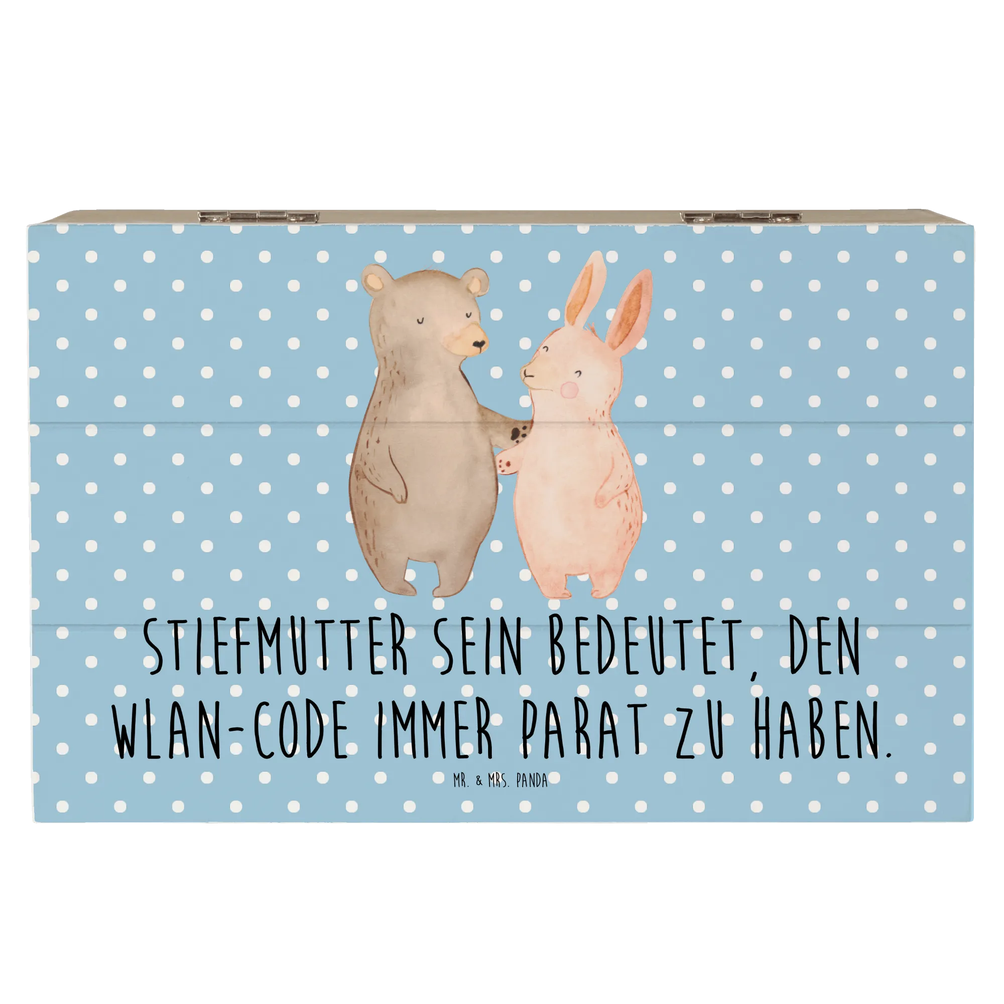 Die wunderschöne Holzkiste von Mr. & Mrs. Panda ist das perfekte Geschenk für deine Stiefmutter oder als liebevolle Aufbewahrung für dein Stiefkind! Mit dem liebevollen Motiv "Stiefmutter sein bedeutet, den WLAN-Code immer parat zu haben." wird sie nicht nur zum Blickfang im Wohnzimmer, sondern ist auch ein Zeichen großer Wertschätzung.