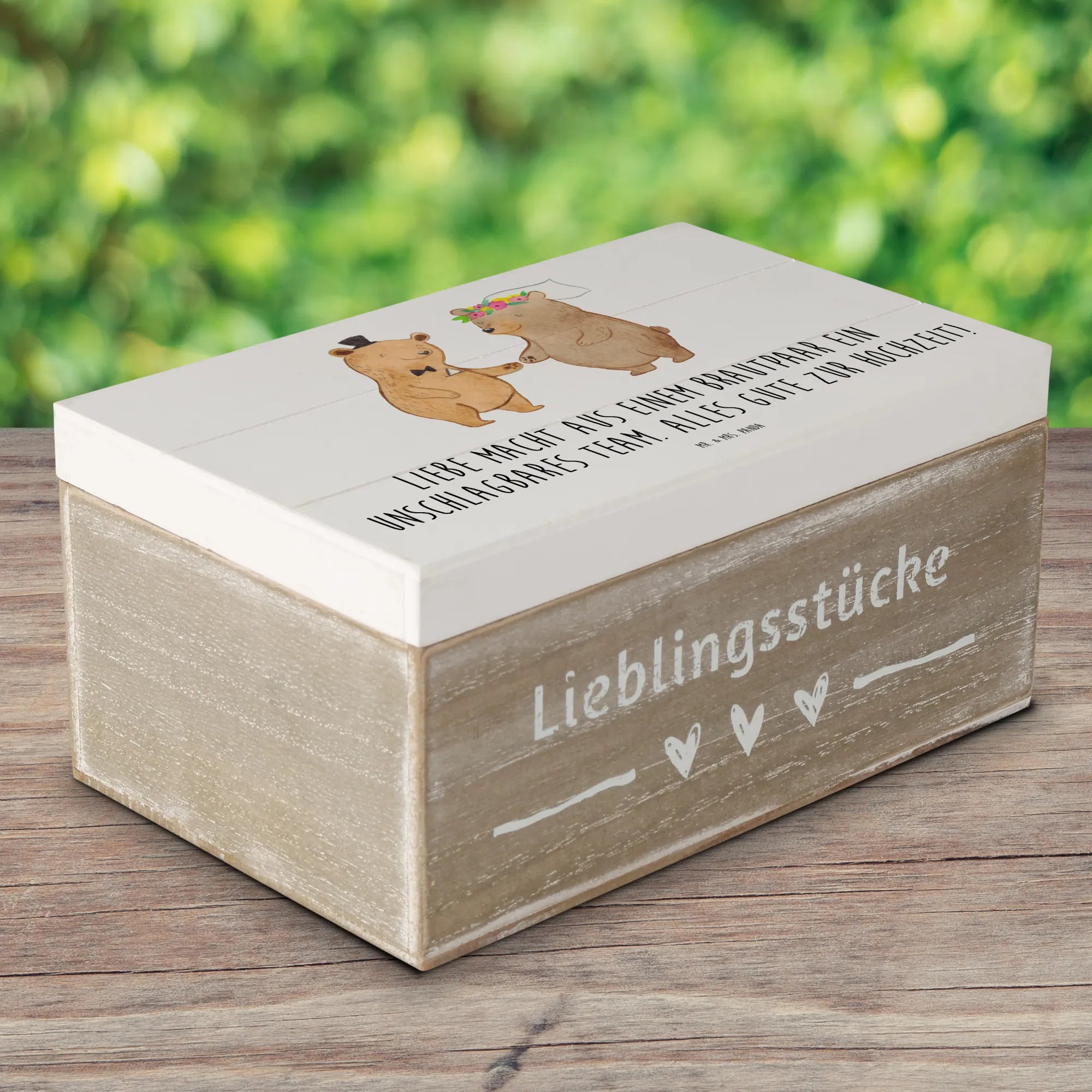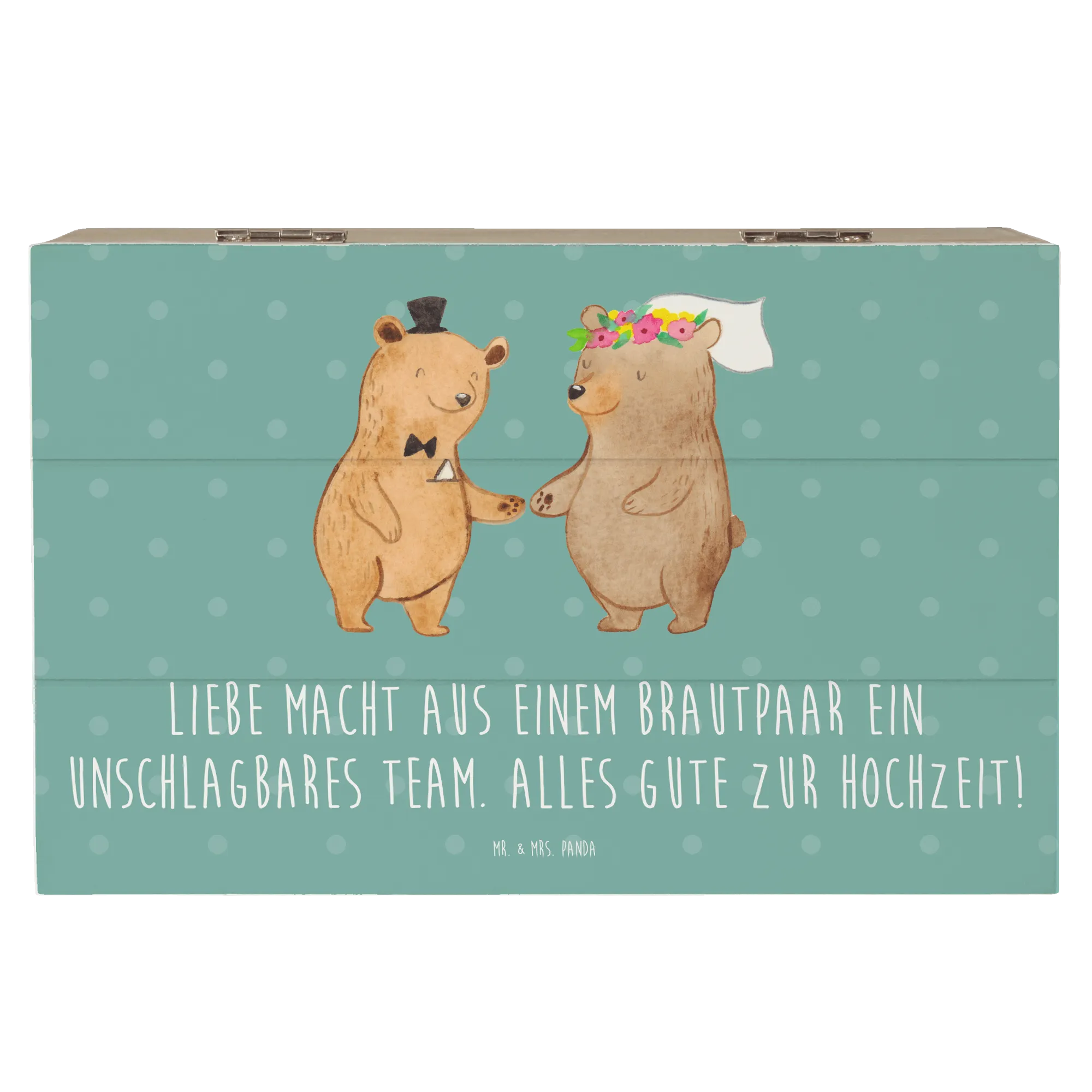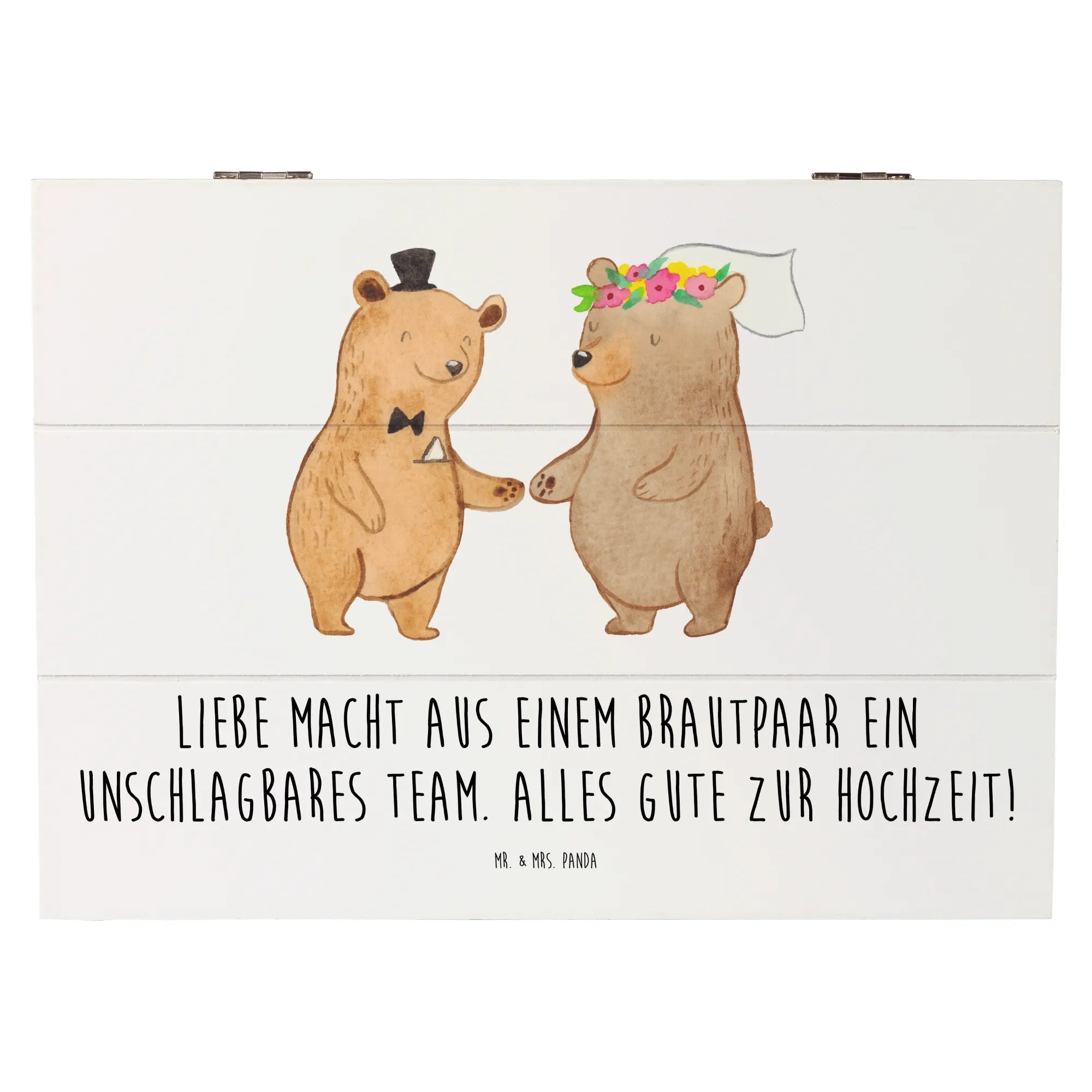 Die wunderschöne Holzkiste von Mr. & Mrs. Panda ist das perfekte Geschenk für alle, die eine Hochzeit feiern oder einem Brautpaar eine besondere Freude machen möchten. Mit dem liebevollen Motiv des Brautpaars und dem herzlichen Spruch "Liebe macht aus einem Brautpaar ein unschlagbares Team. Alles Gute zur Hochzeit!" wird diese Erinnerungskiste schnell zum Schatzkästchen für die schönsten Momente des Lebens.