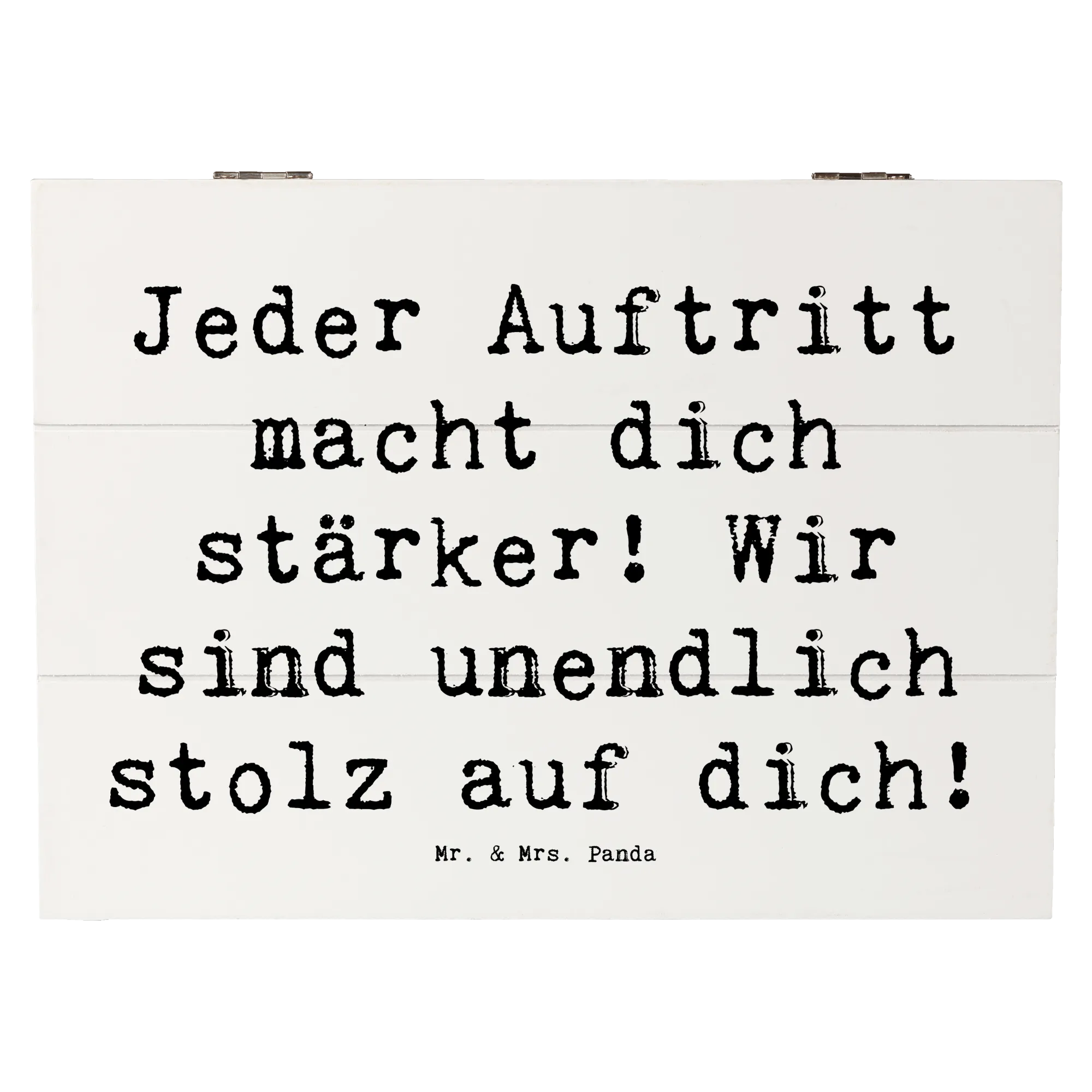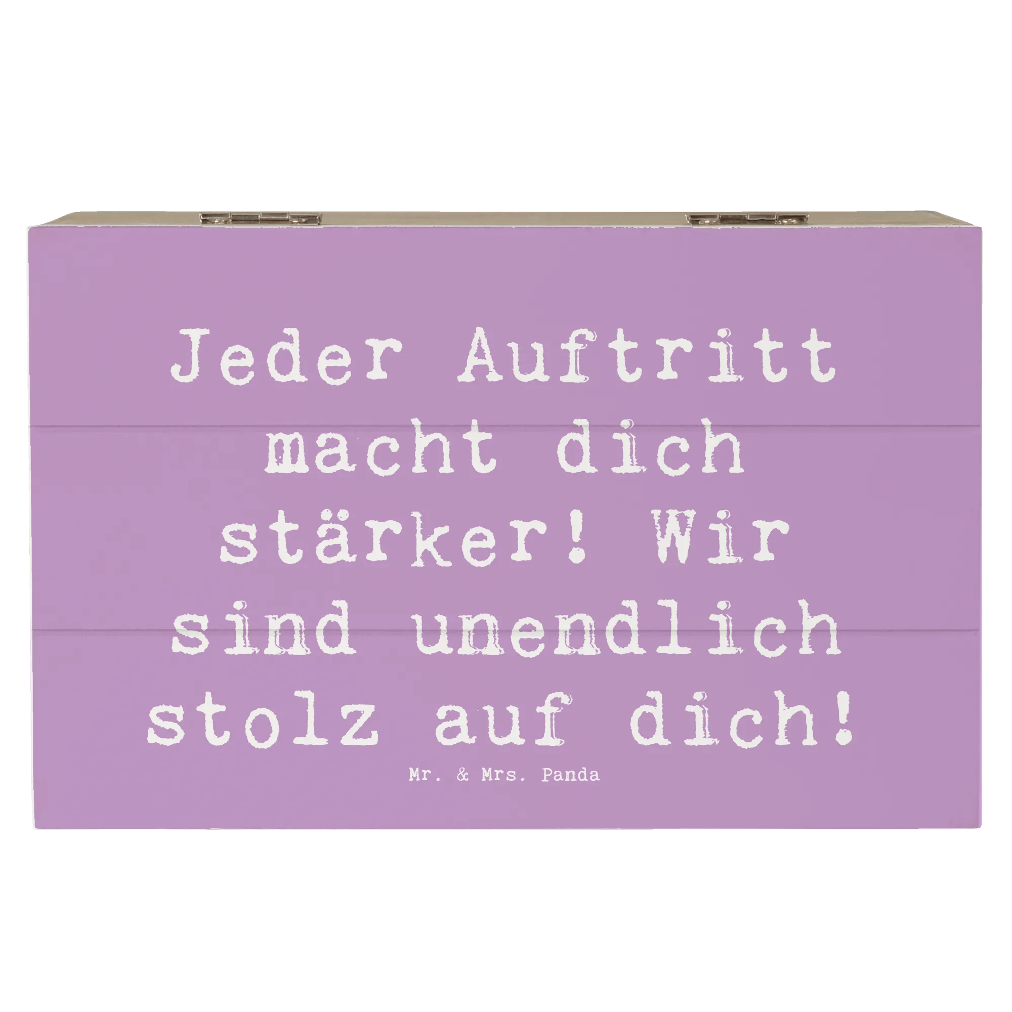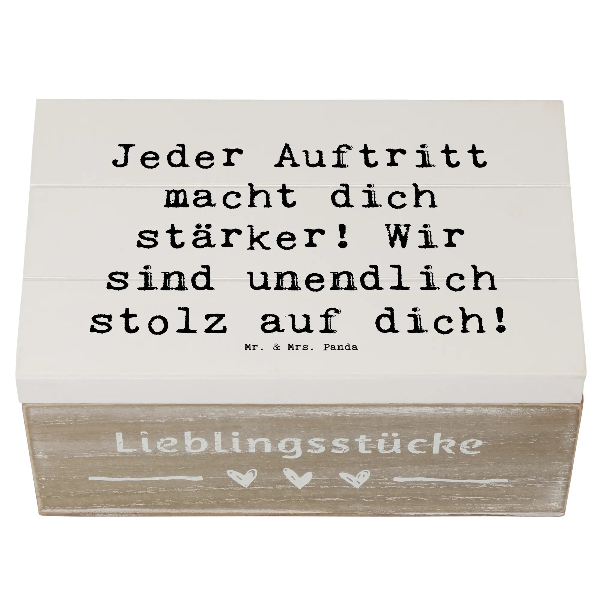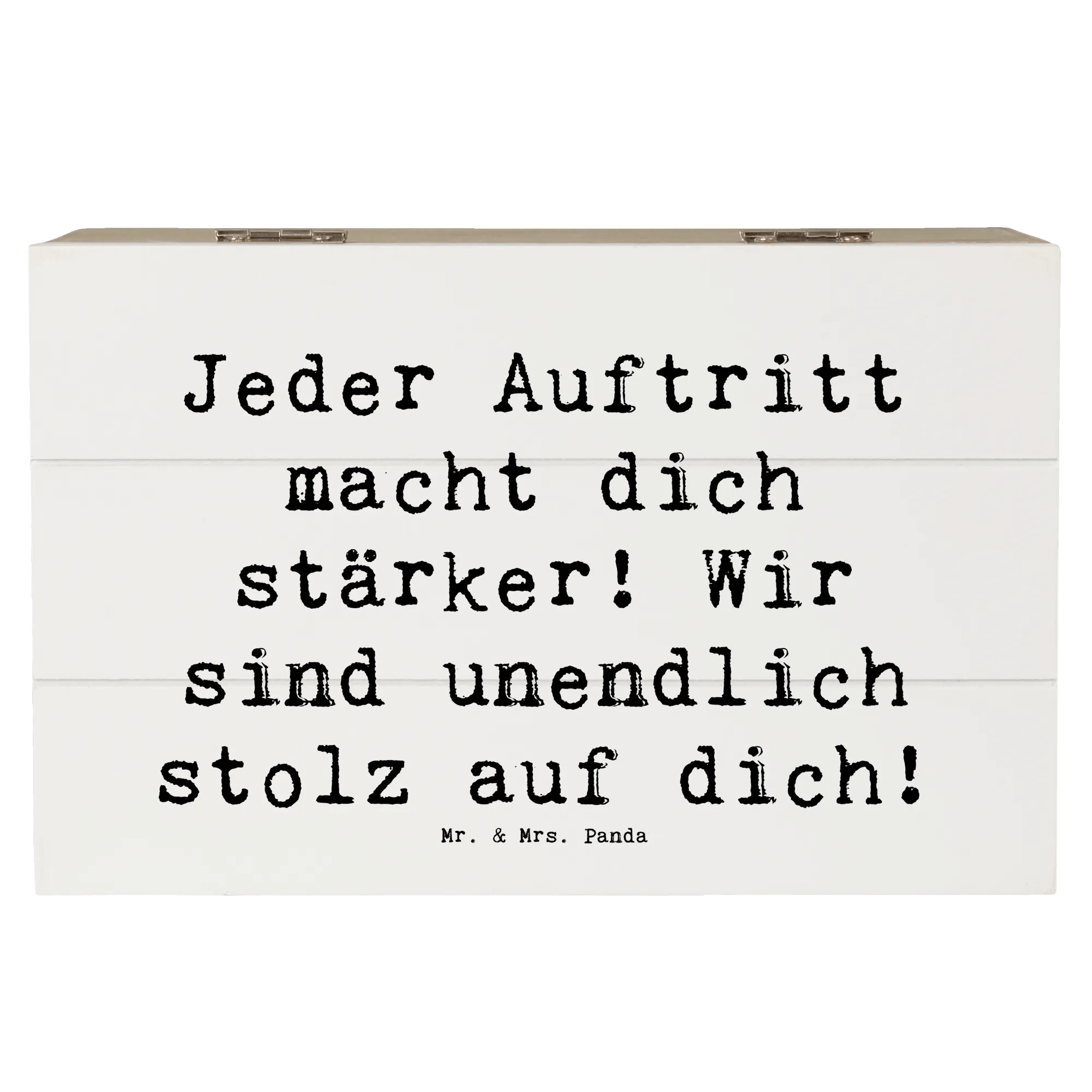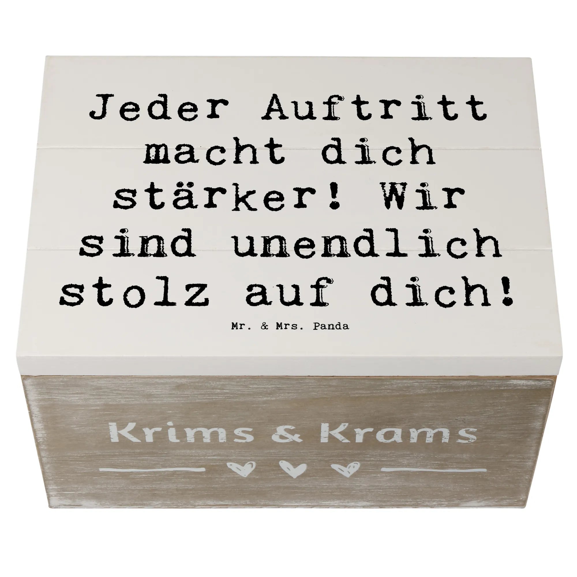 Mit dem aufgedruckten Spruch "Jeder Auftritt macht dich stärker! Wir sind unendlich stolz auf dich!" bekommst du eine Botschaft, die den Empfänger ermutigt und stärkt. Diese Holzkiste ist nicht nur ein schöner Blickfang, sondern auch eine nachhaltige und wiederverwendbare Geschenkbox, die mit Liebe gefüllt werden kann.