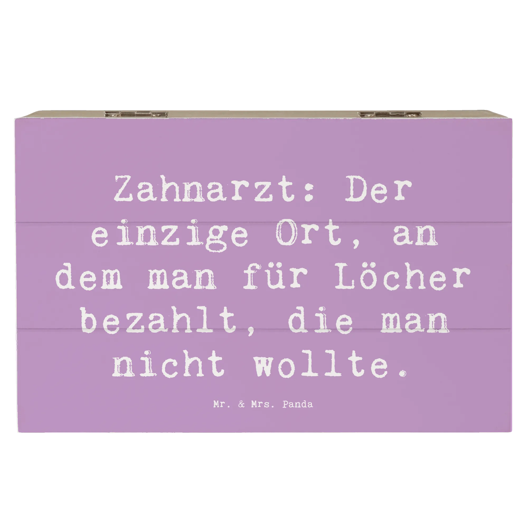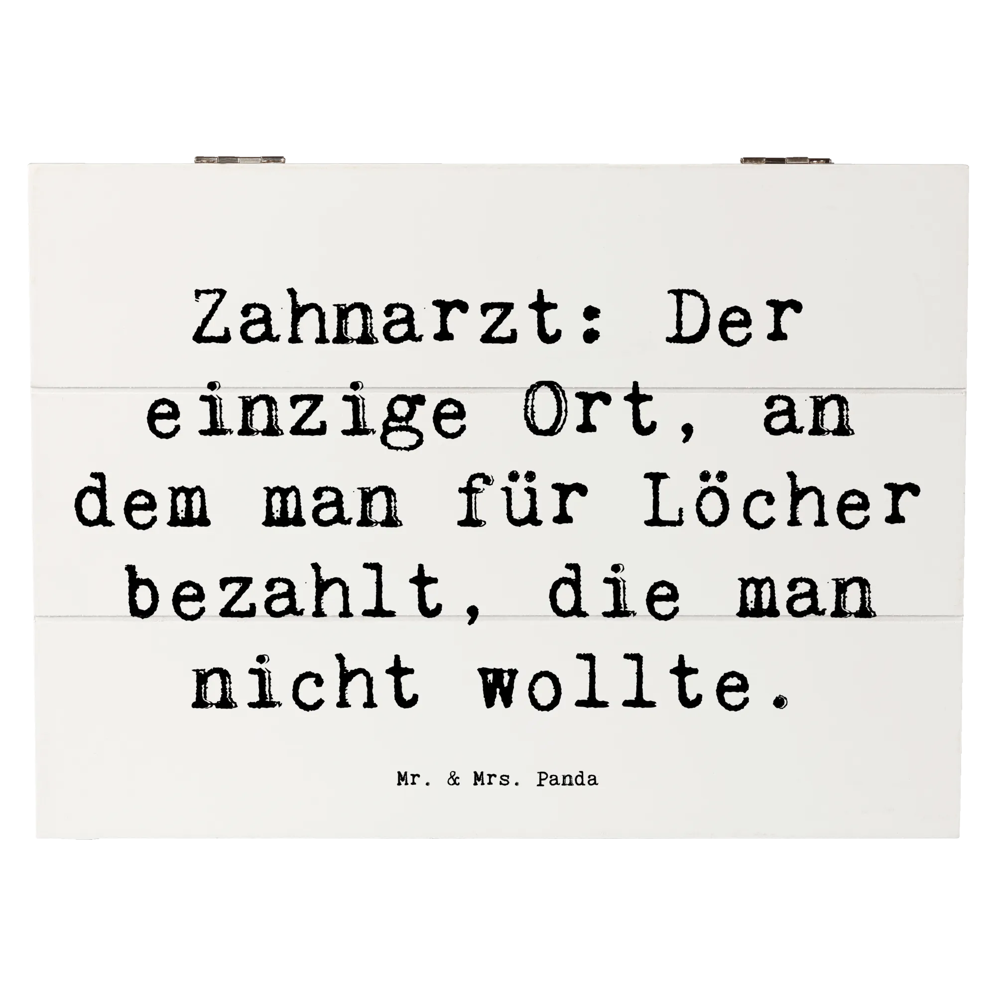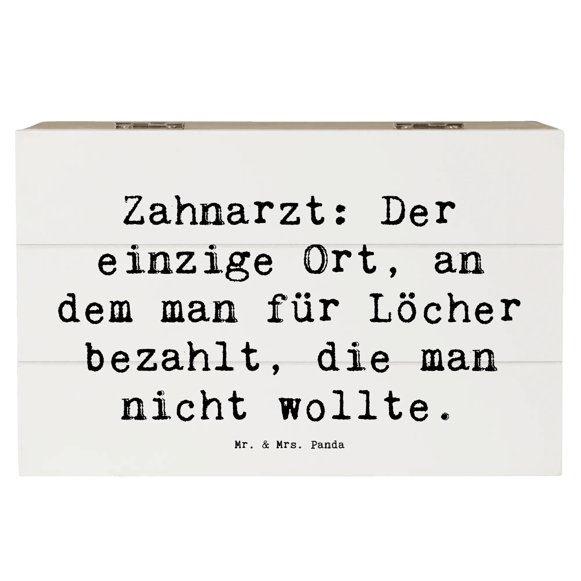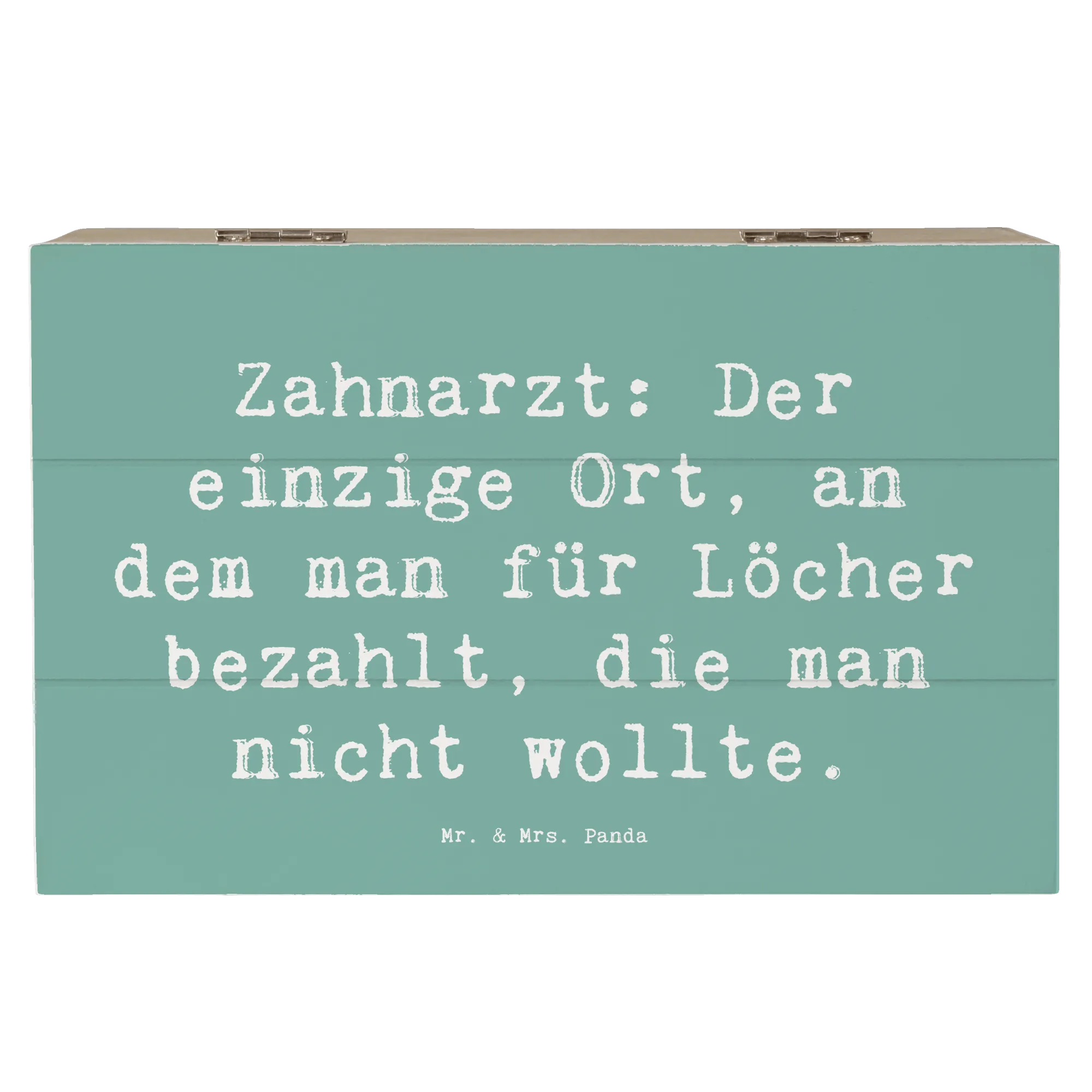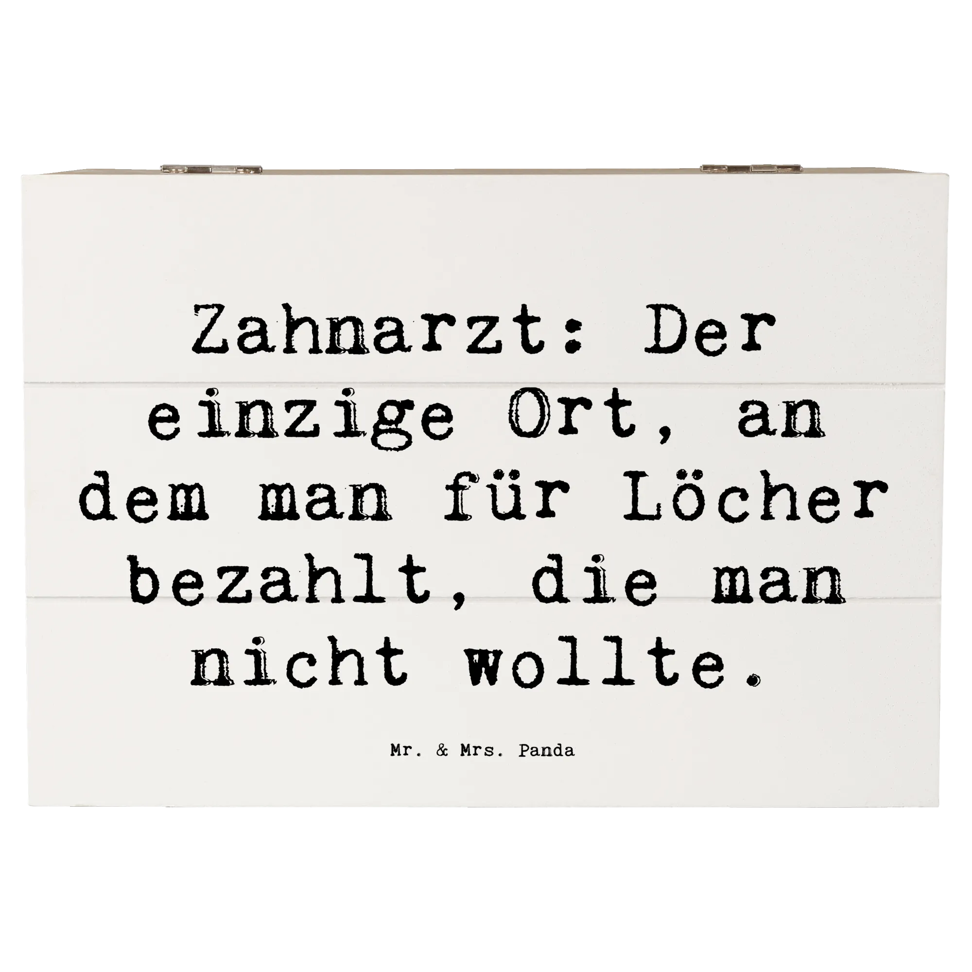 Die wunderschöne Holzkiste von Mr. & Mrs. Panda mit dem einzigartigen Motiv "Zahnarzt: Der einzige Ort, an dem man für Löcher bezahlt, die man nicht wollte." ist das perfekte Geschenk für alle, die in der Zahnmedizin tätig sind oder einfach nur einen Witz über diesen Beruf lieben. Diese besondere Kiste aus robuster Holzfaser eignet sich ideal als Aufbewahrungsort für all deine besonderen Schätze, Erinnerungen und kleinen Dinge, die dir viel bedeuten – sei es als Aufbewahrungsbox für Fotos, Urkunden oder auch für das eine oder andere originelle Geschenk.