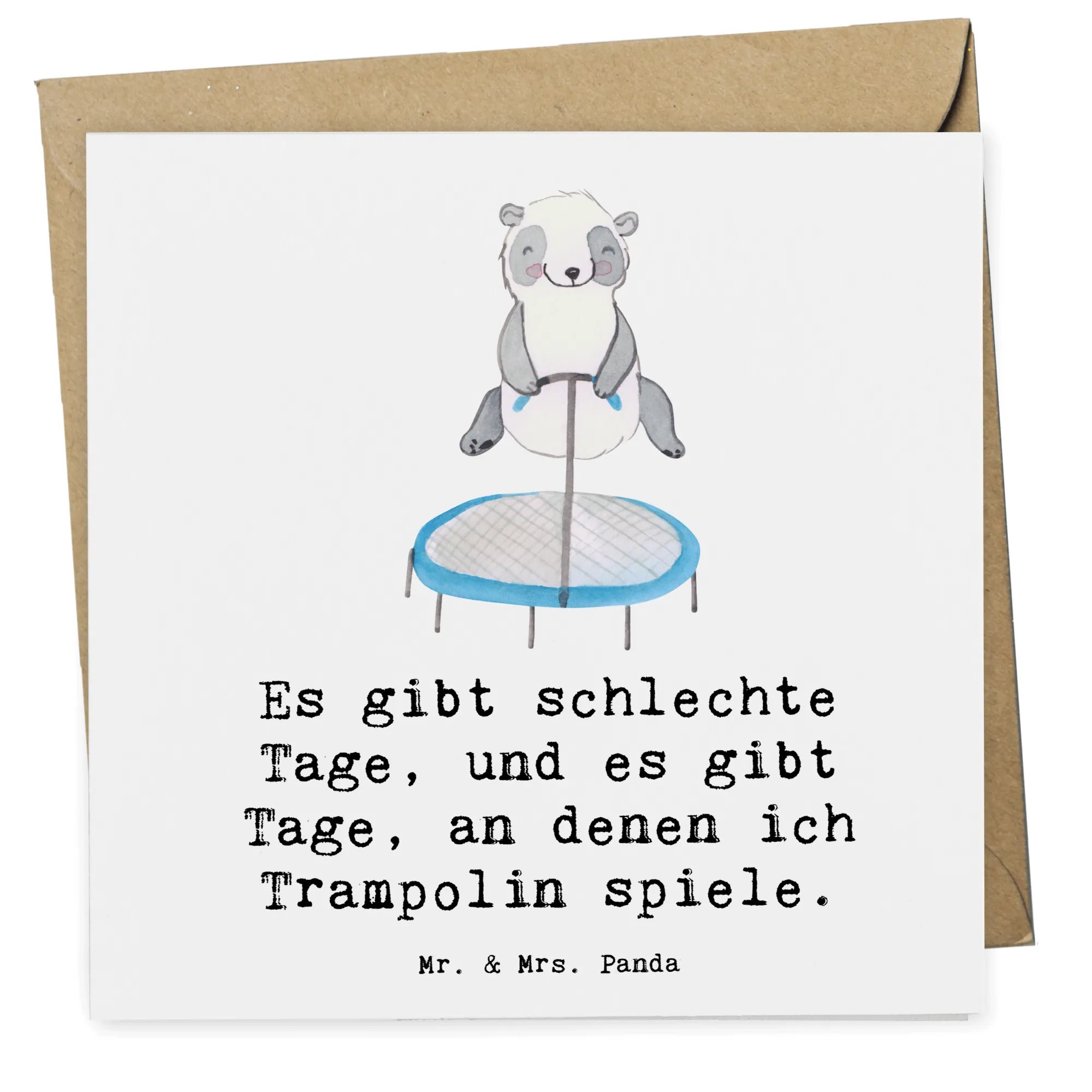 Karta Deluxe Panda skakanie na trampolinie - z napisem - biały