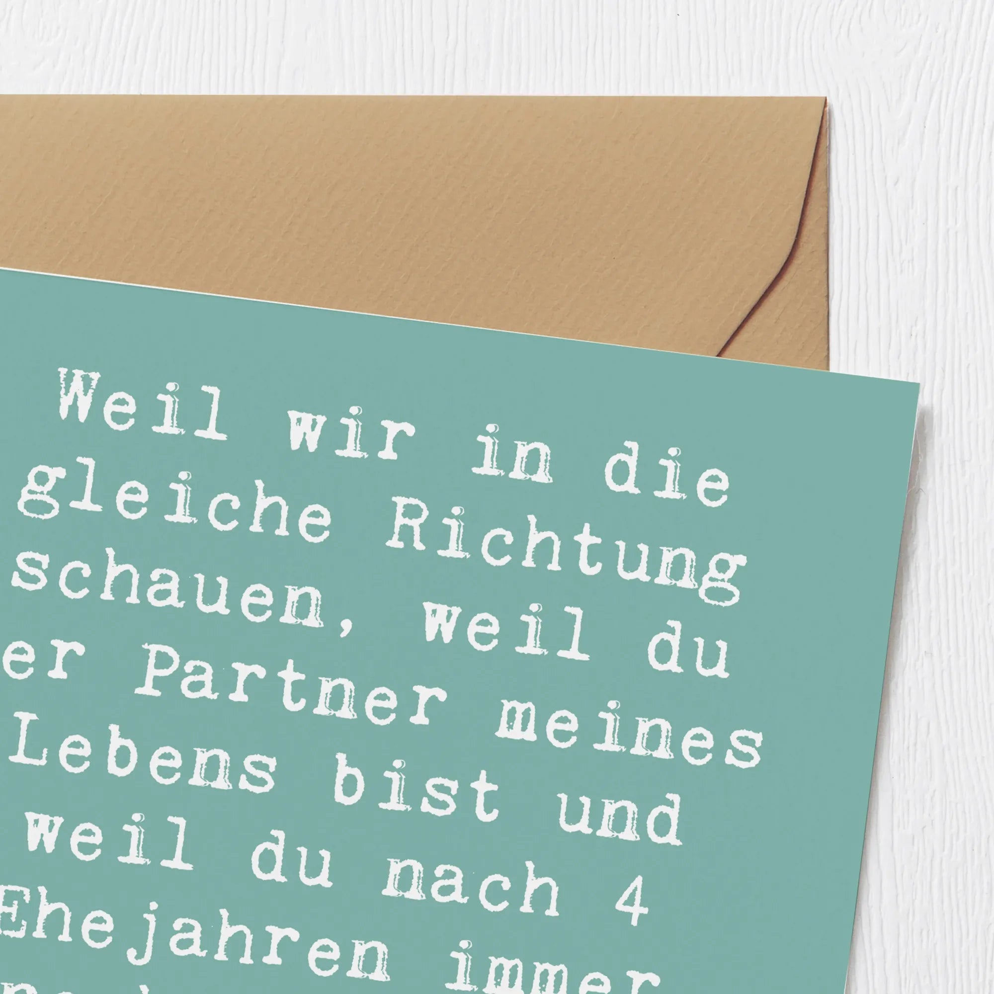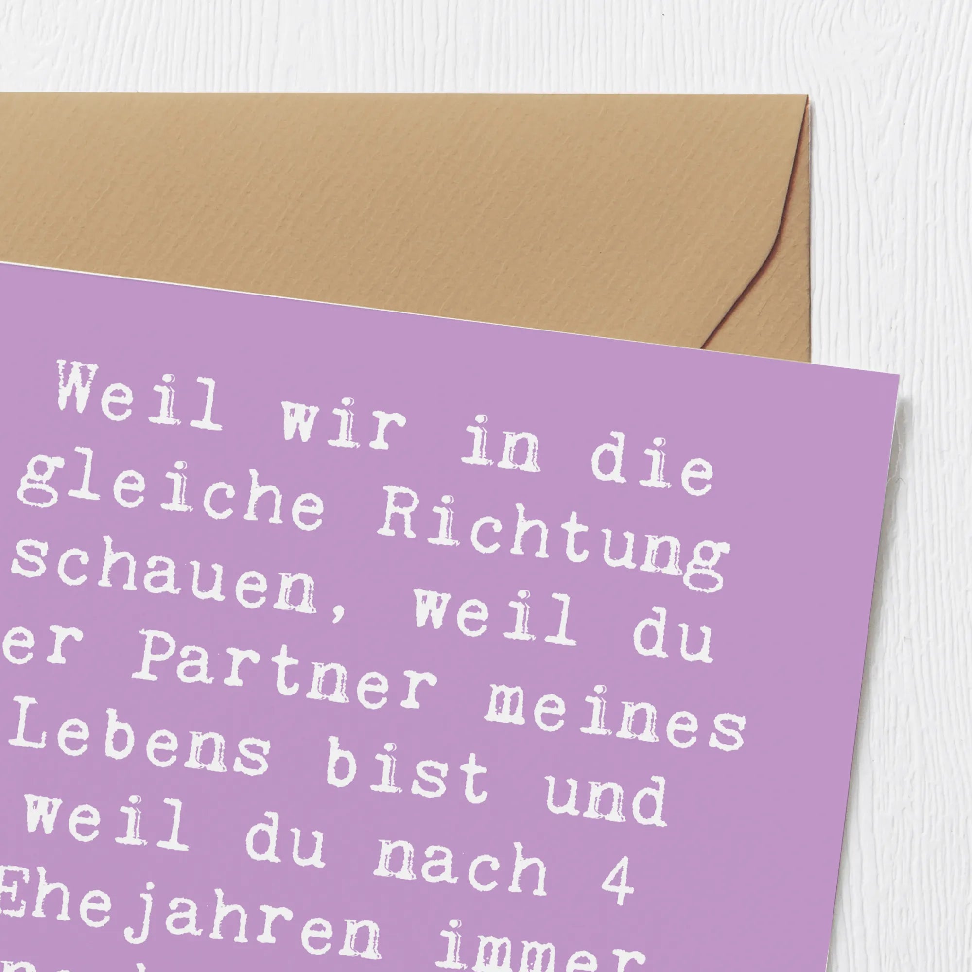 Karta Deluxe Powiedzenie Weil wir in die gleiche Richtung schauen, weil du der Partner meines Lebens bist und weil du nach 4 Ehejahren immer noch an meiner Seite bist, darum liebe ich dich! - Lavendeltraum