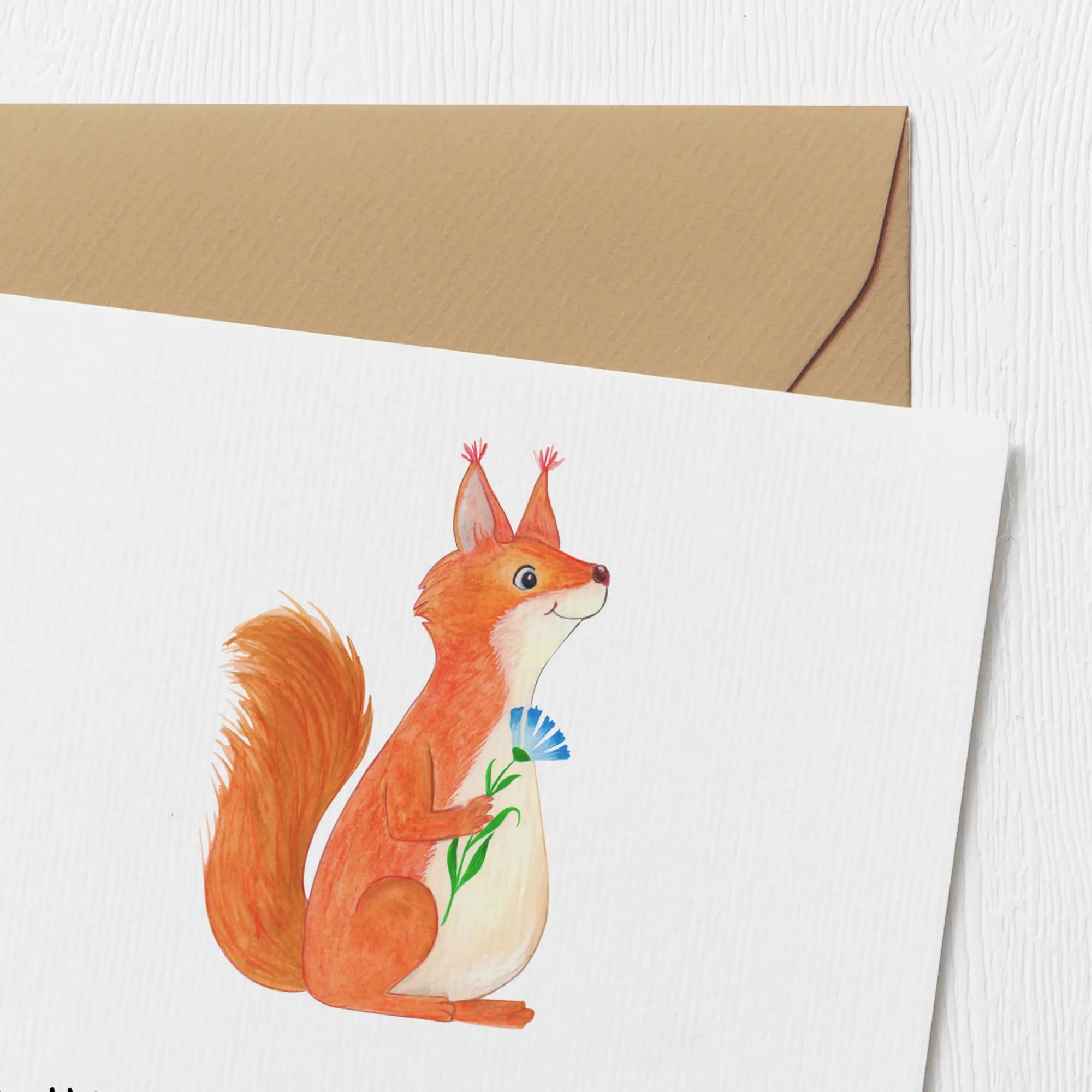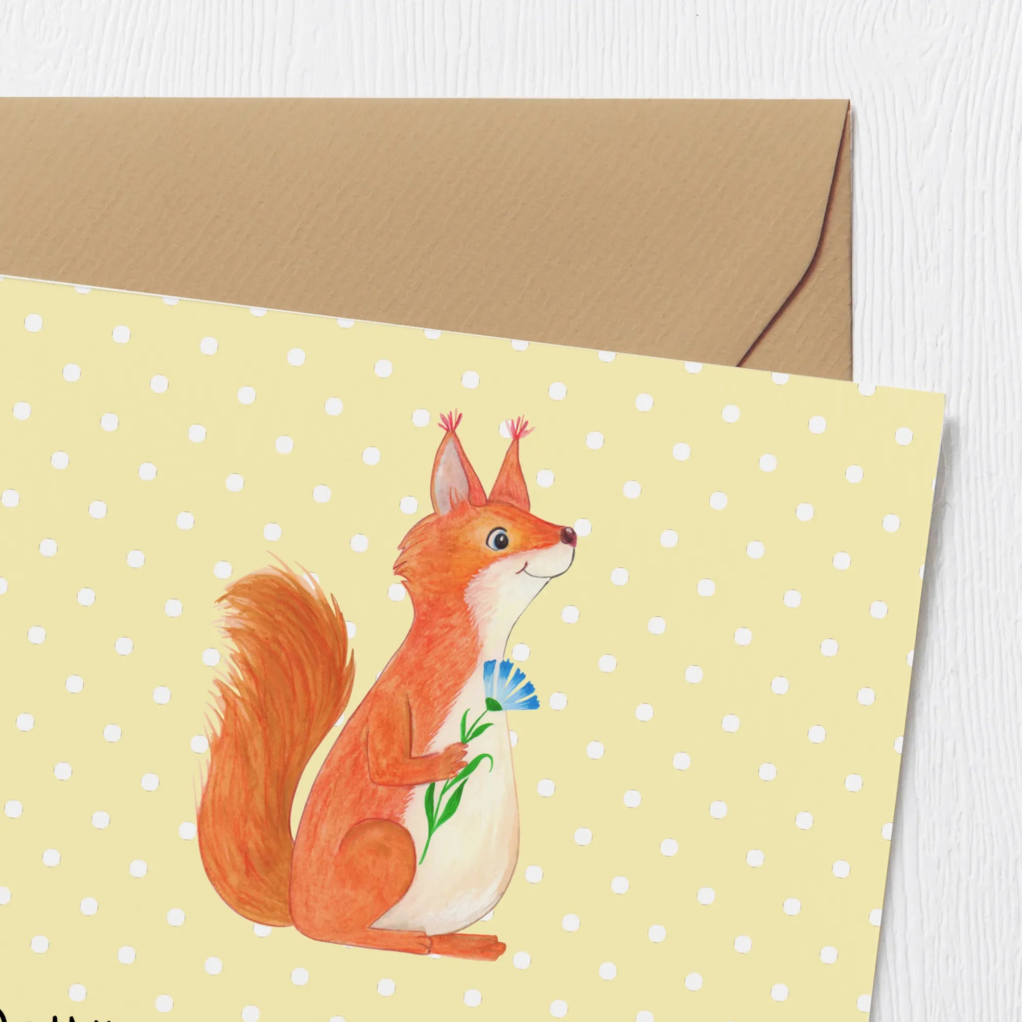 Karta Deluxe wiewiórka kwiat - z napisem - Pastelowy żółty