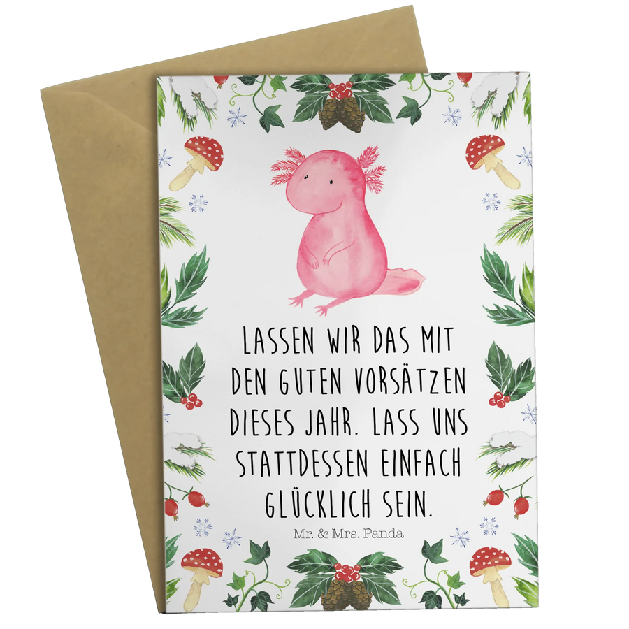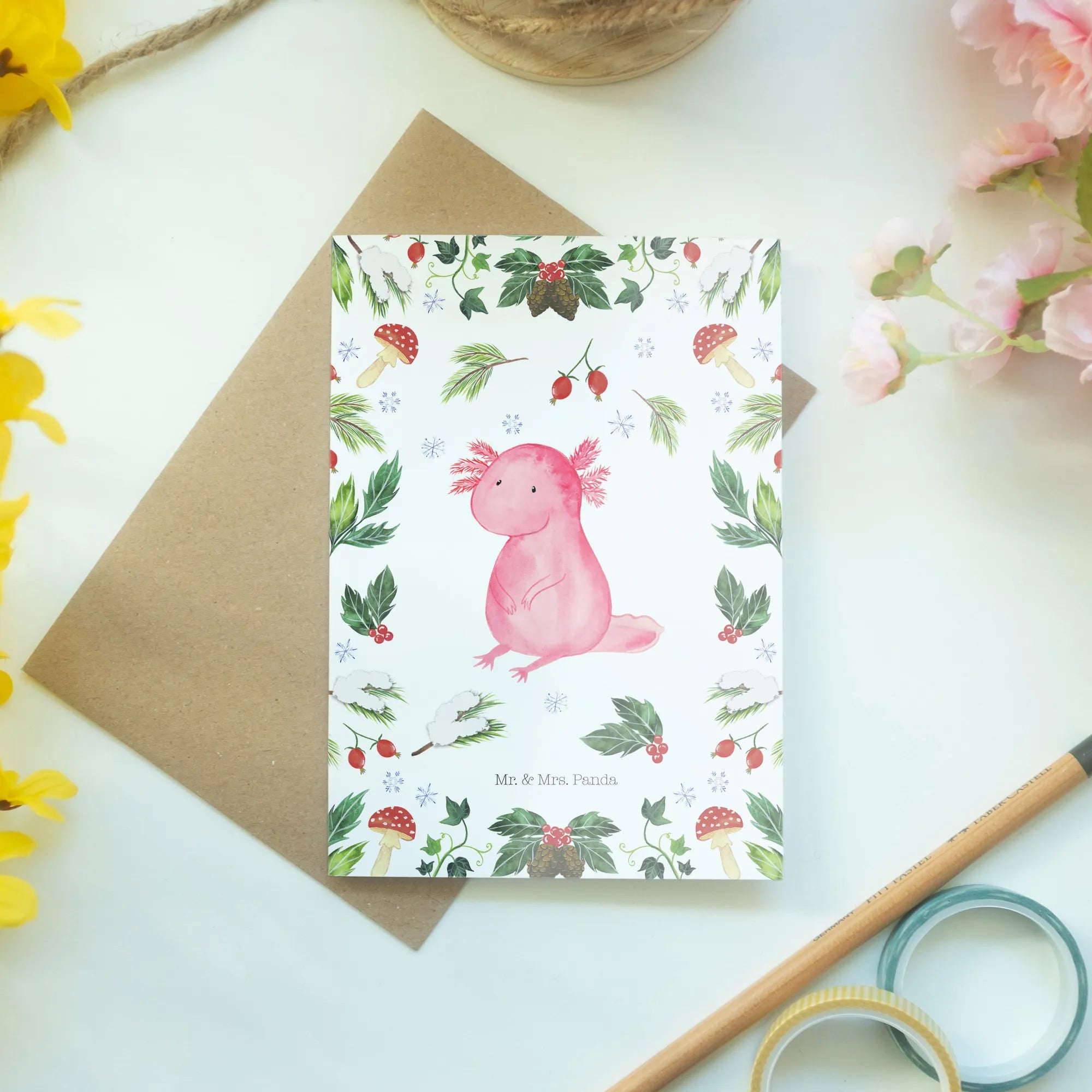 Kartka okolicznościowa Aksolotl Szczęśliwy - z napisem - Biały
