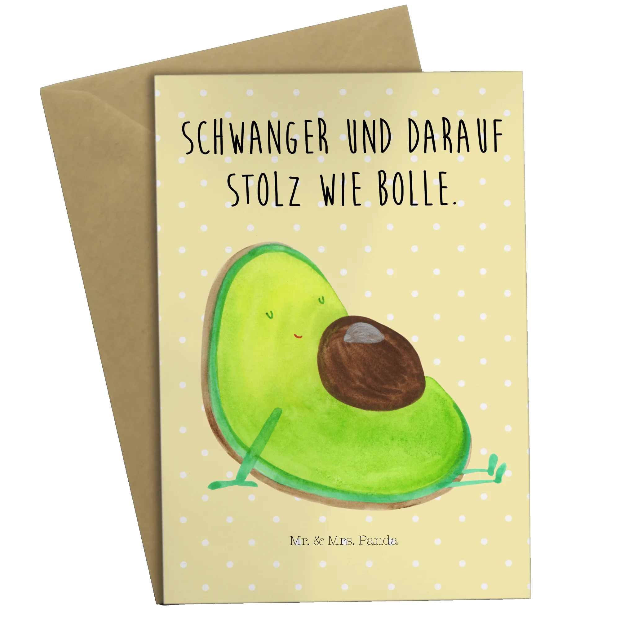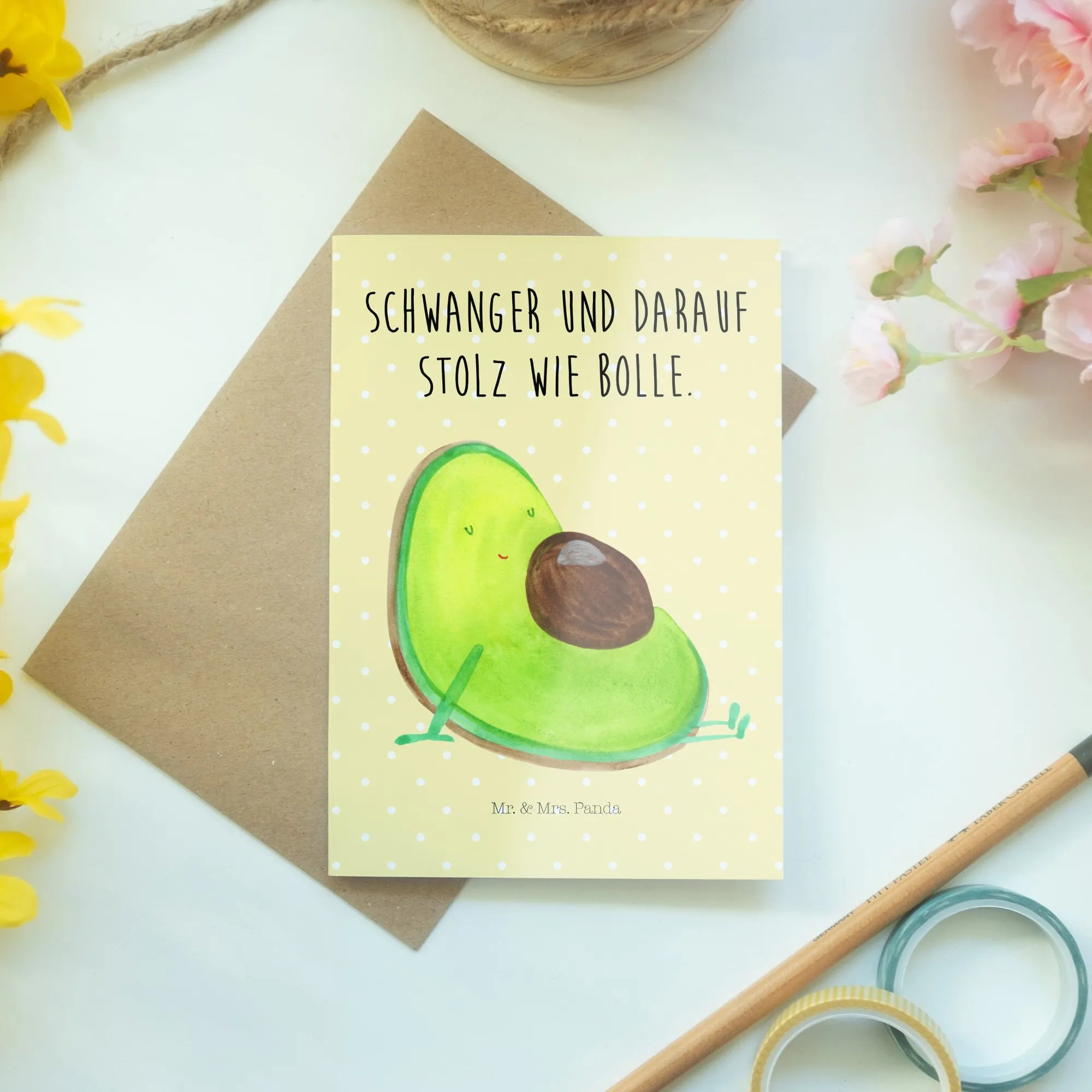 Kartka okolicznościowa Awokado ciąża - z napisem - Pastelowy żółty