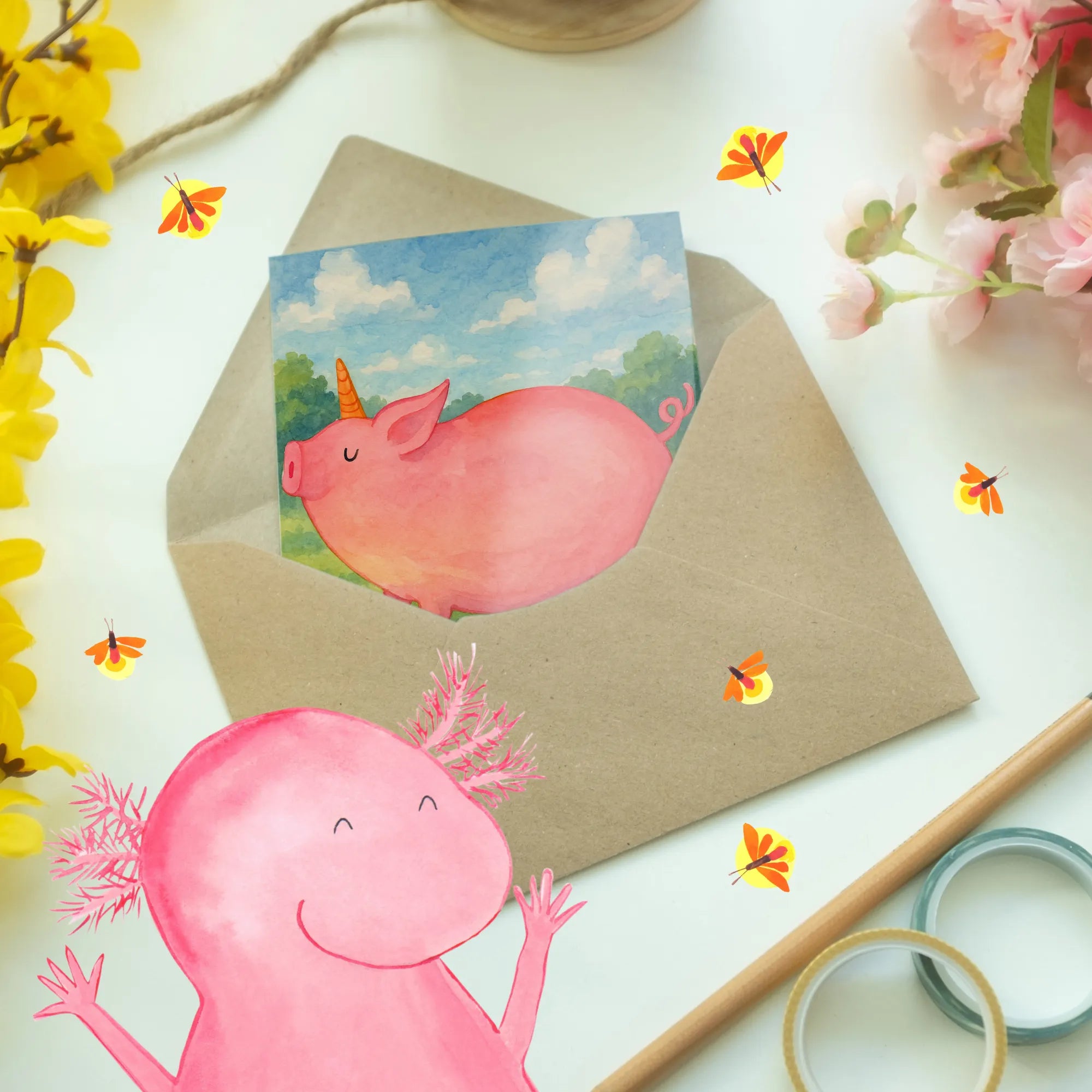 Kartka okolicznościowa jednorożec świnia Design - z napisem