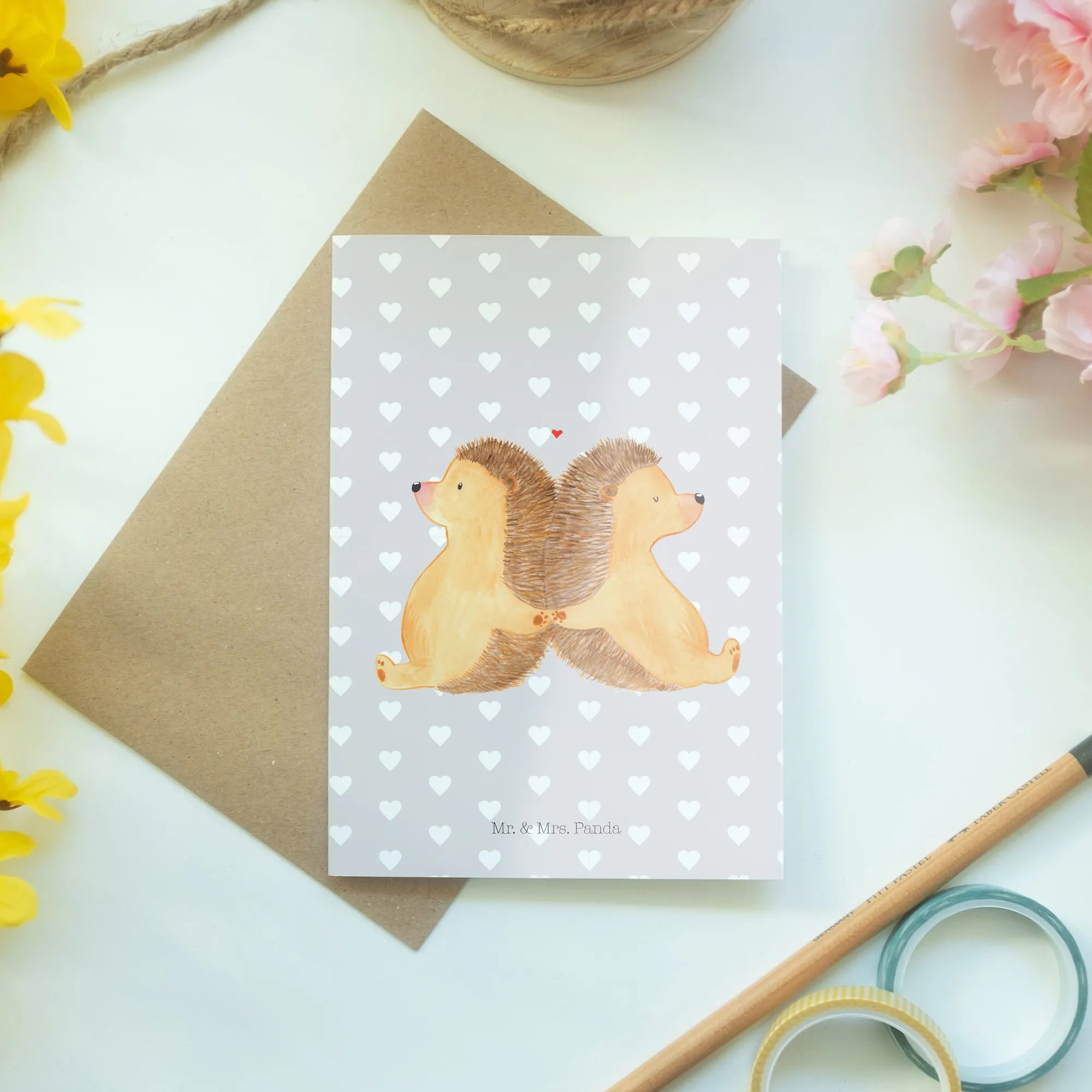 Kartka okolicznościowa Jeże trzymające się za łapki - z napisem - Pastelowy szary