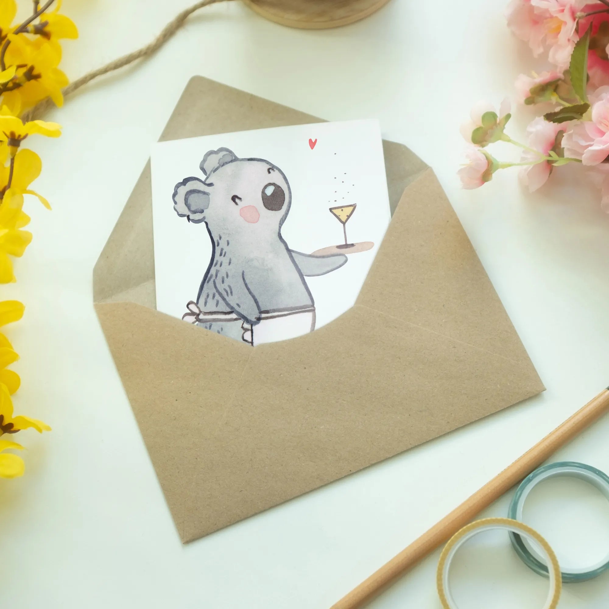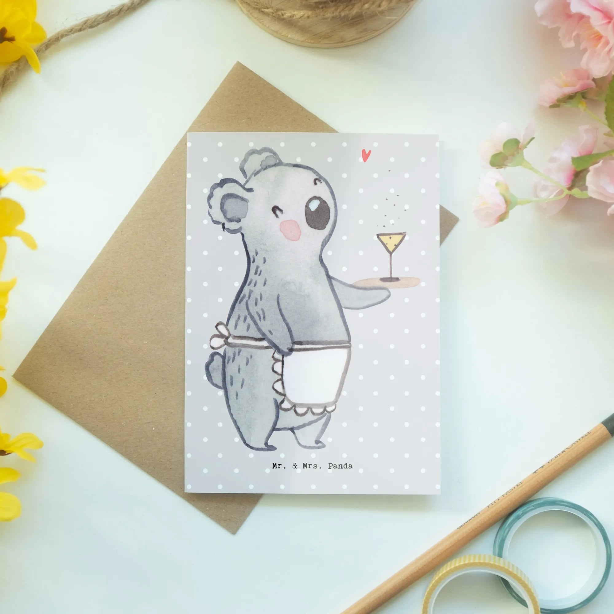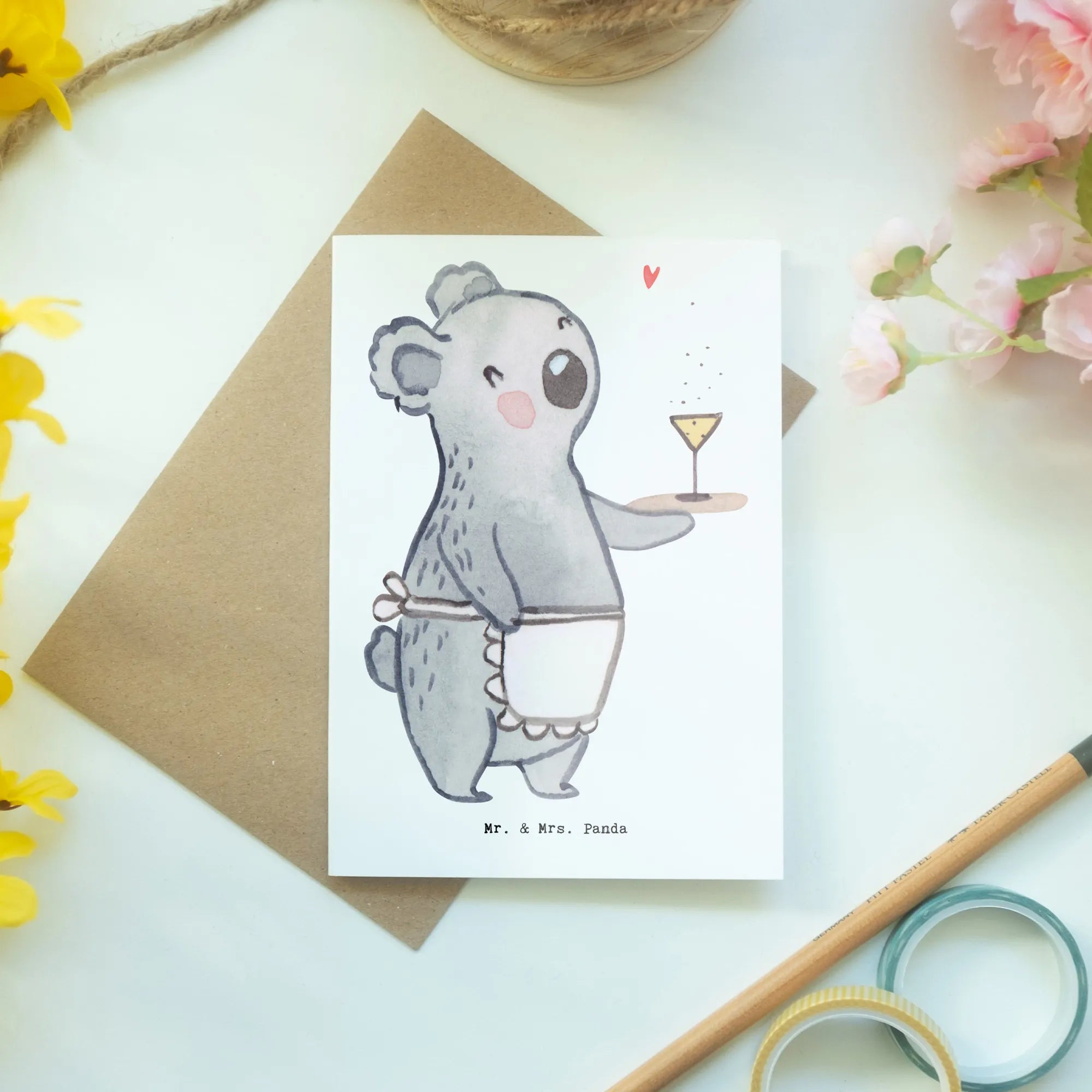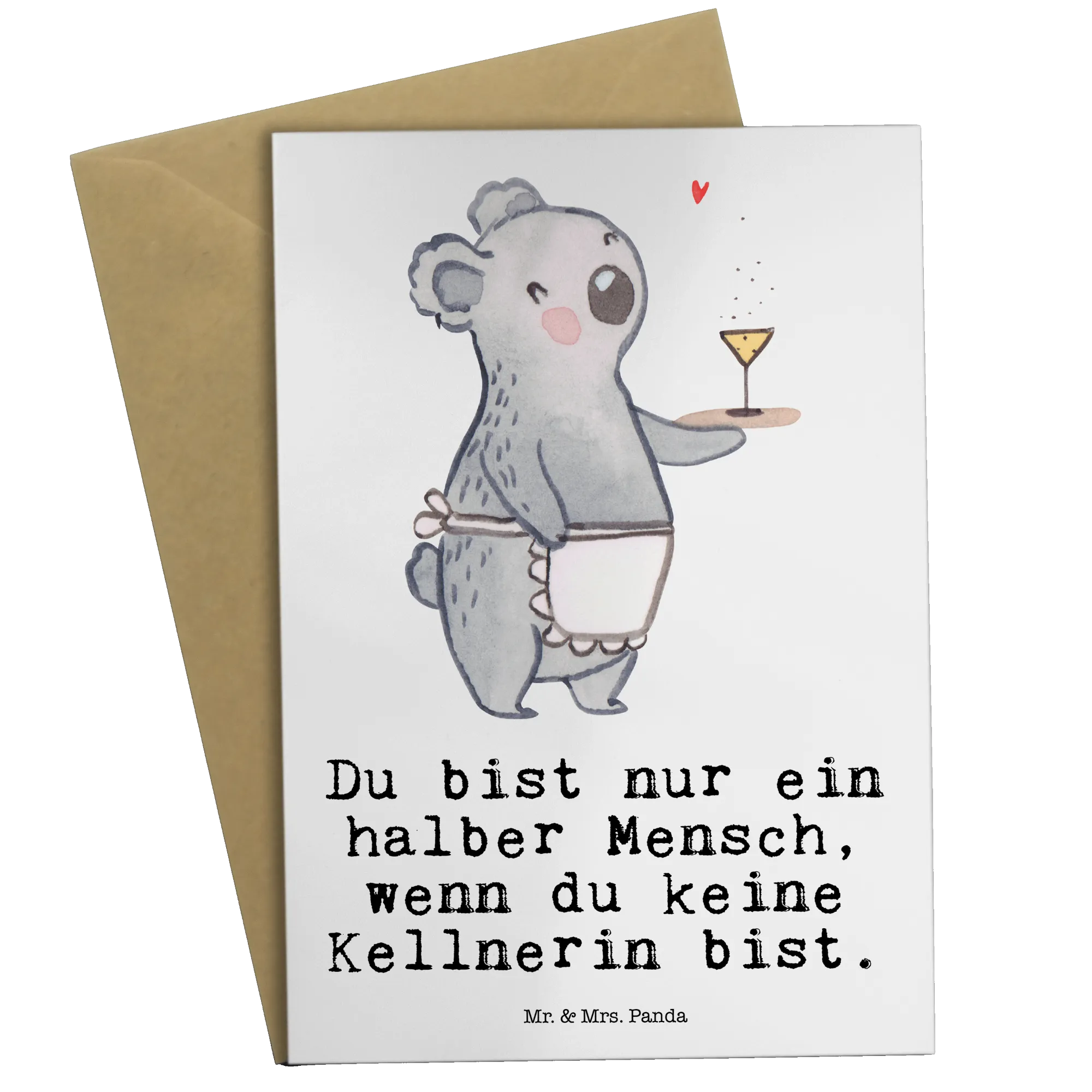 Kartka okolicznościowa Kelnerka serce - z napisem - biały
