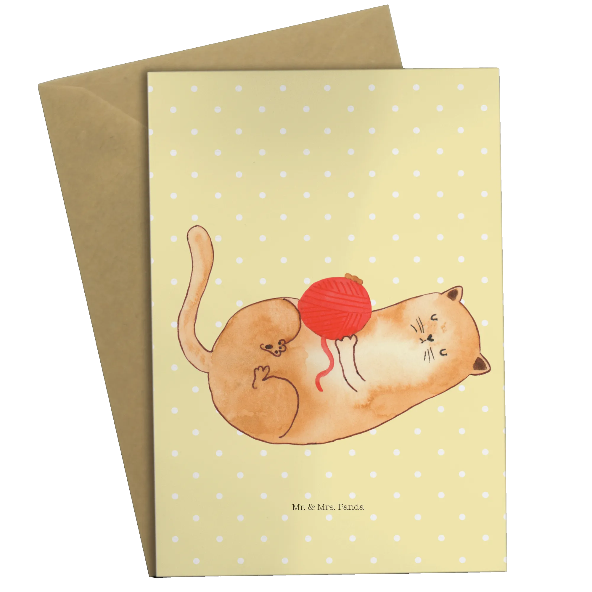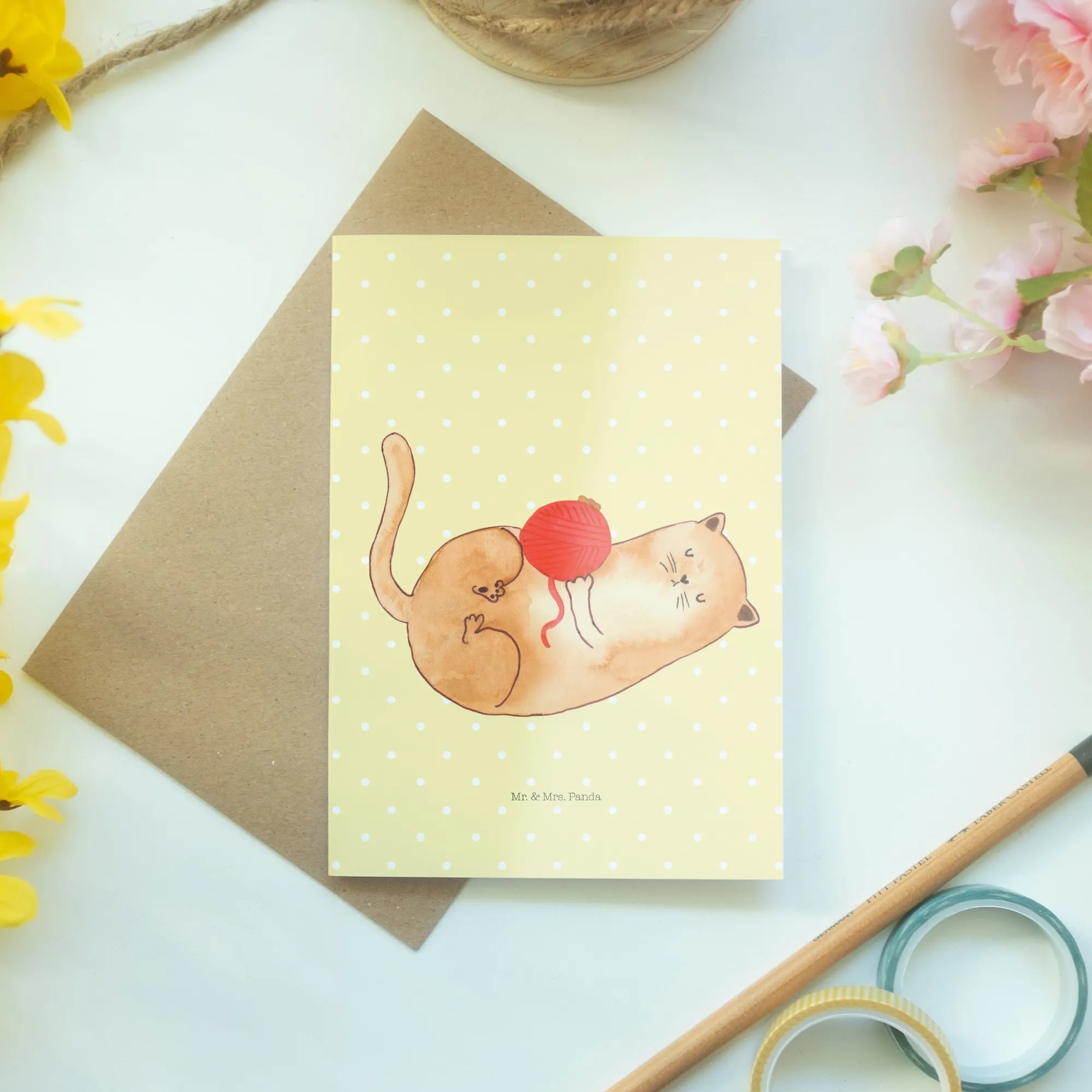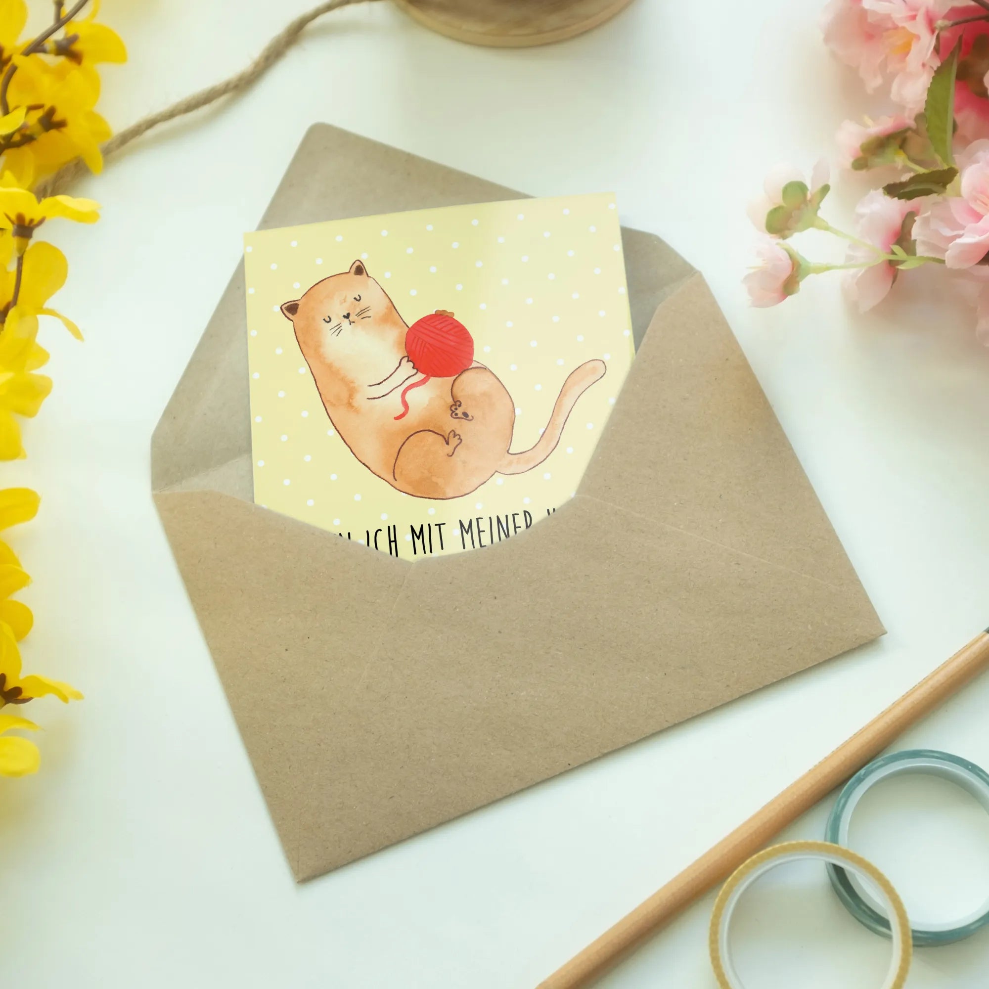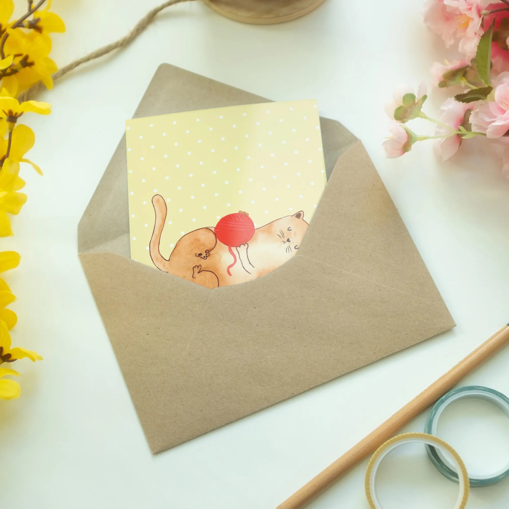 Kartka okolicznościowa kot wełna - z napisem - Pastelowy żółty