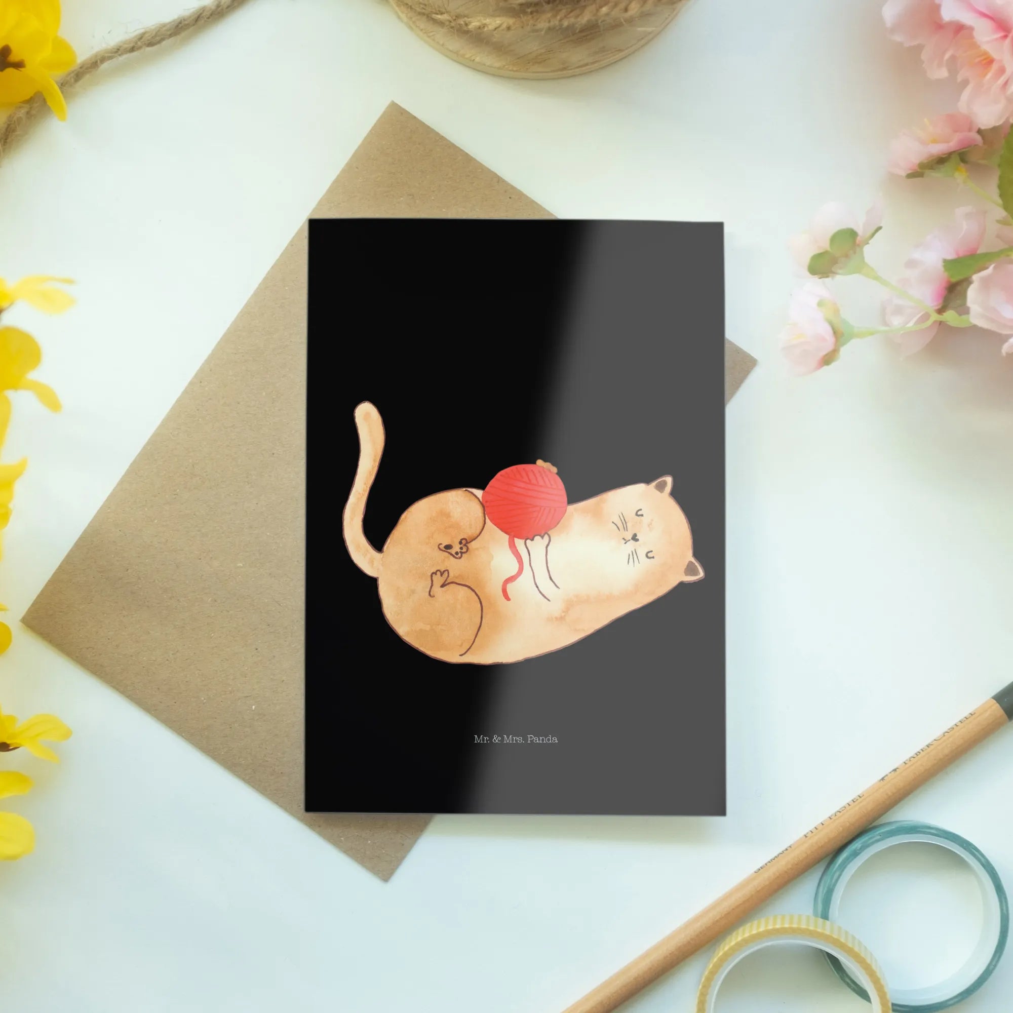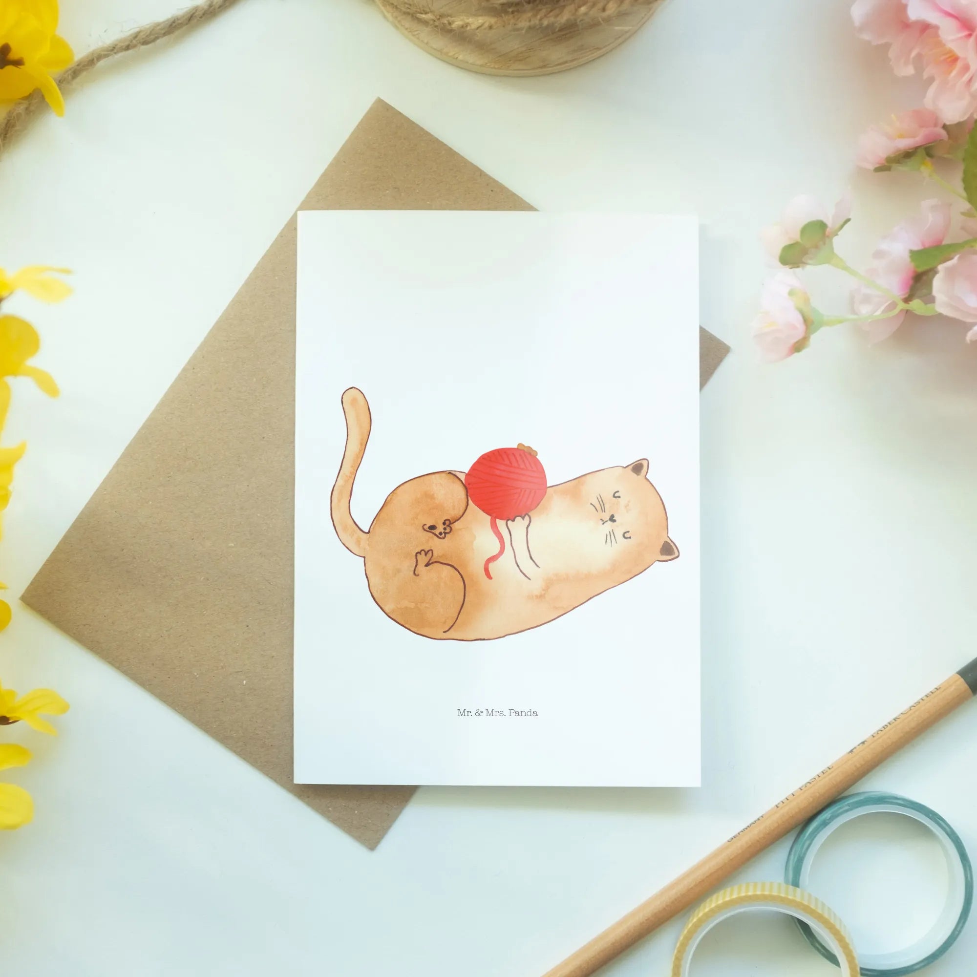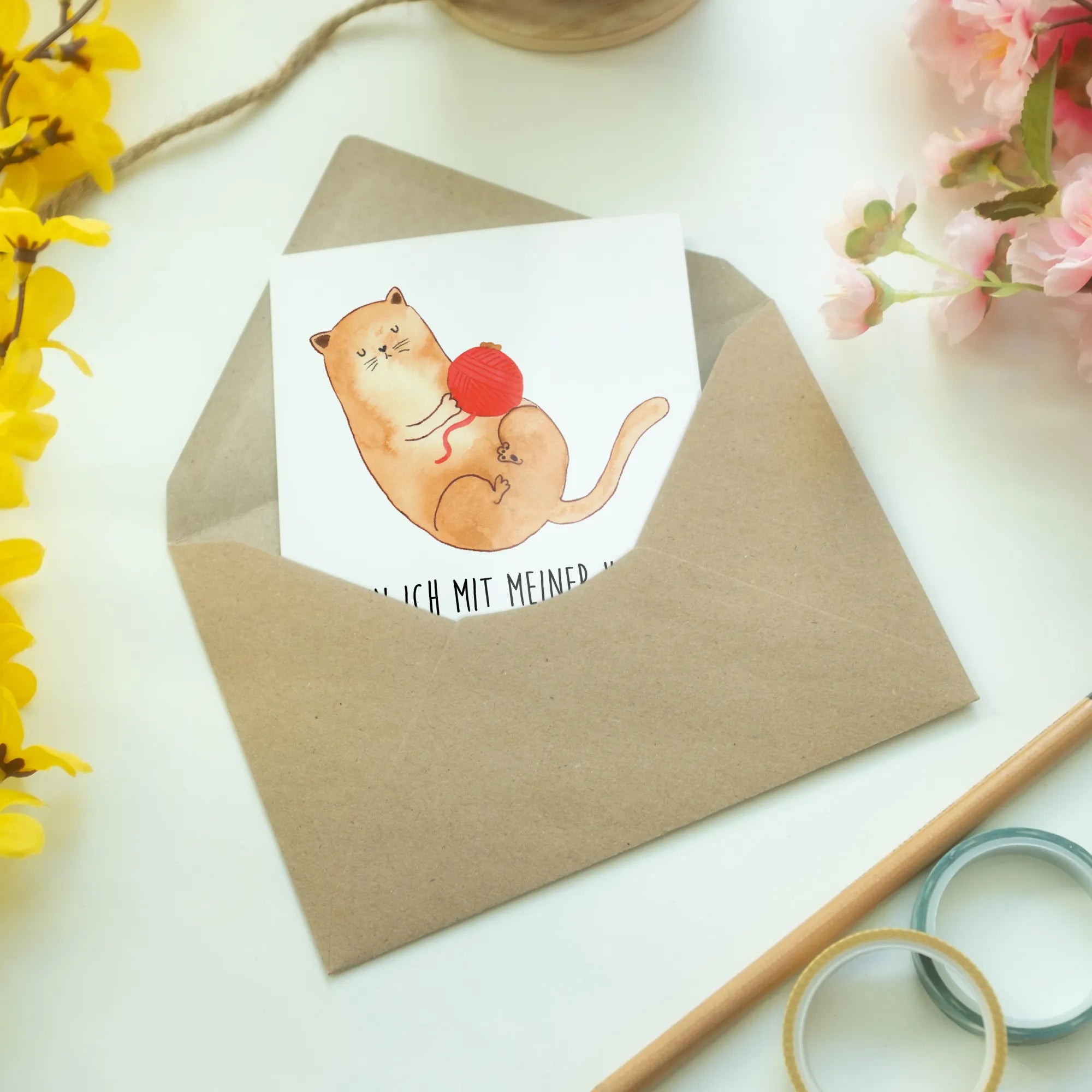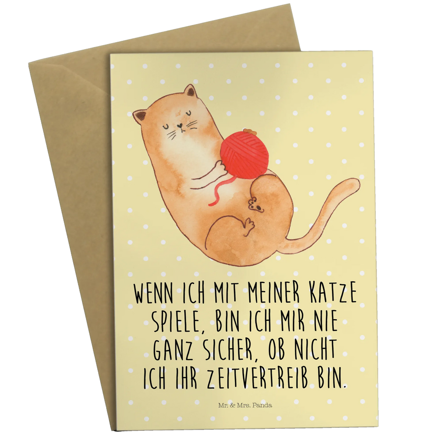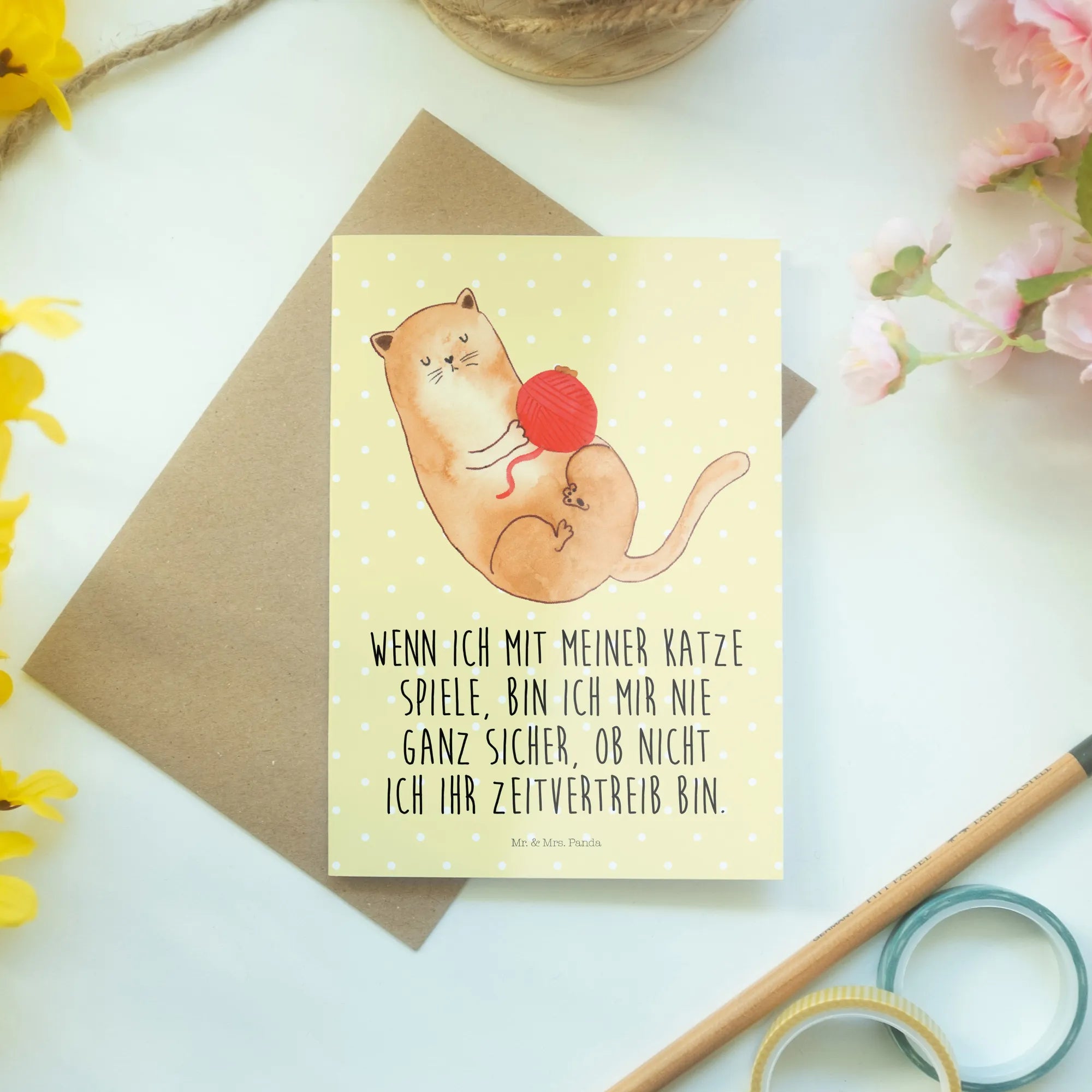 Kartka okolicznościowa kot wełna - z napisem - Pastelowy żółty