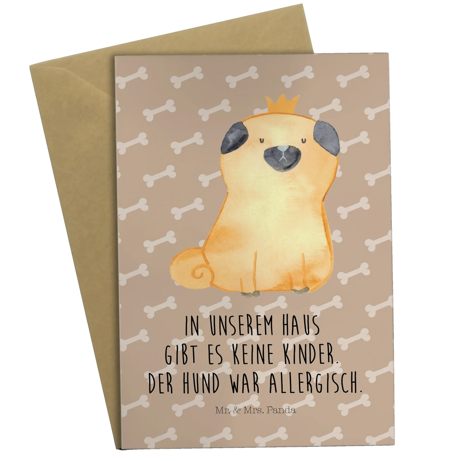 Kartka okolicznościowa mops korona - z napisem - Hundeglück