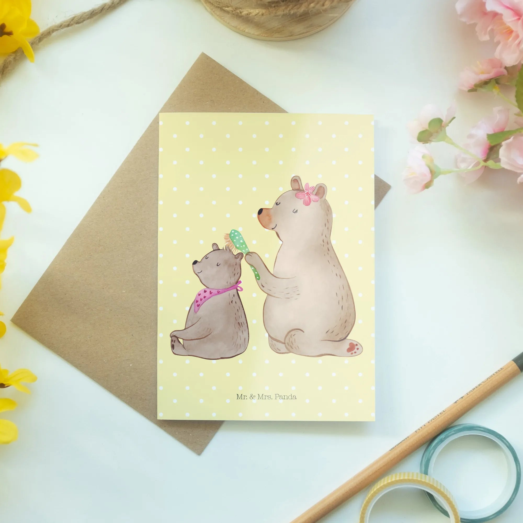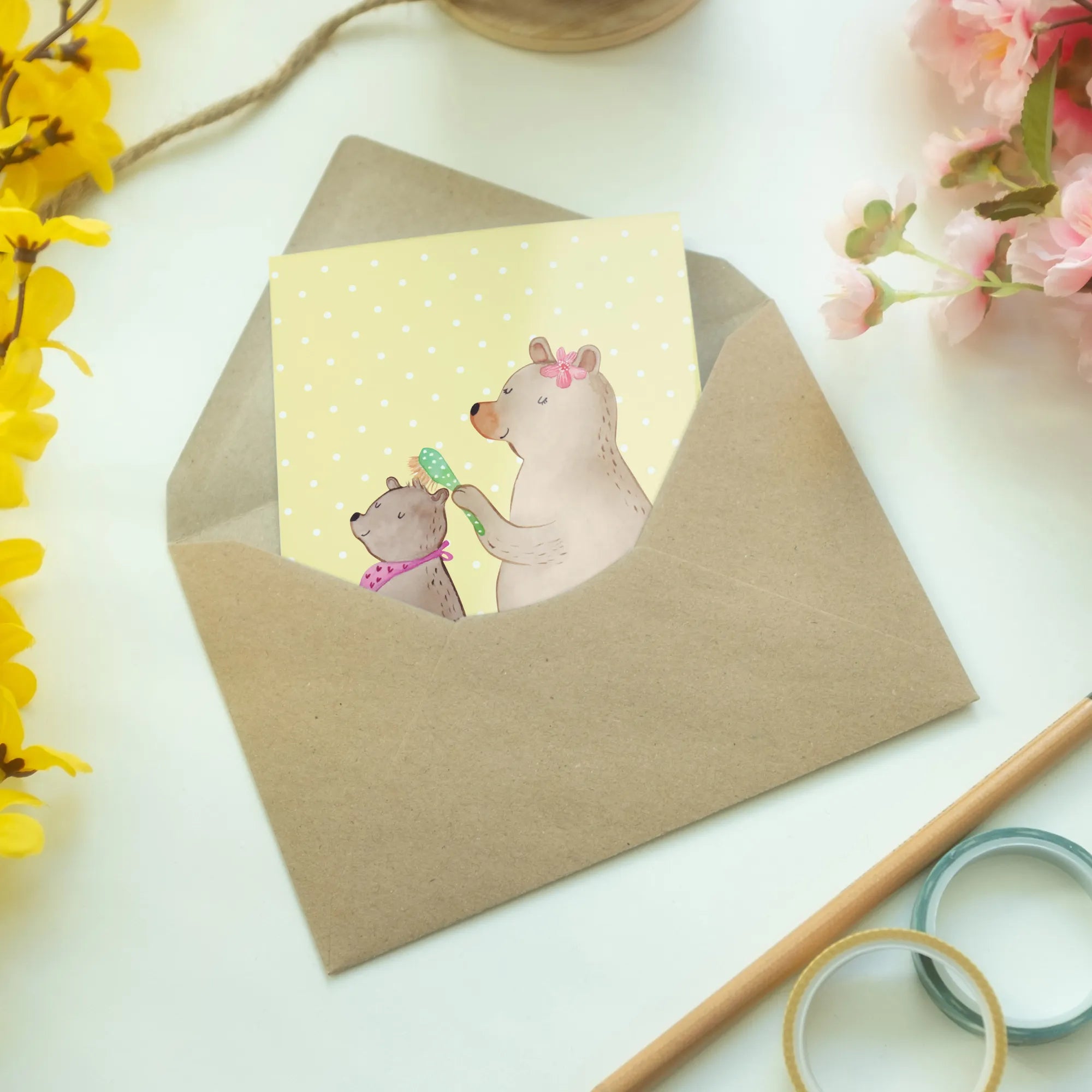 Kartka okolicznościowa niedźwiedź dziecko - z napisem - Żółty Pastel