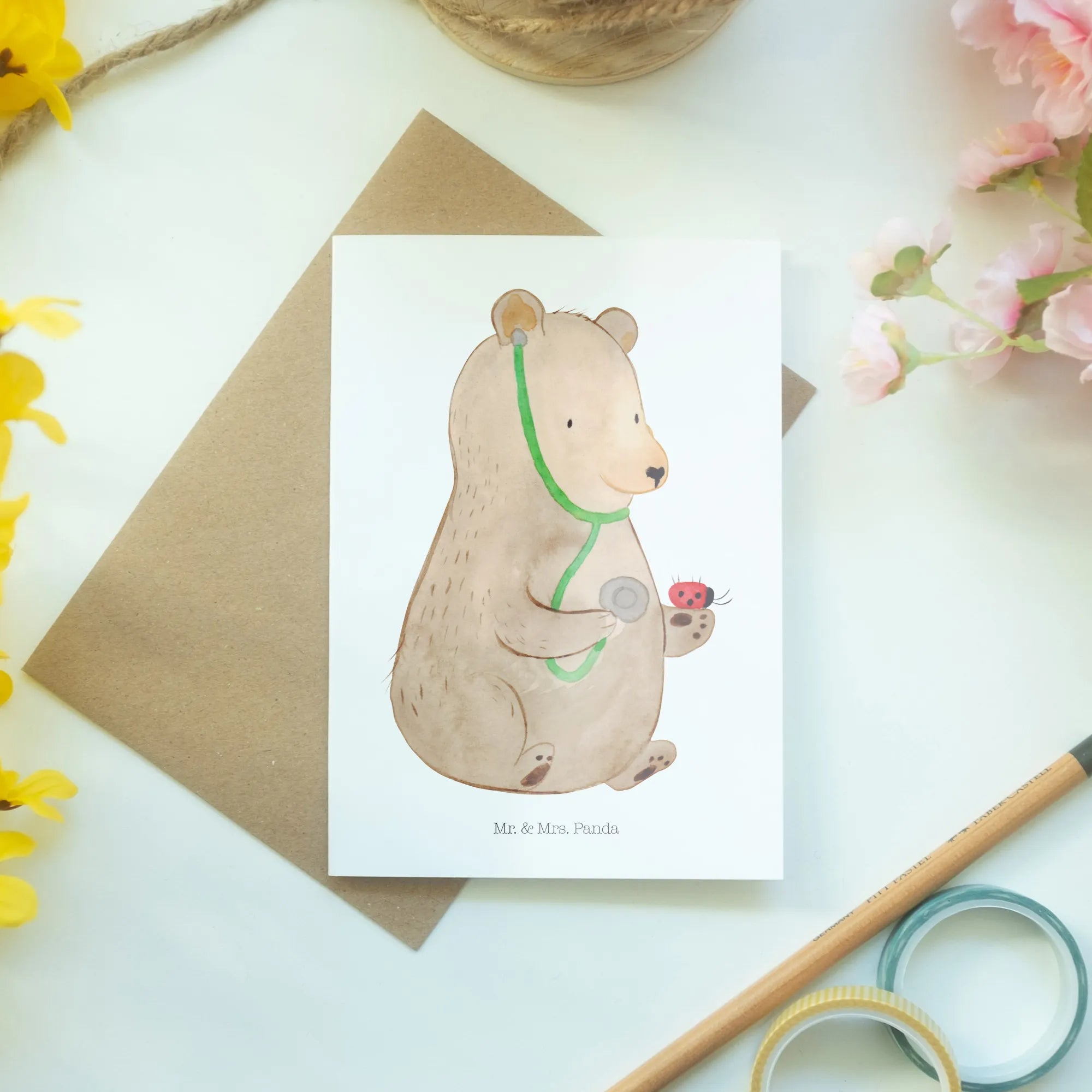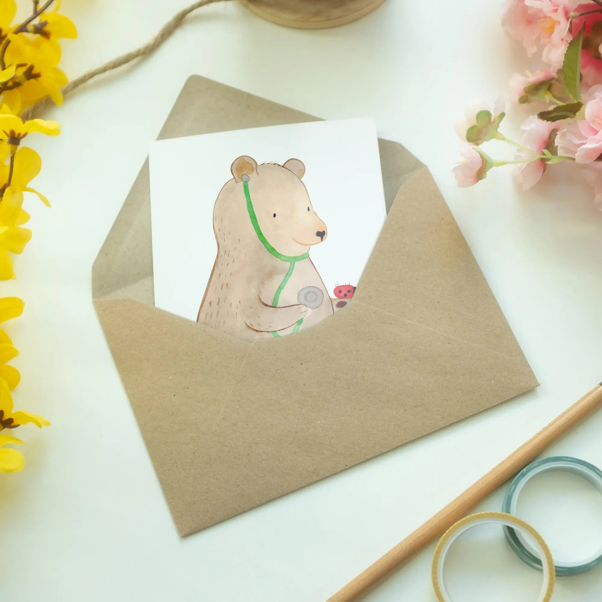 Kartka okolicznościowa niedźwiedź lekarz - z napisem