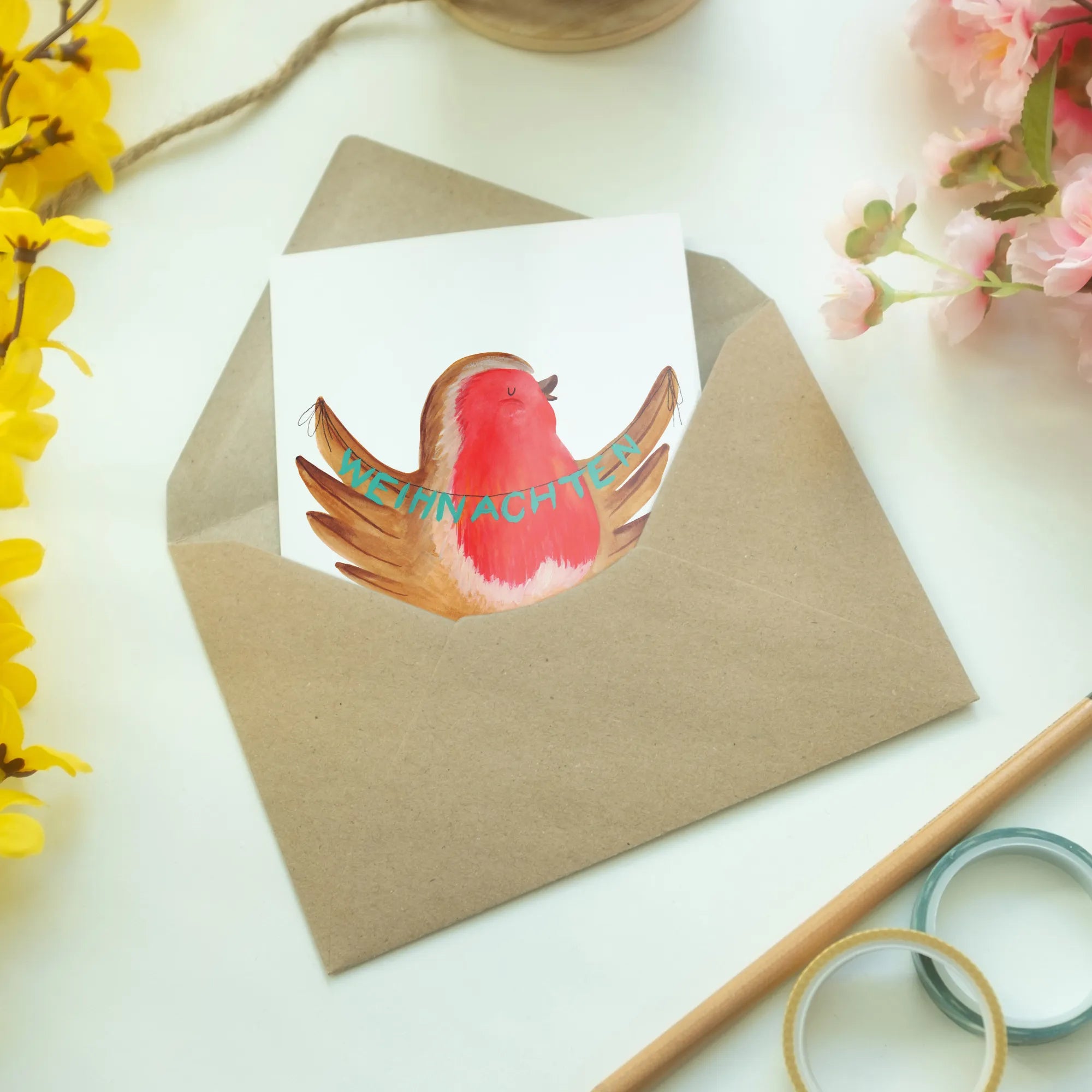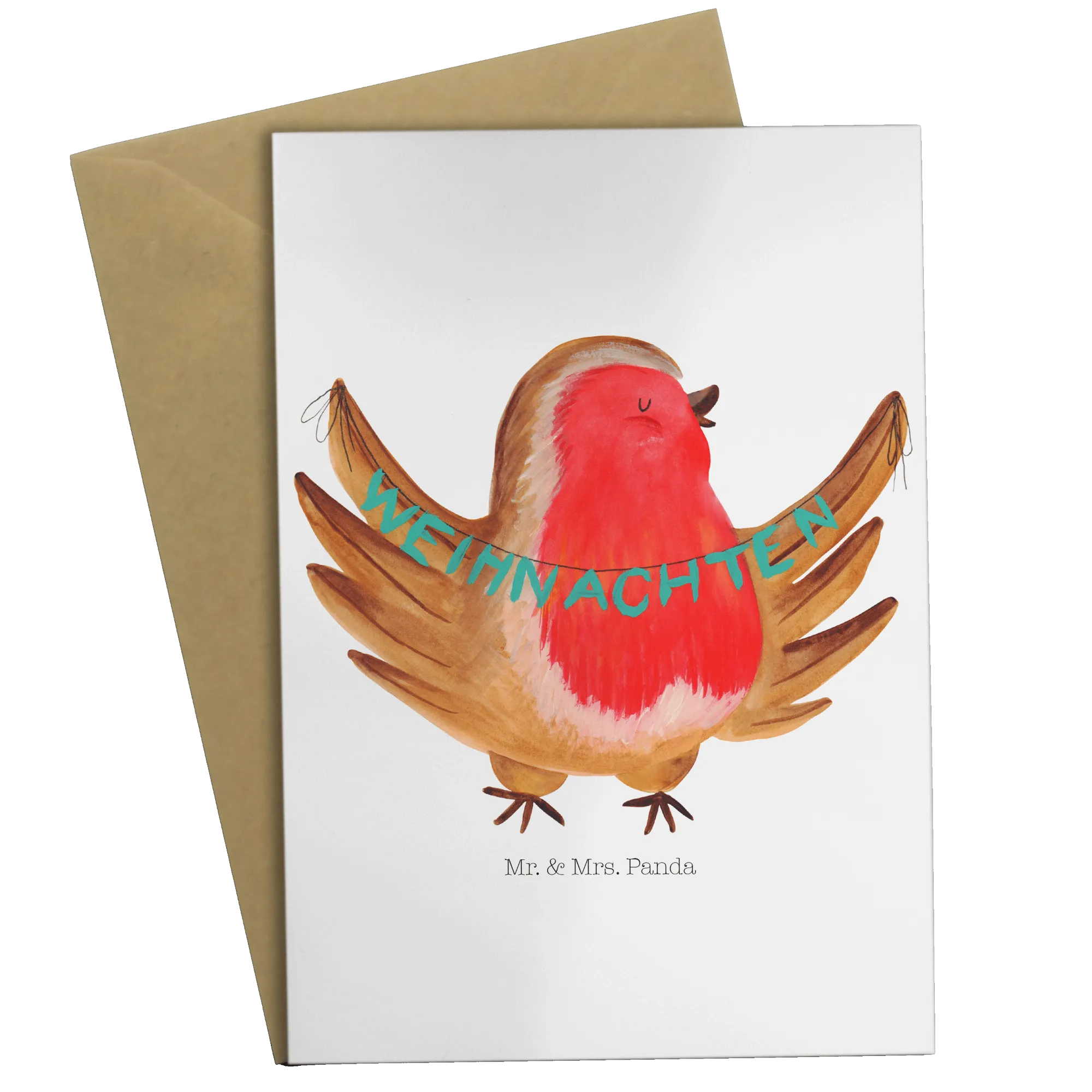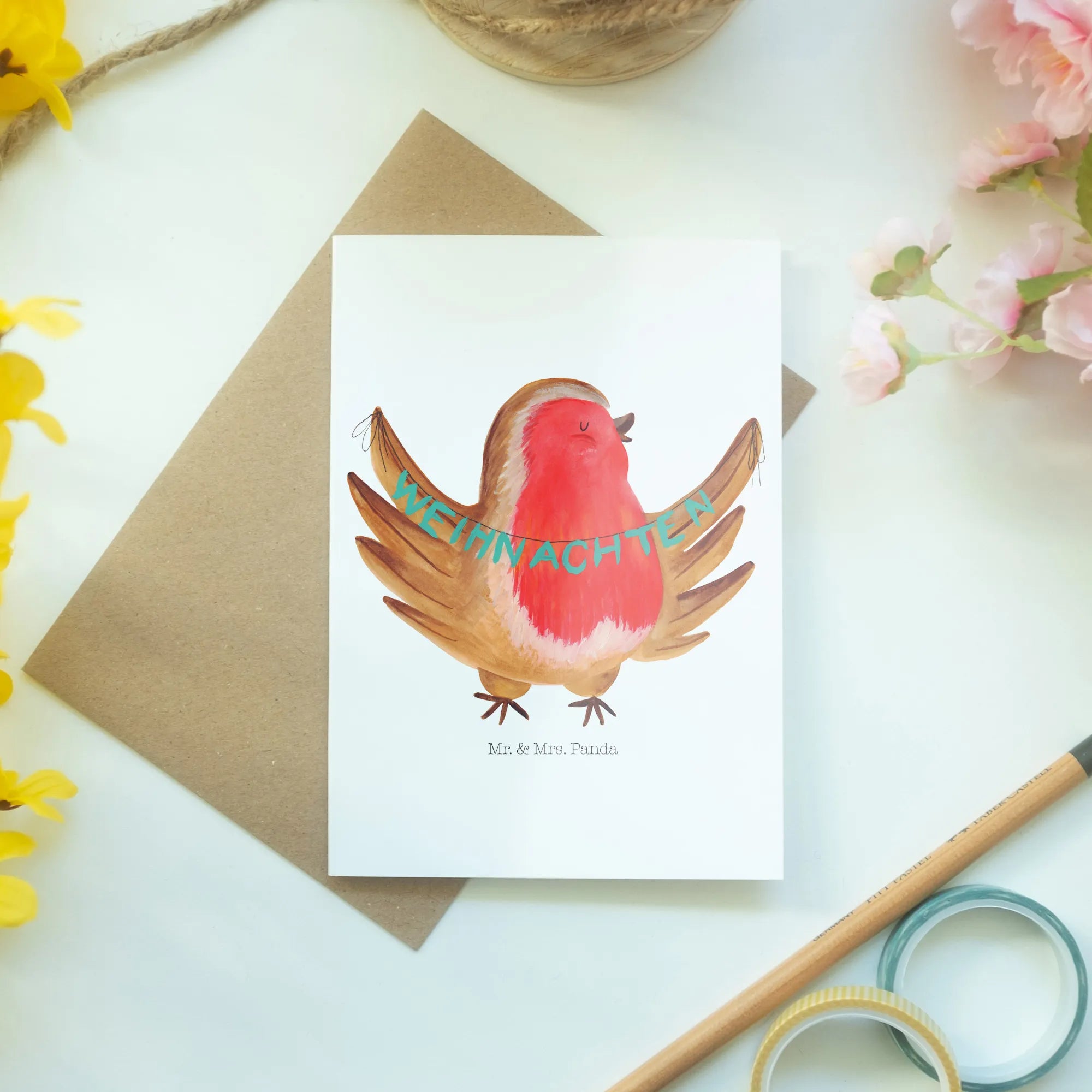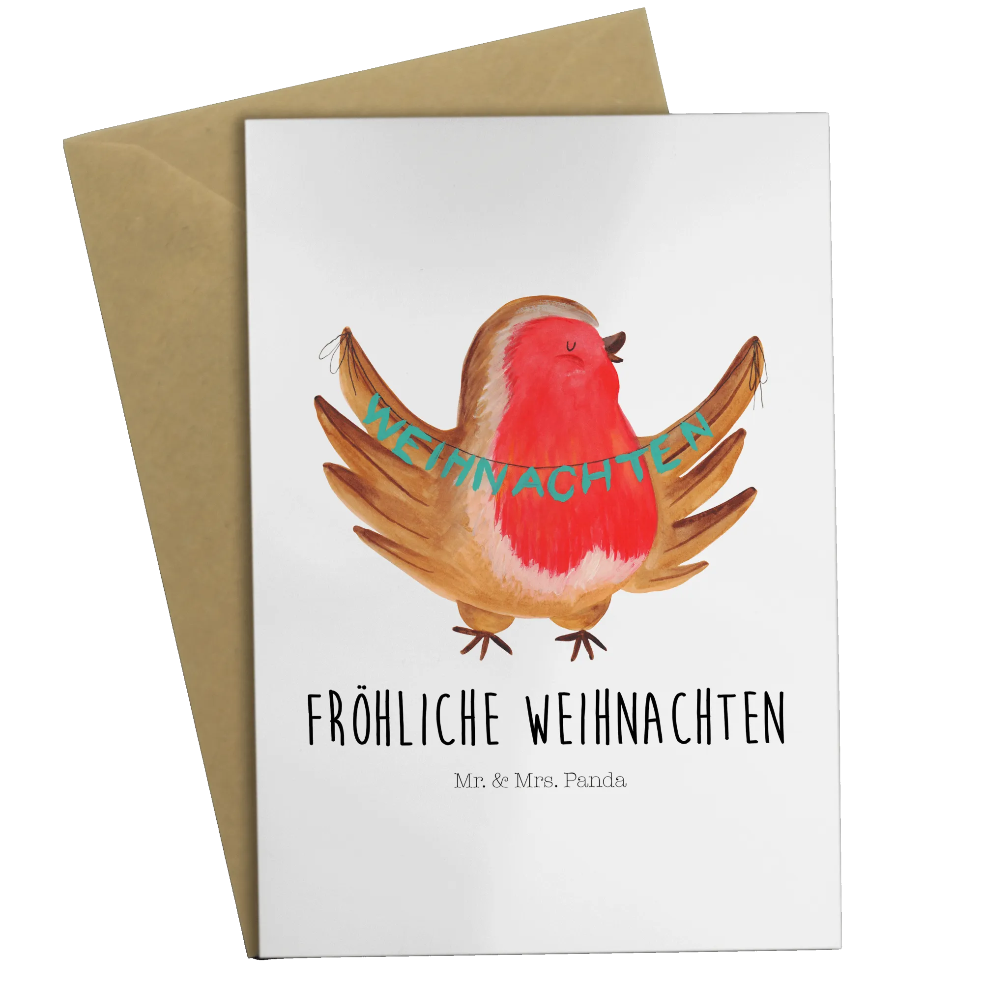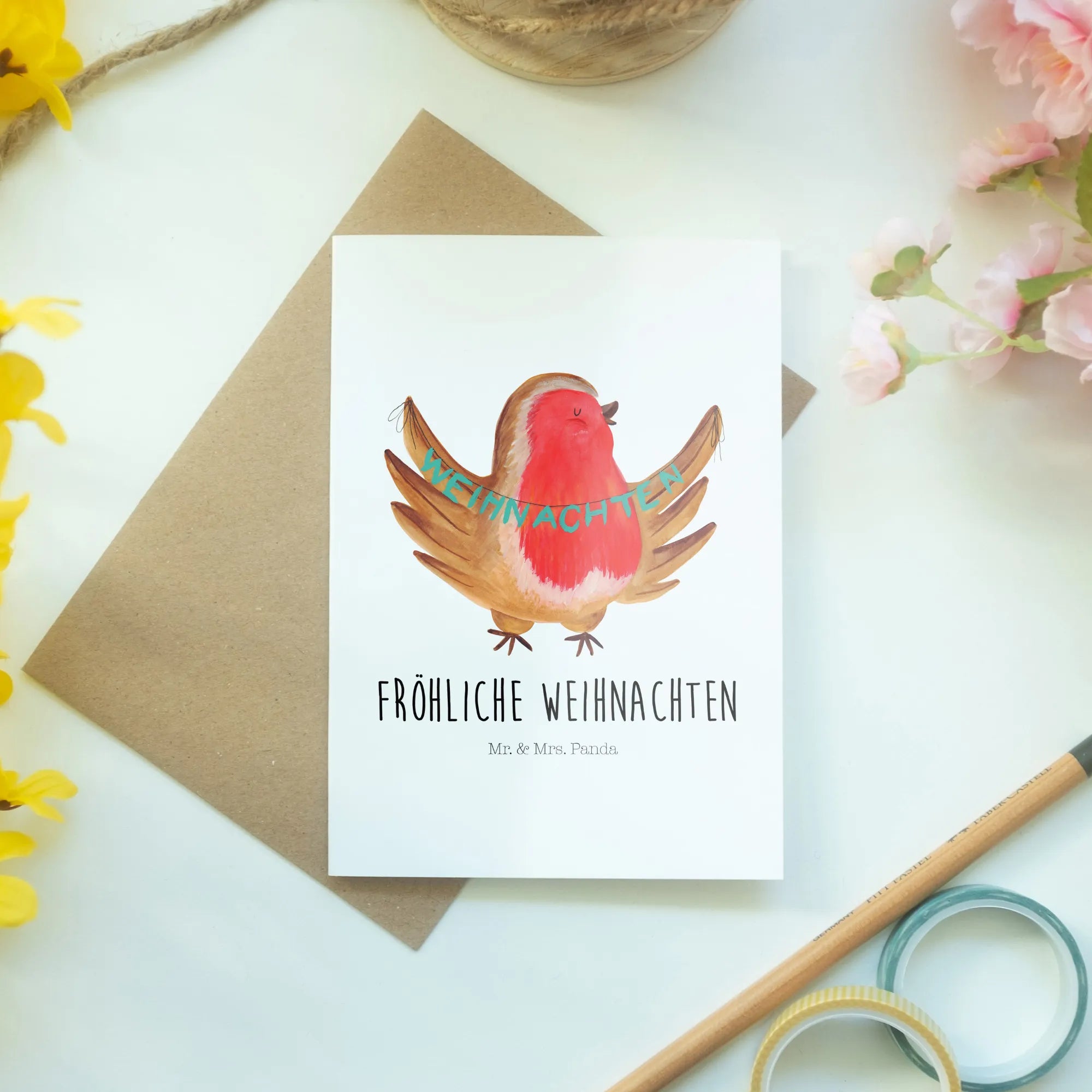 Kartka okolicznościowa rudzik Boże Narodzenie - z napisem - biały