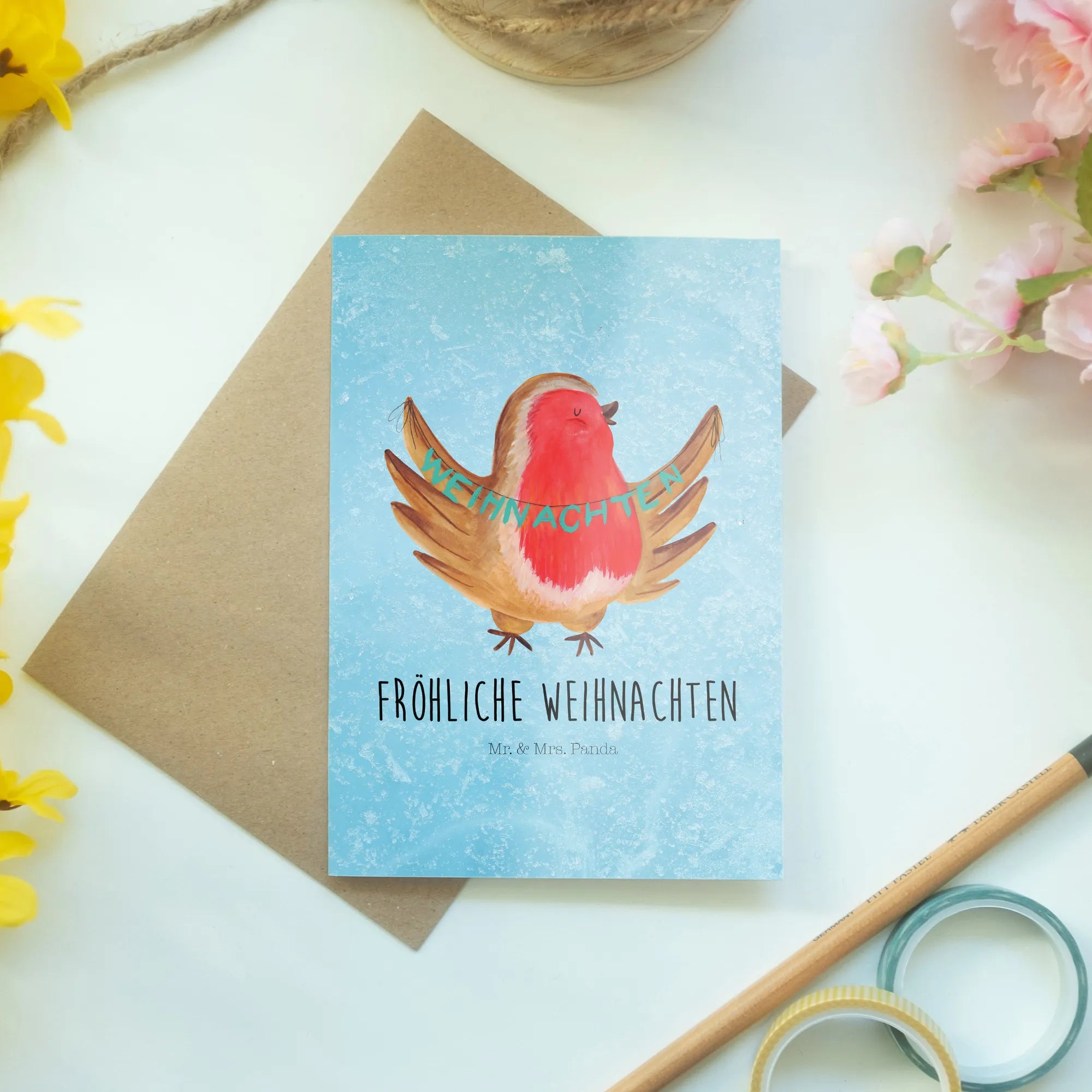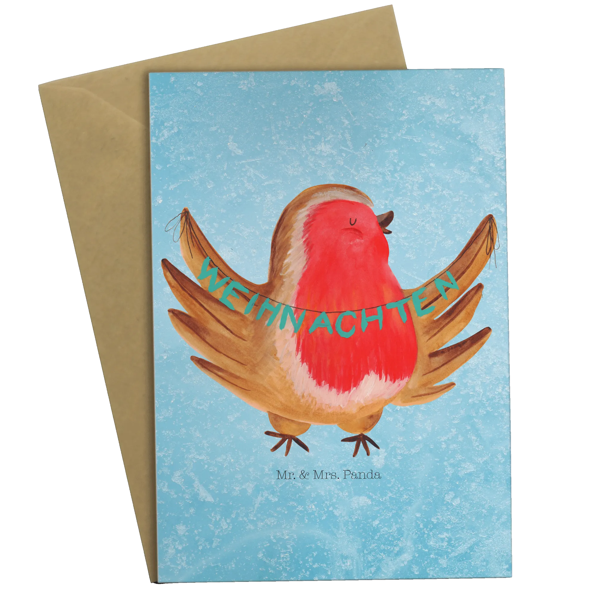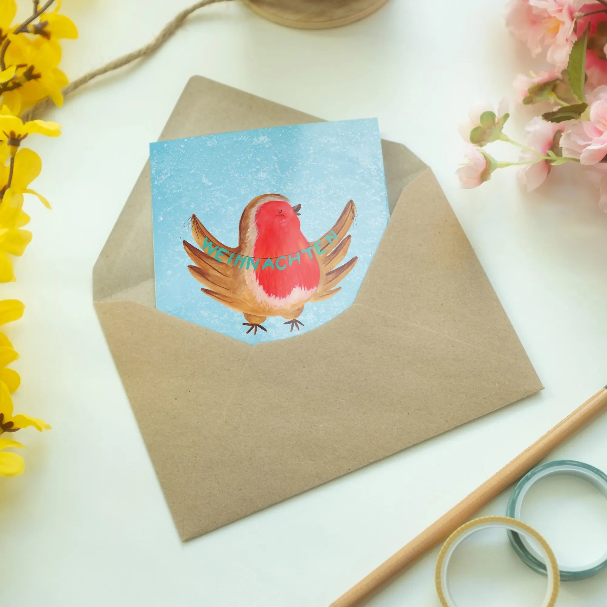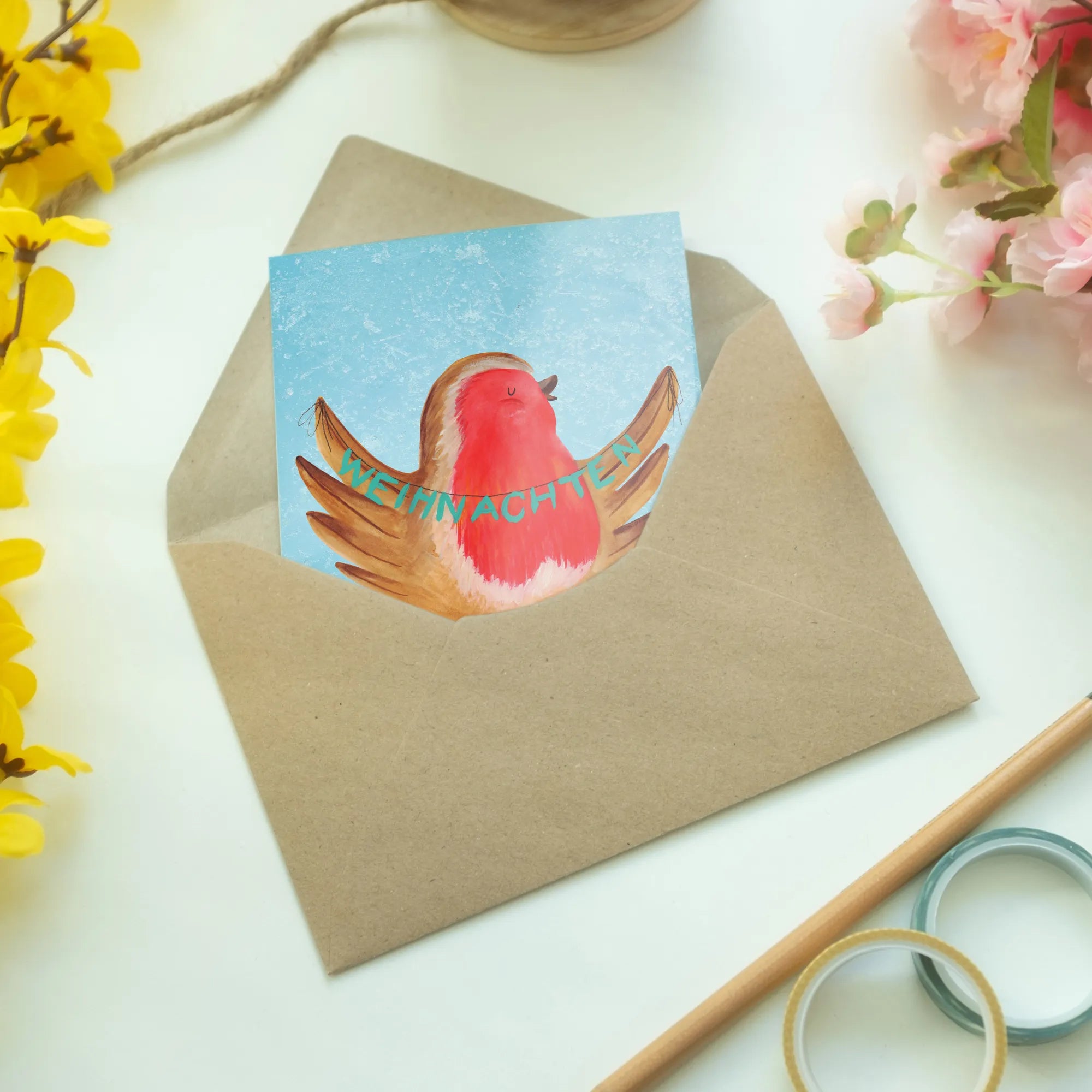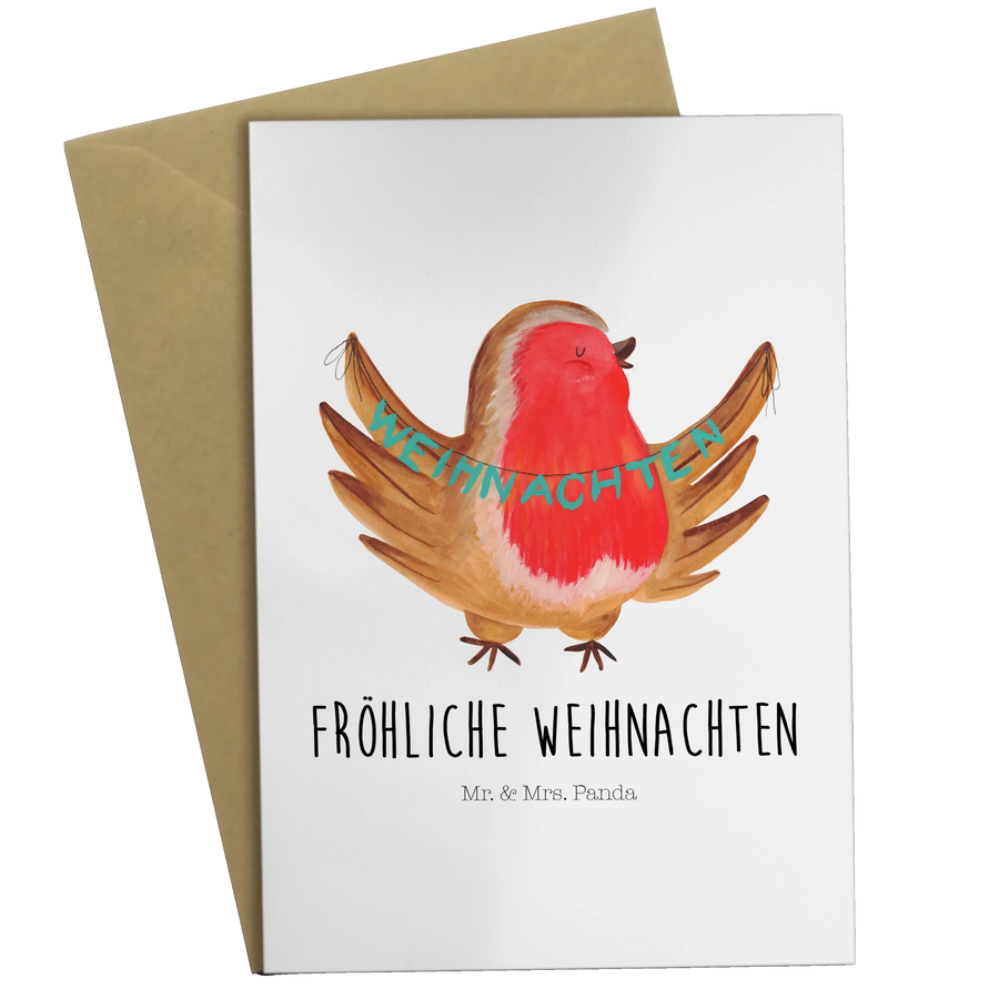 Kartka okolicznościowa rudzik Boże Narodzenie - z napisem - biały